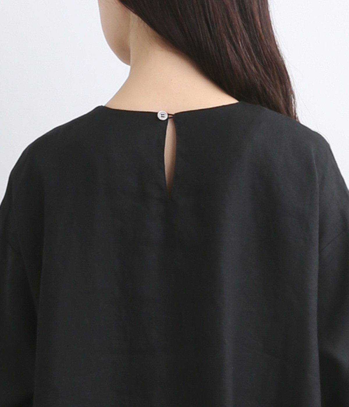 ほどよいハリと、やわらかな光沢感をまとったリネン素材を使用しました。着こむほどに肌になじんでいく、経年変化を楽しめる素材です。