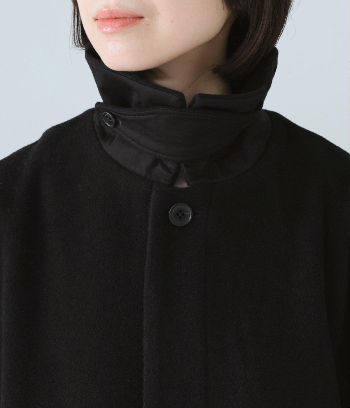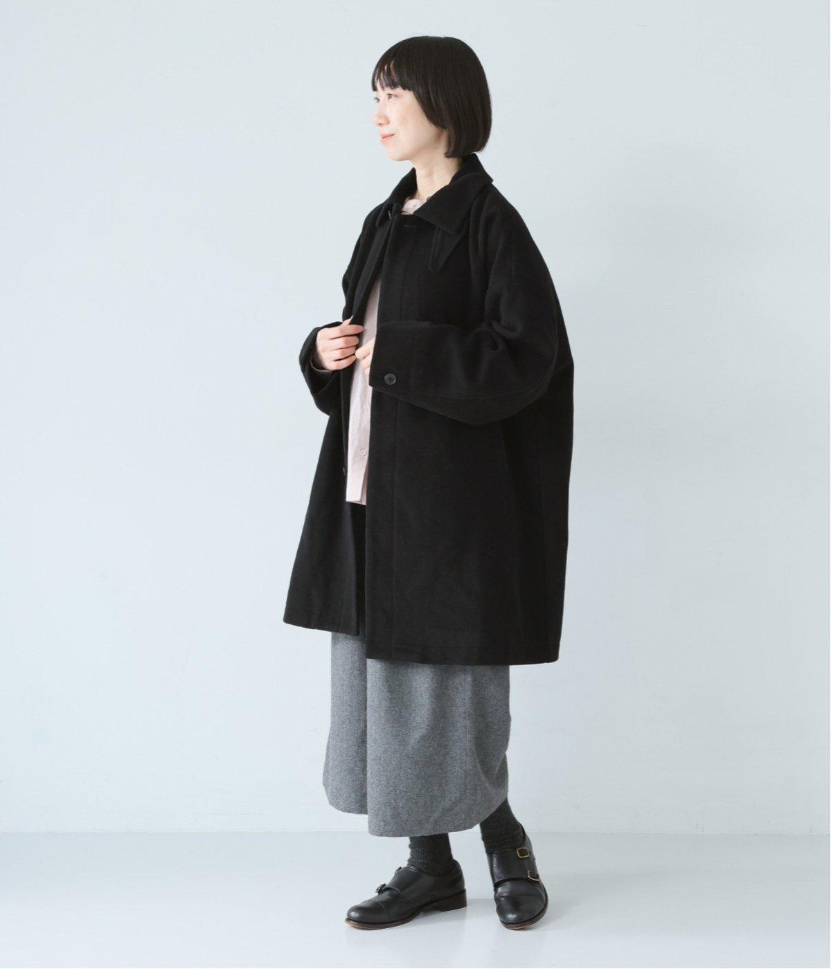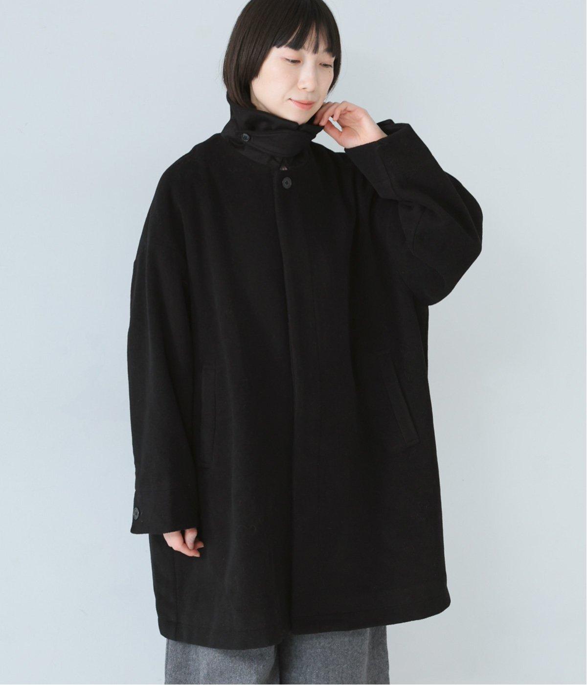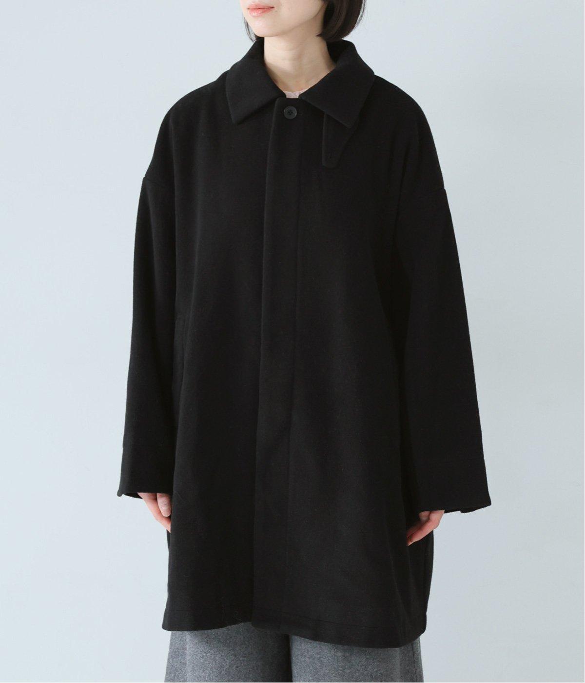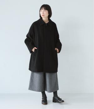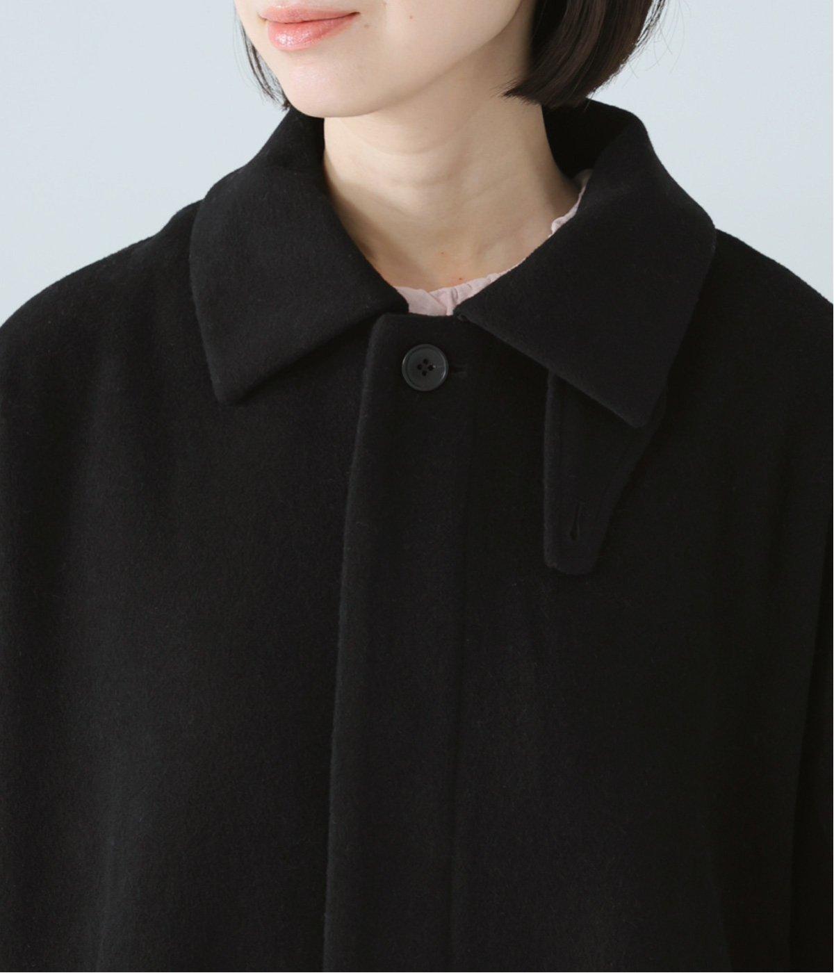 ゆったりとしたシルエットのバルマカーンコート。折り返した襟の形がポイントで、襟を立ててアレンジしても着用できます。腰まわりまでカバーするハーフ丈で、着まわし力も抜群。カジュアルにも、きれいめな装いにも合わせることができます。