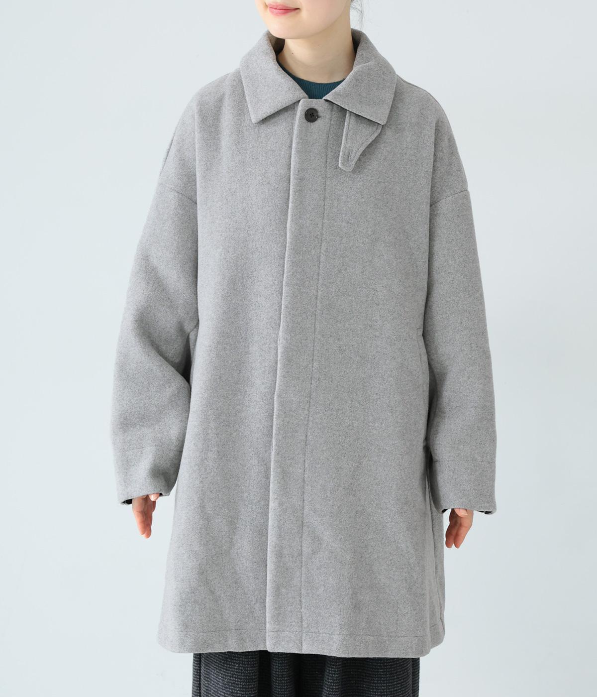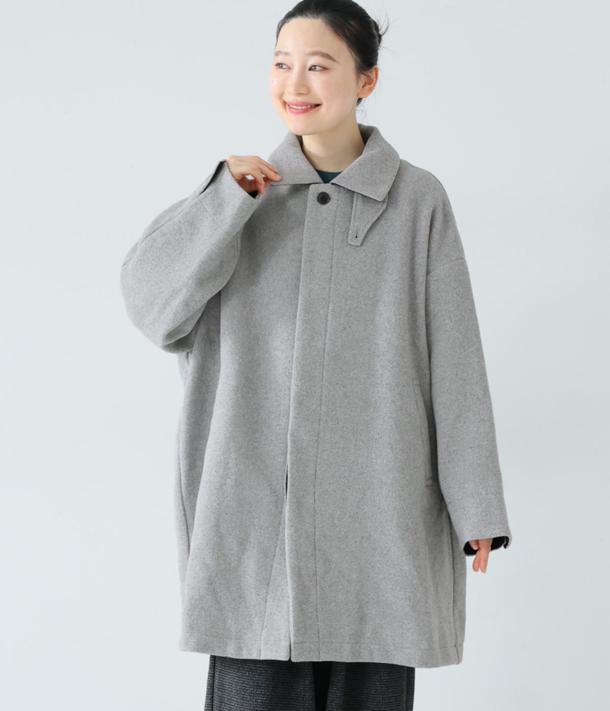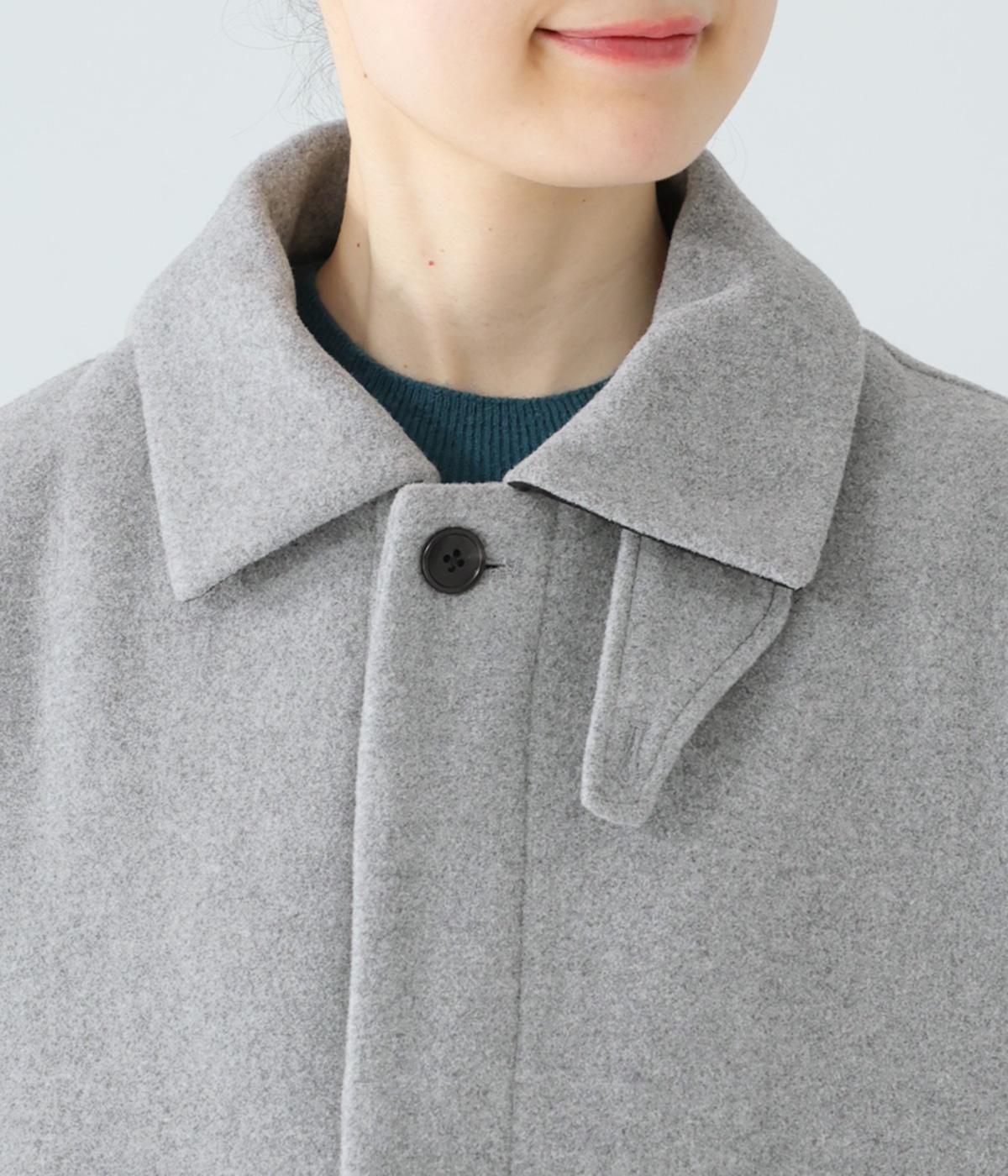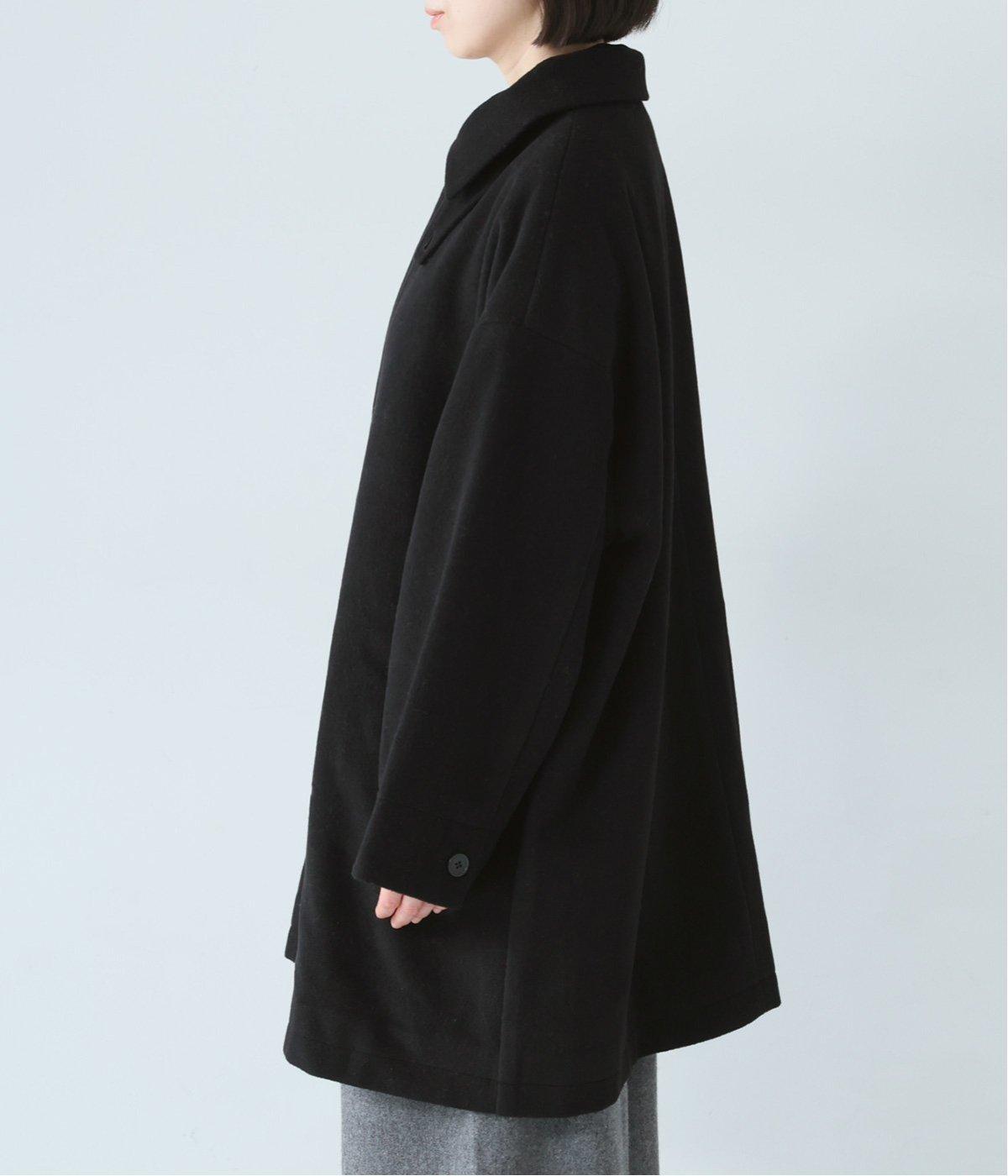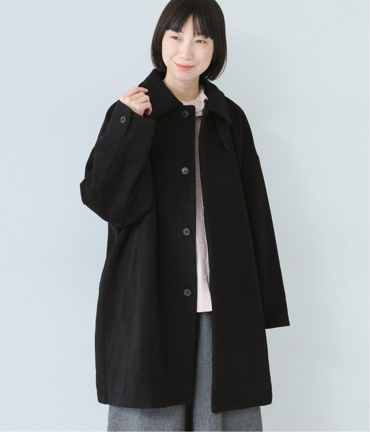 ゆったりとしたシルエットのバルマカーンコート。折り返した襟の形がポイントで、襟を立ててアレンジしても着用できます。腰まわりまでカバーするハーフ丈で、着まわし力も抜群。カジュアルにも、きれいめな装いにも合わせることができます。