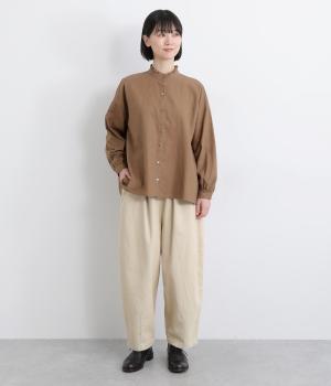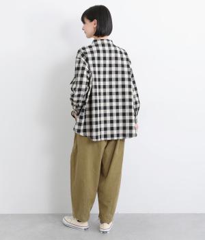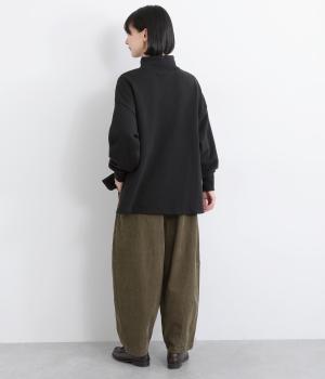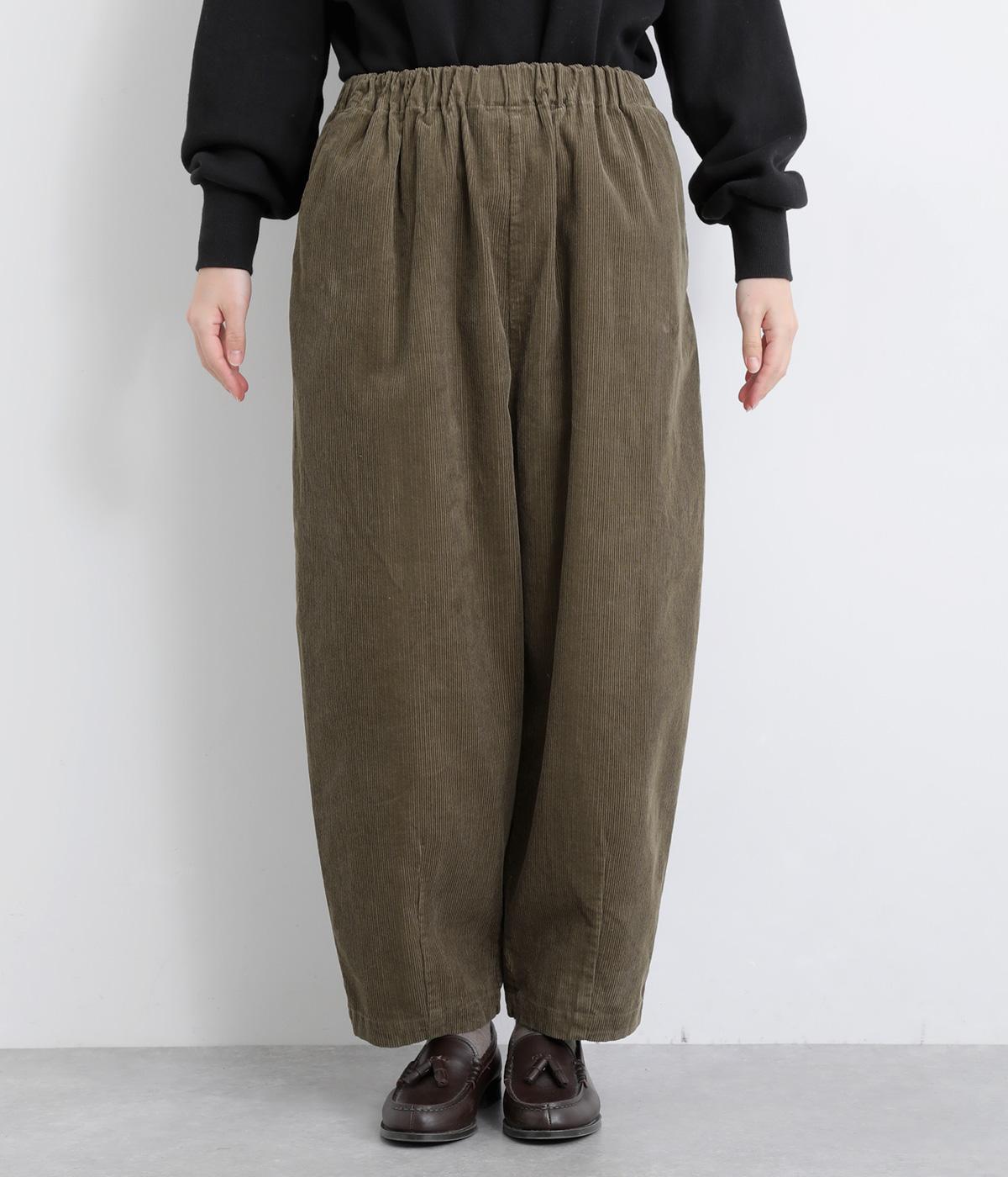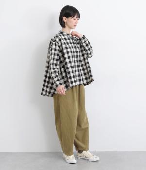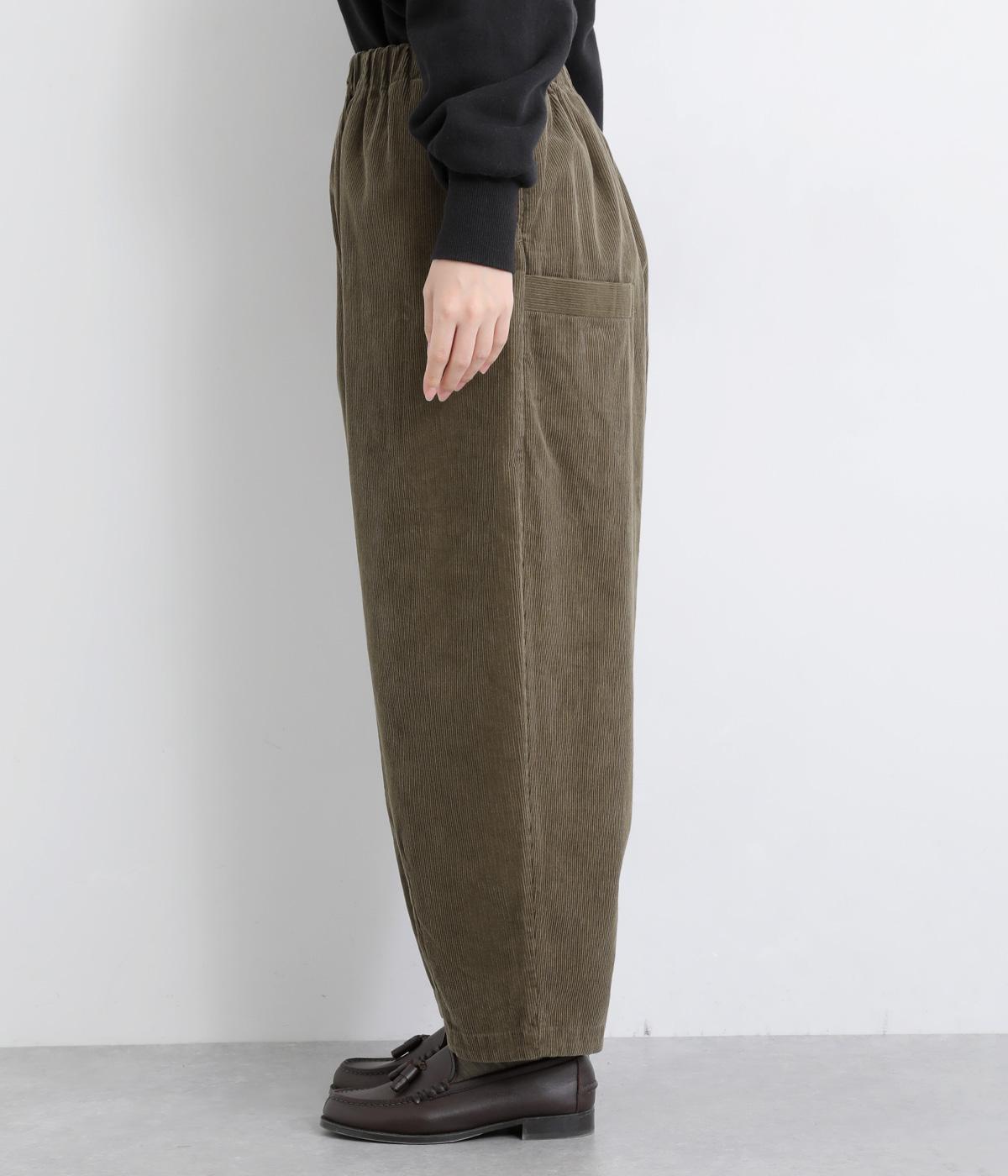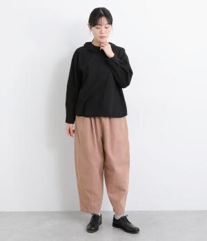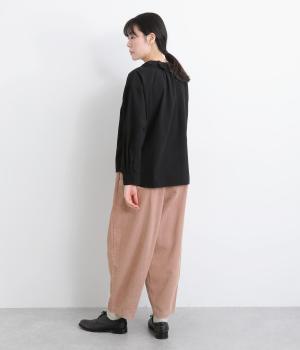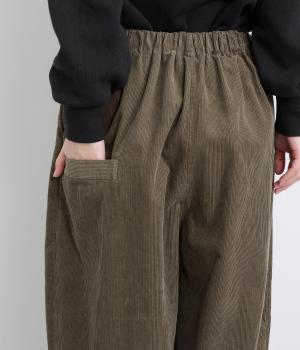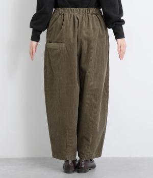 丸みとボリュームのある、ふんわりシルエットのパンツです。裾にきゅっとダーツをくわえ、立体感を出しました。トップスを着ても見えやすい位置にデザインした、うしろポケットもこだわりポイント。うしろ姿もぬかりなく、こなれた印象をあたえます。