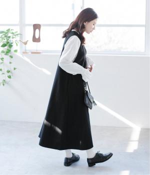 動きに合わせてふわりと揺れる軽やかな裾が大人の雰囲気に。形もシンプルでどんなアイテムともマッチしやすいジャンパースカート。お手持ちのトップスを合わせて、さまざまなコーディネートにチャレンジしてみてください。