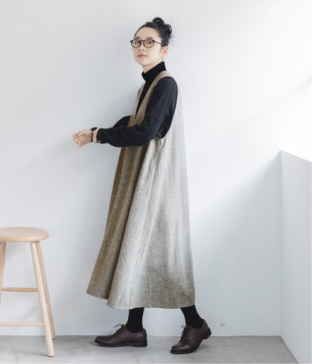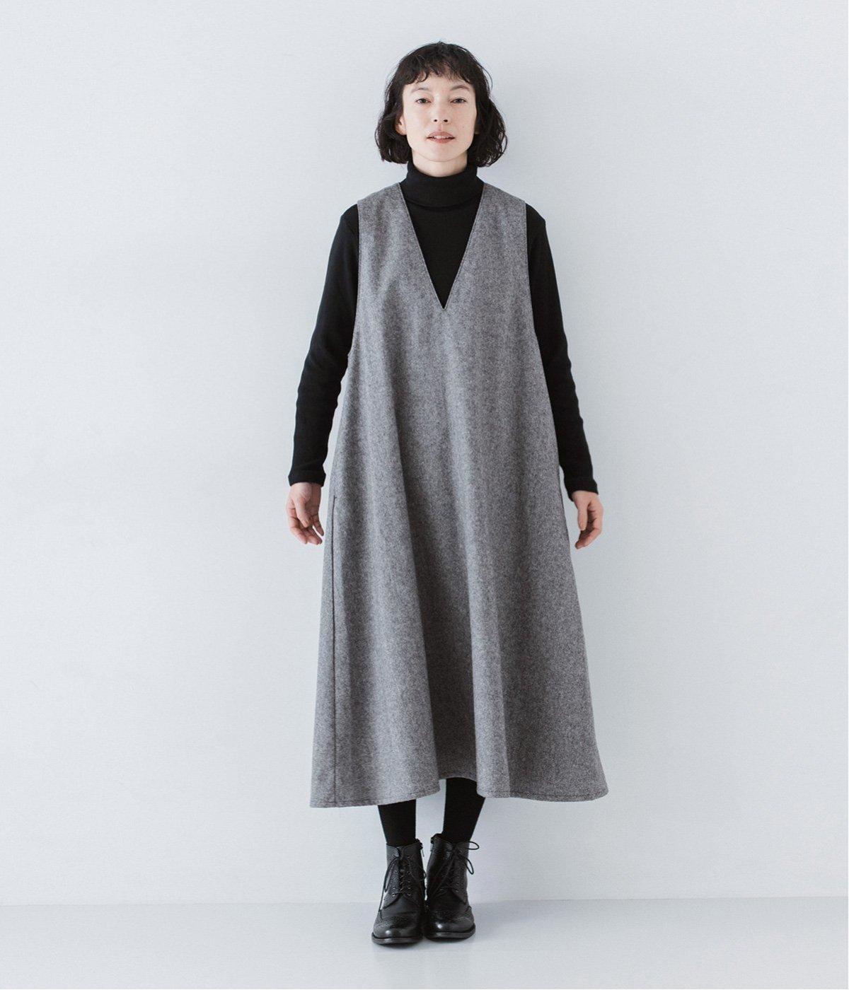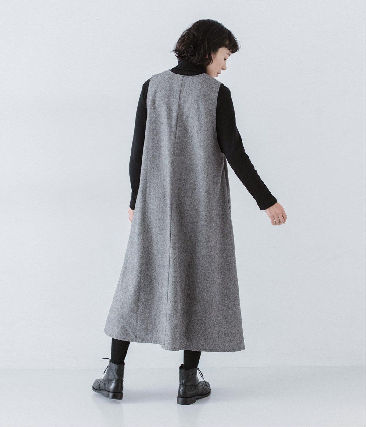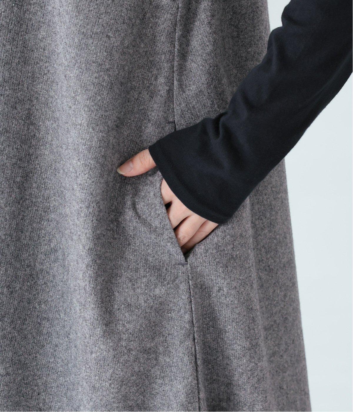 ウールミックスの柔らかな表情をたっぷり楽しめる、優しい雰囲気の<グレー>。ブラックのアイテムを合わせてコントラストをつけたコーディネートと、すとんと落ちるAラインシルエットが、佇まいをきれいに整えてくれます。