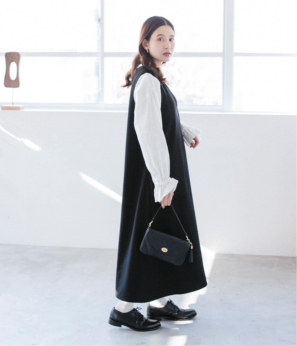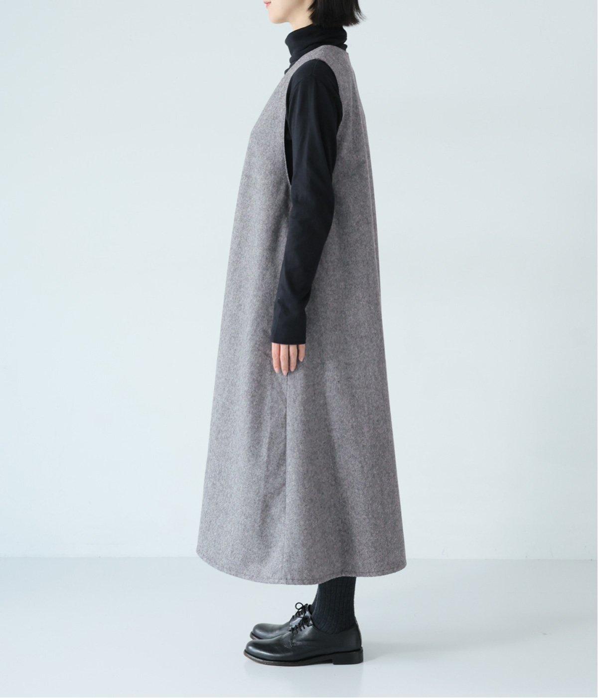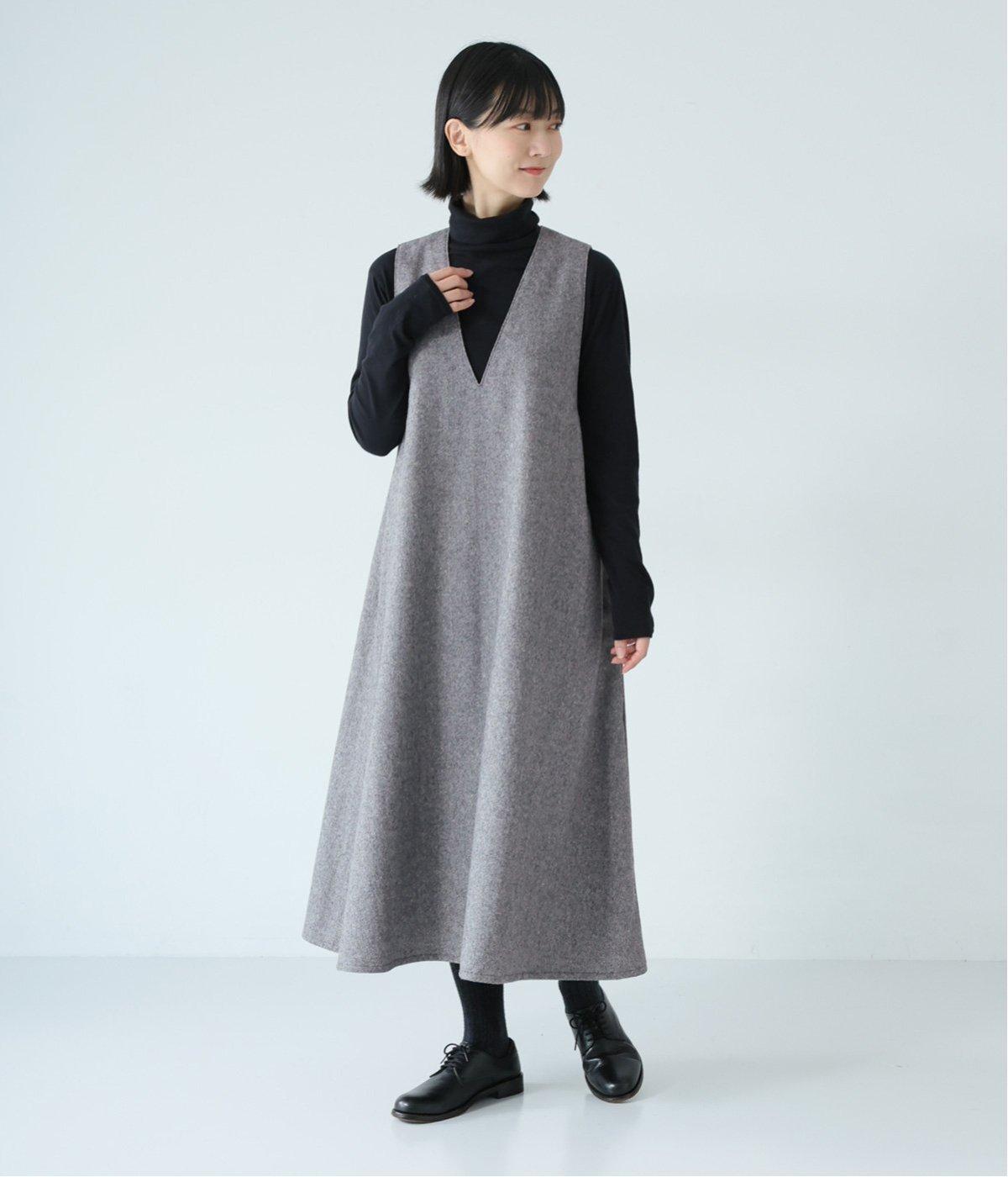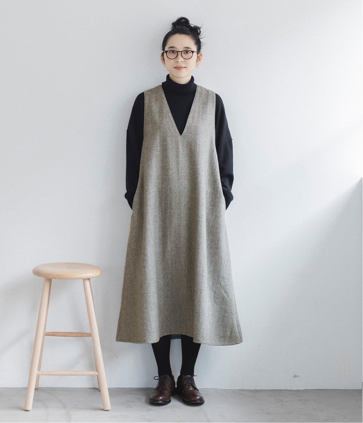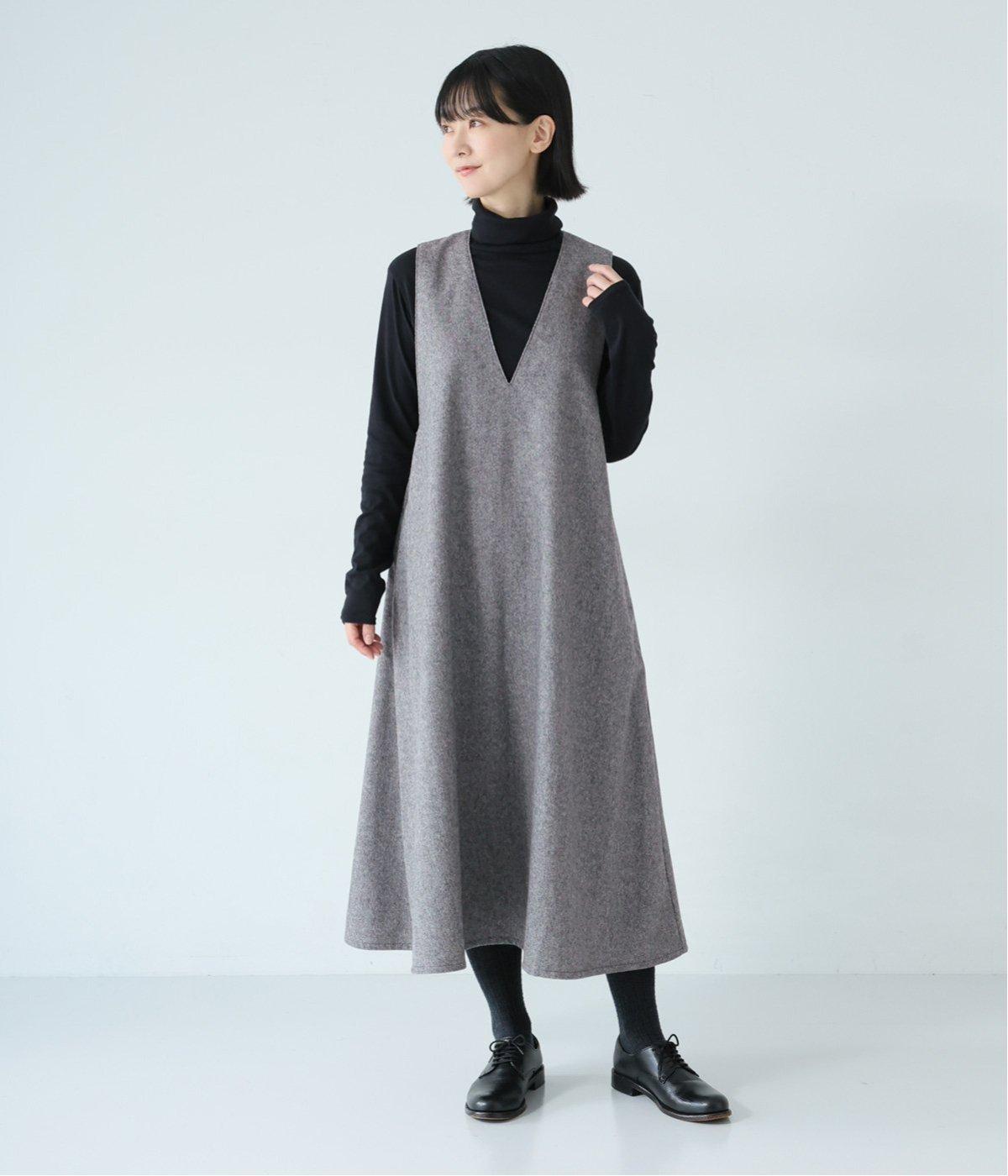 ウールミックスの柔らかな表情をたっぷり楽しめる、優しい雰囲気の<グレー>。ブラックのアイテムを合わせてコントラストをつけたコーディネートと、すとんと落ちるAラインシルエットが、佇まいをきれいに整えてくれます。