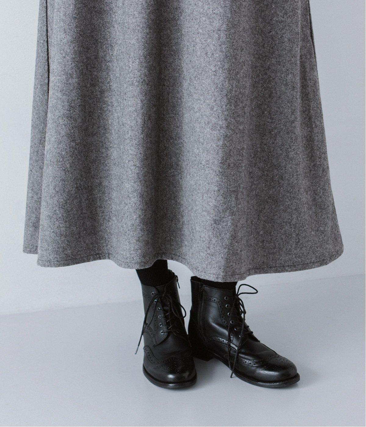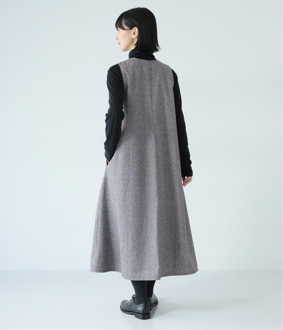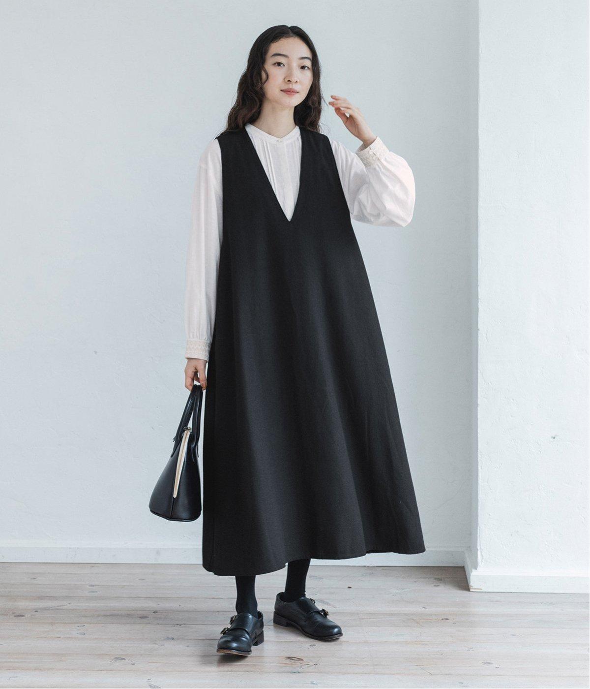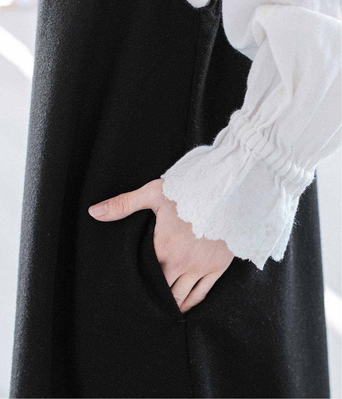 ウールミックスの柔らかな表情をたっぷり楽しめる、優しい雰囲気の<グレー>。ブラックのアイテムを合わせてコントラストをつけたコーディネートと、すとんと落ちるAラインシルエットが、佇まいをきれいに整えてくれます。