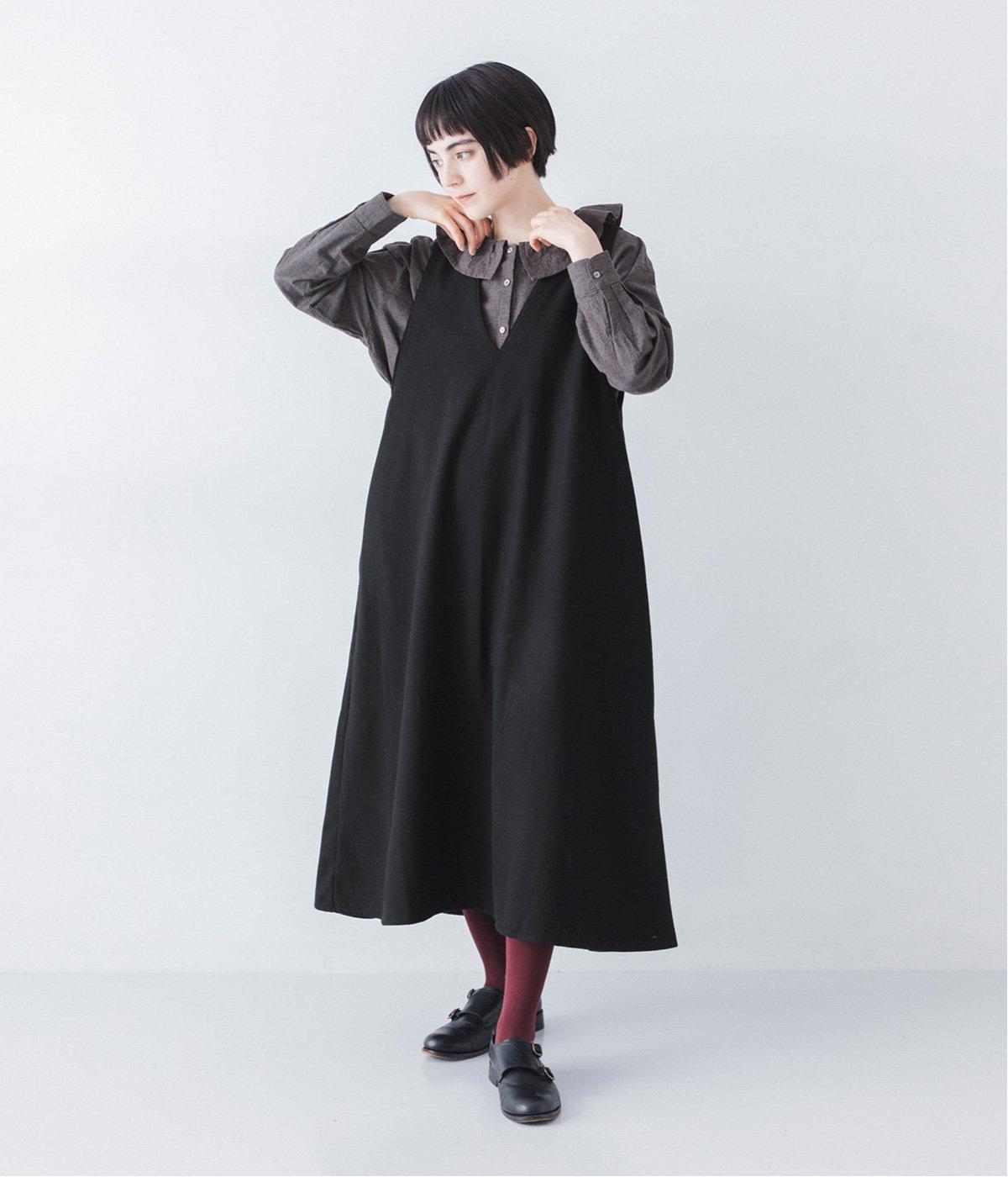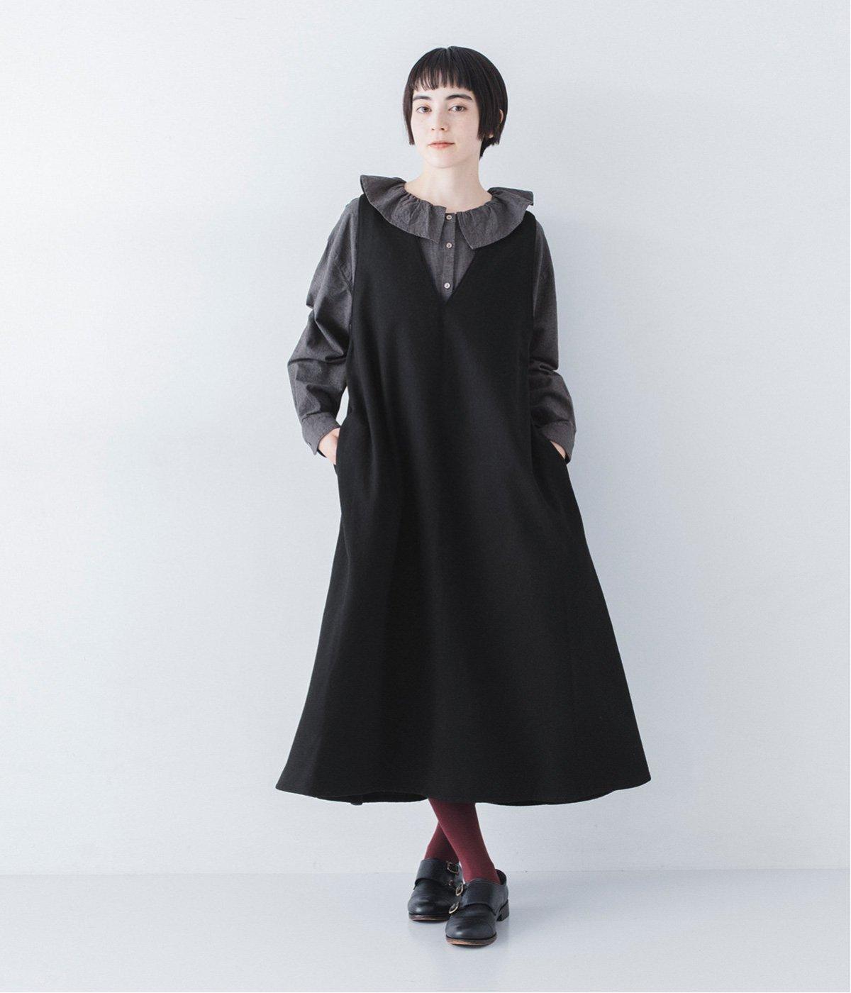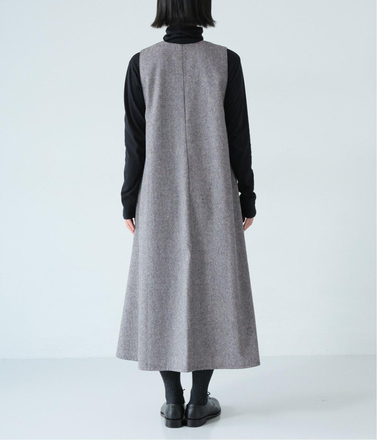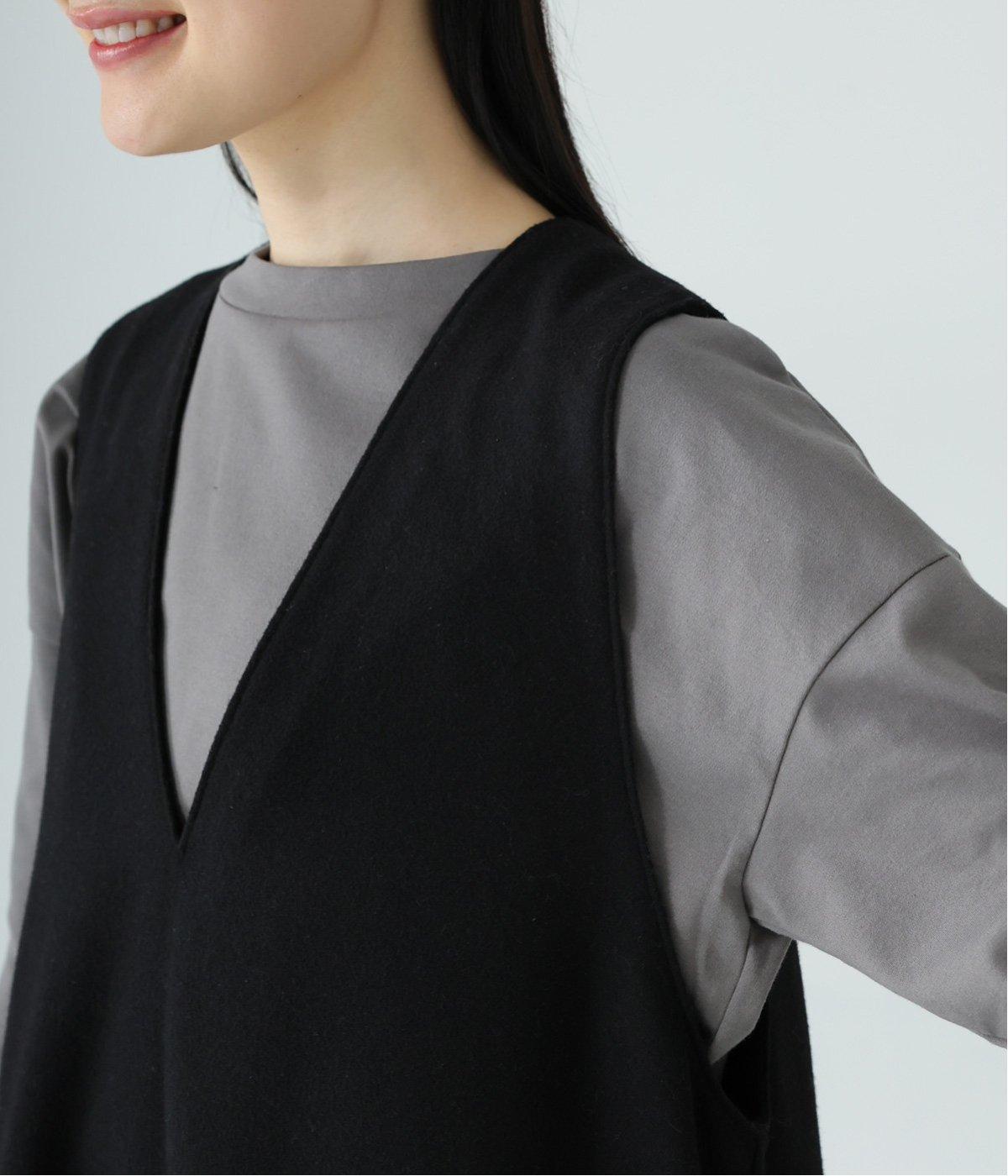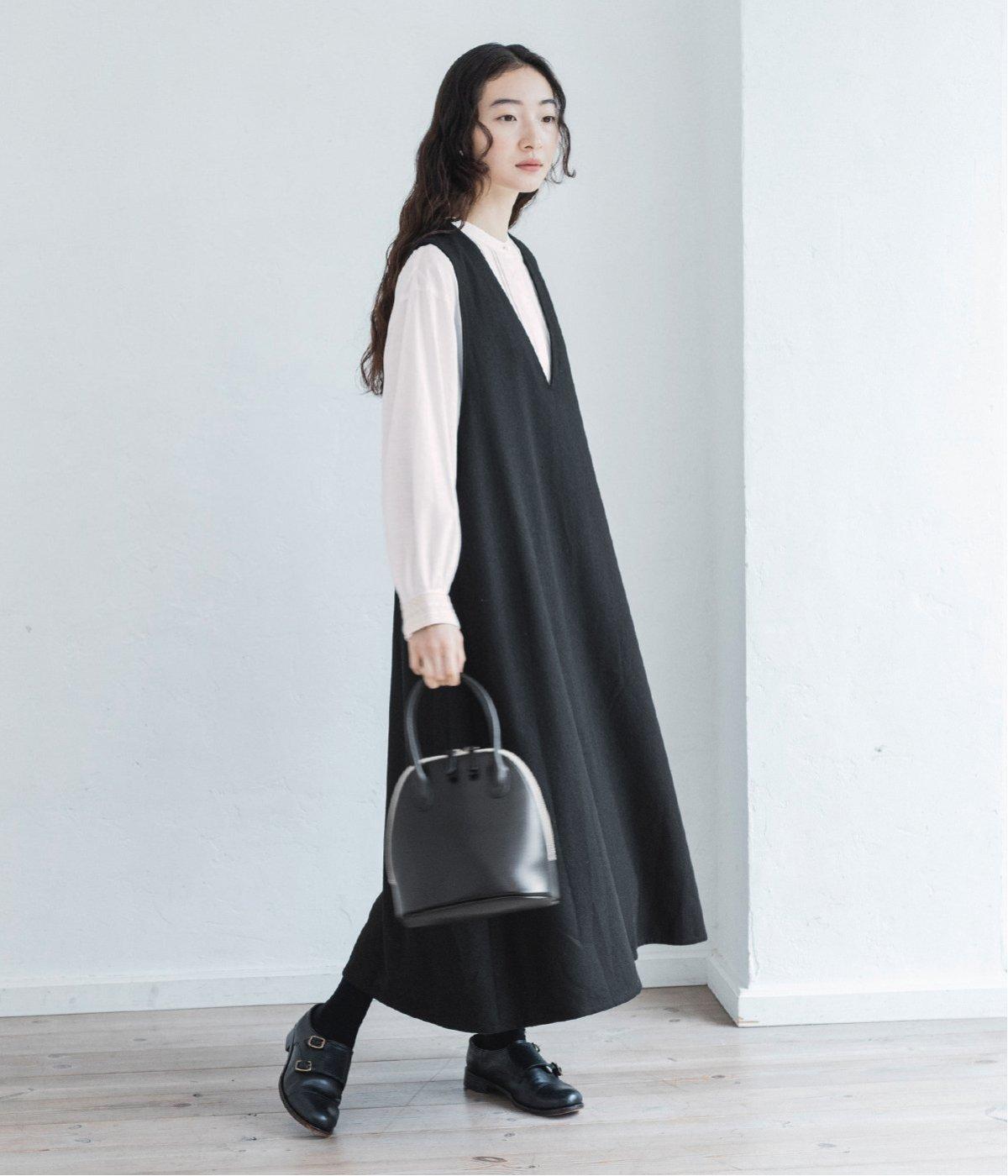 ウールミックスの柔らかな表情をたっぷり楽しめる、優しい雰囲気の<グレー>。ブラックのアイテムを合わせてコントラストをつけたコーディネートと、すとんと落ちるAラインシルエットが、佇まいをきれいに整えてくれます。