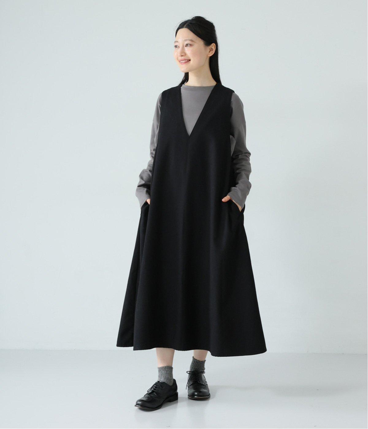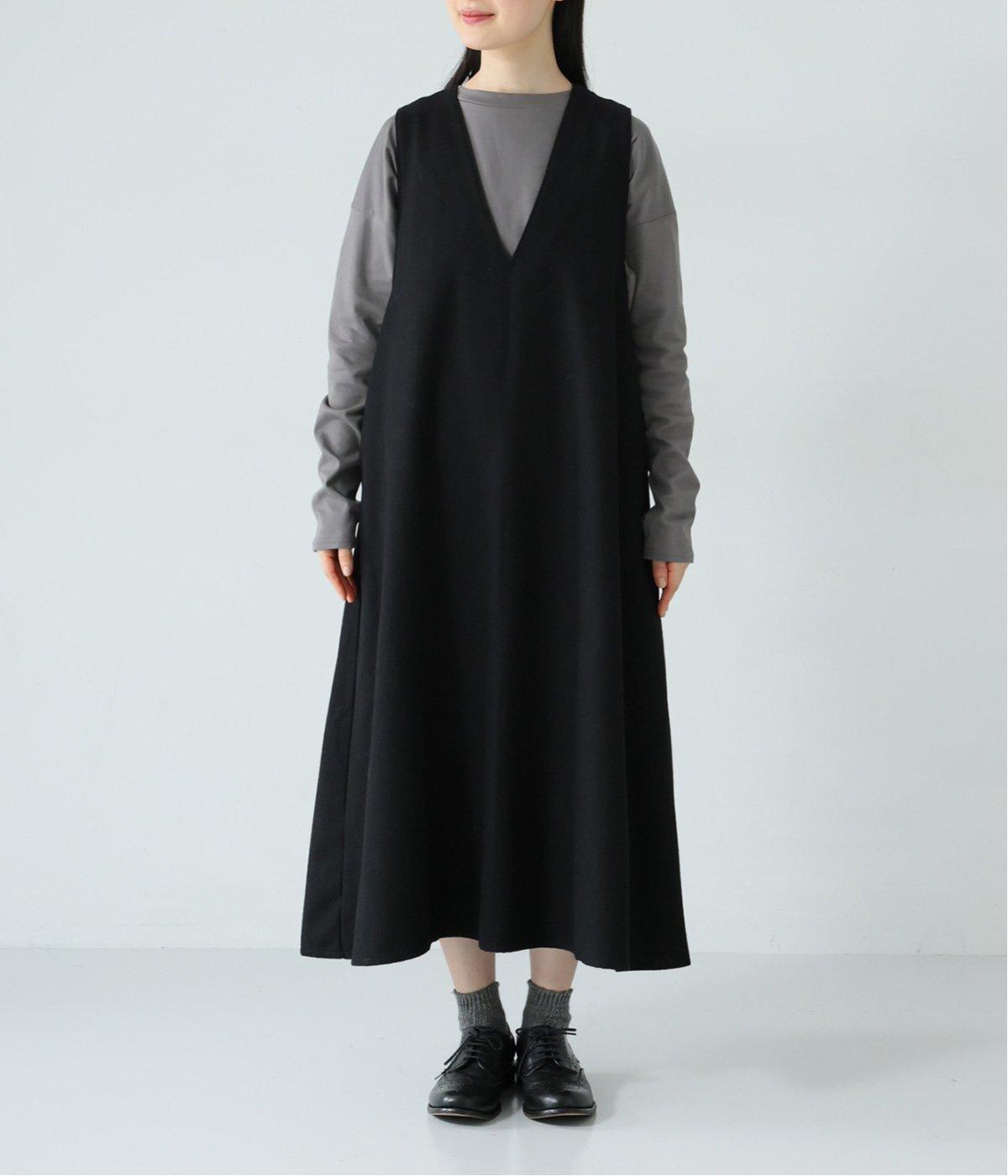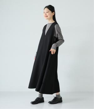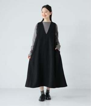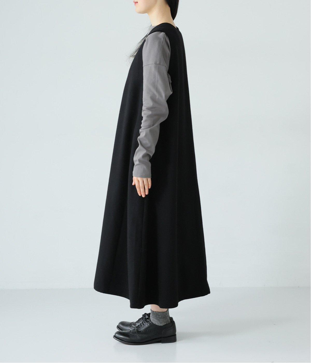 ボーダーカットソーとスニーカーを合わせたカジュアルコーデも<ブラック>のジャンパースカートが引き締め役に。落ち感と美しいドレープが立体的なシルエットを描きます。