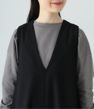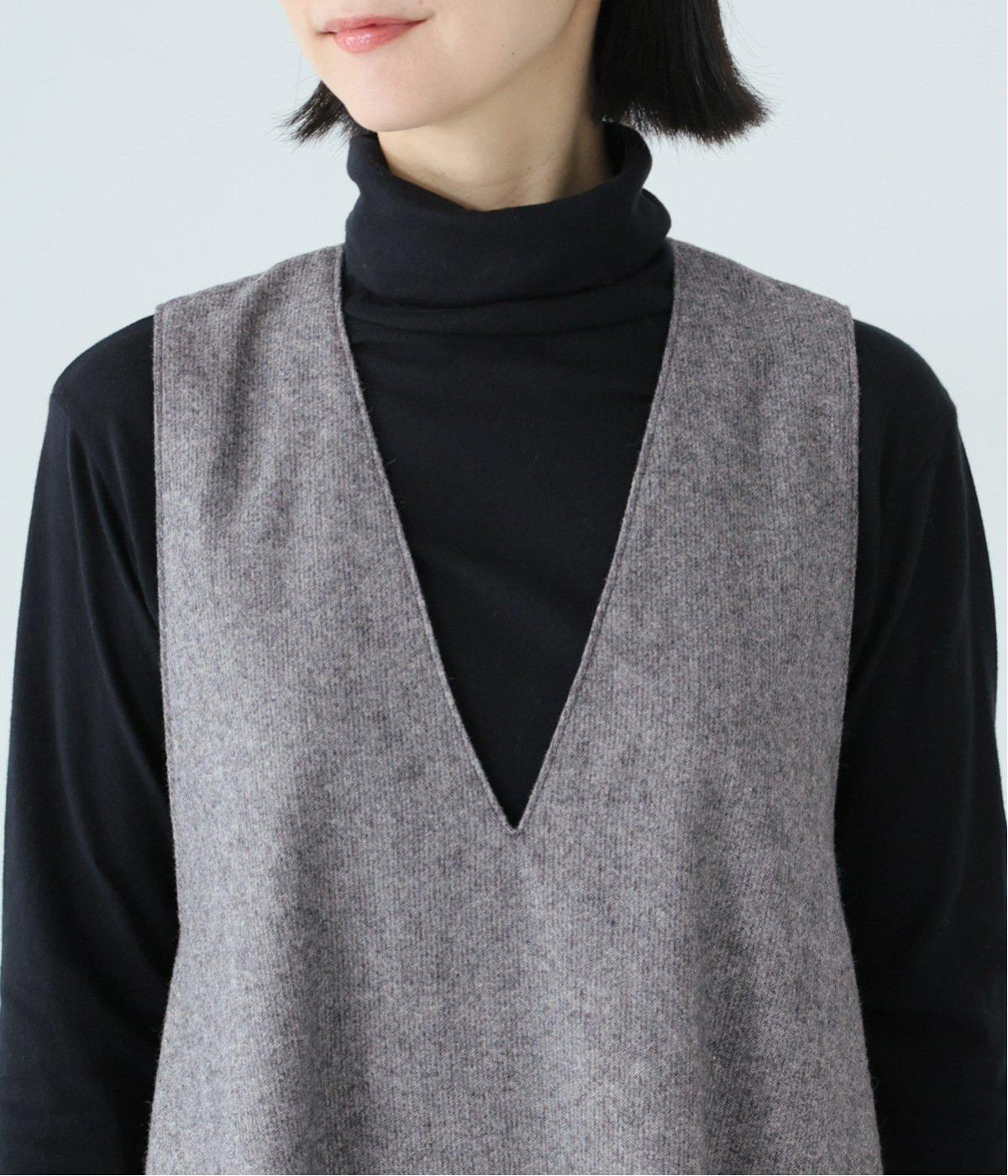 インナーのデザインも映える、深めに開いたVネック。襟付きブラウスやアクセサリー合わせなど、首まわりのアレンジもたのしめそう。