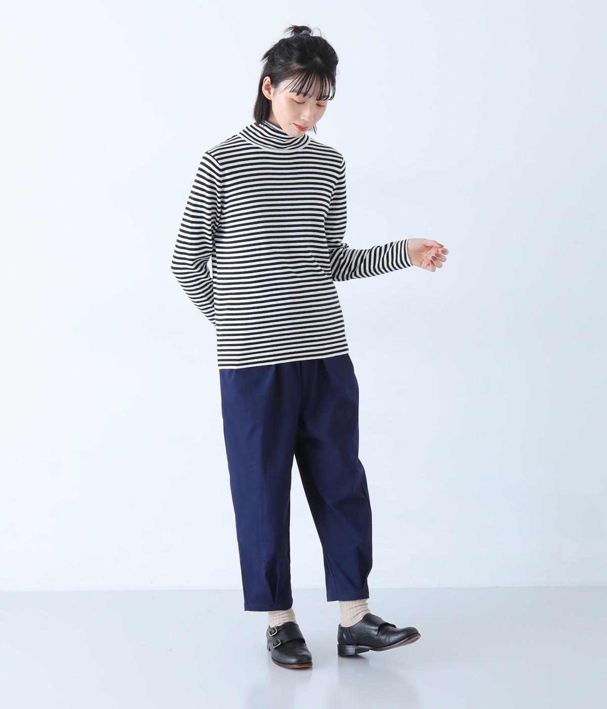 ラフな着用感とすっきり見えを両方叶える、絶妙なサイズ感にこだわったタートルネックプルオーバー。着丈はやや長めに設定しつつも、さまざまなボトムスとバランスよく合わせられます。ネックと袖口の生地端がくるんと丸まった、カットオフのようなディテールにも注目です。