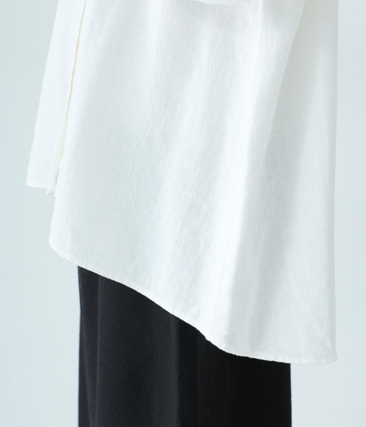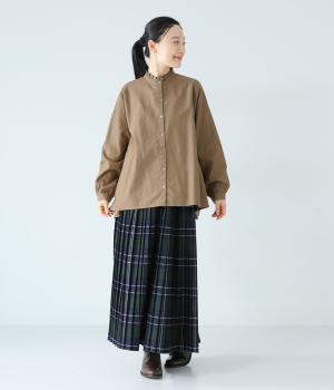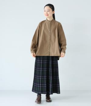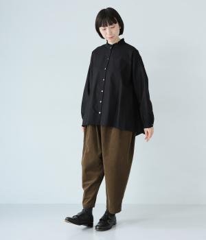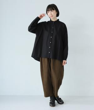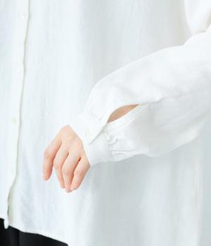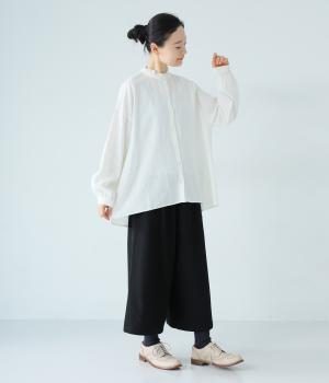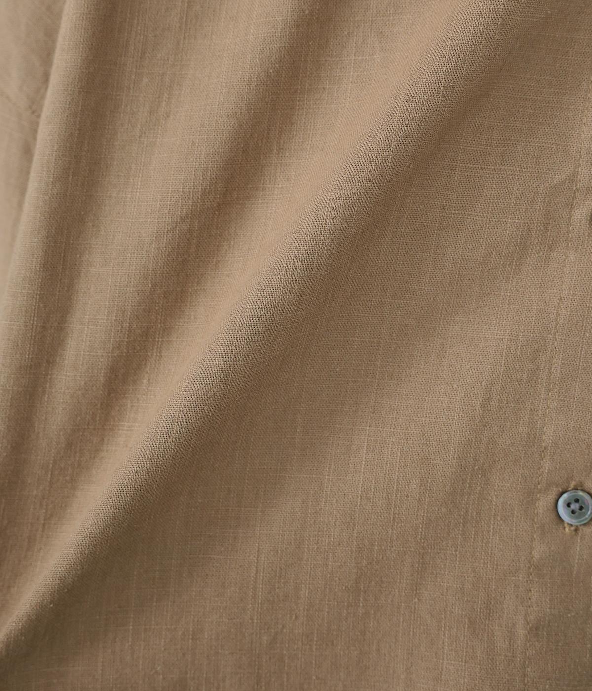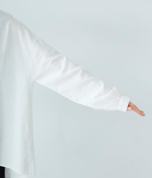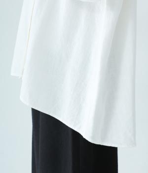 ほどよい厚みとハリがある、コットンリネン生地を使用しました。着るほどにやわらかくなじみ、ナチュラルなシワ感とやさしい風合いがたのしめます。