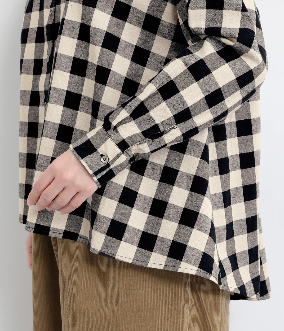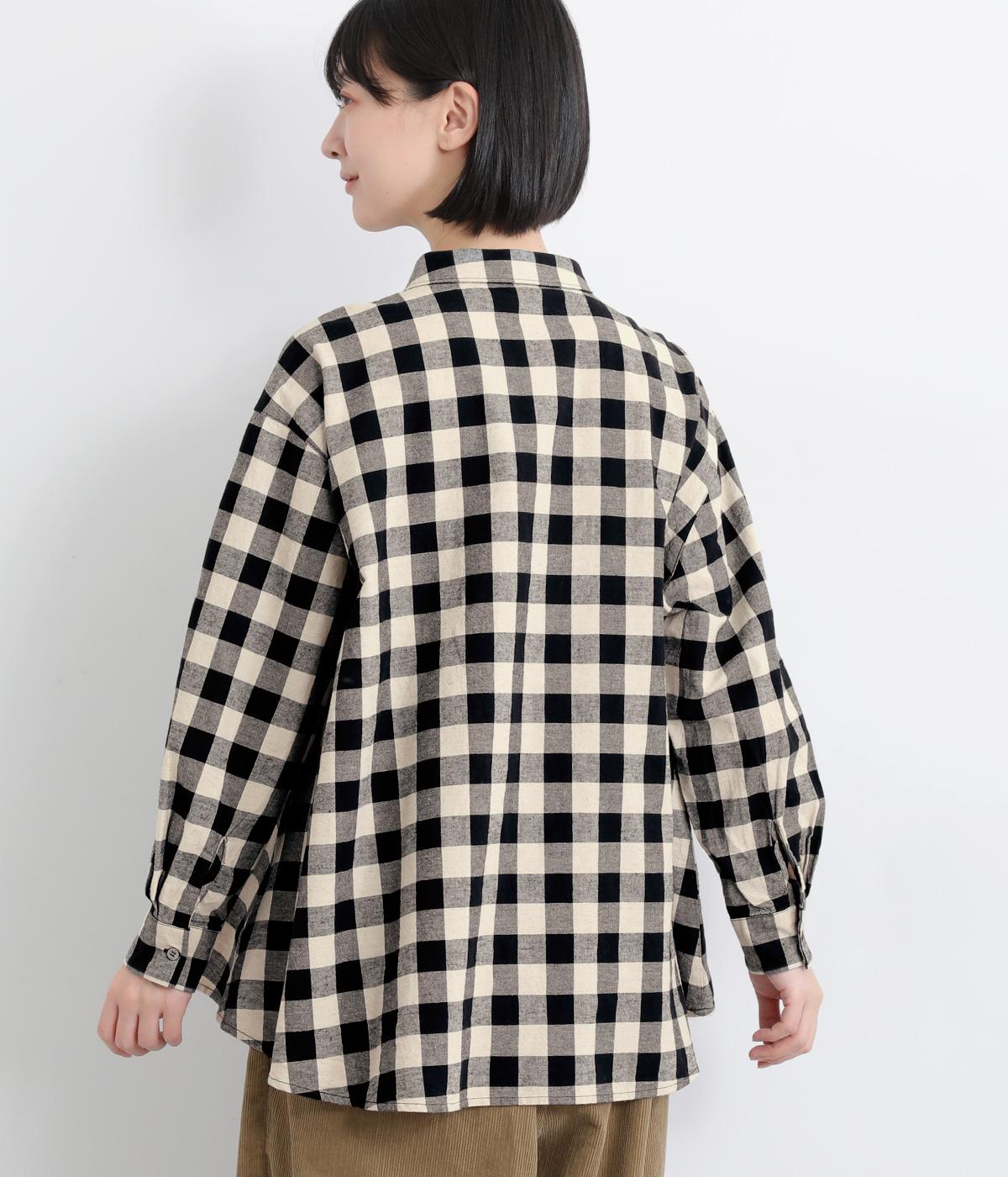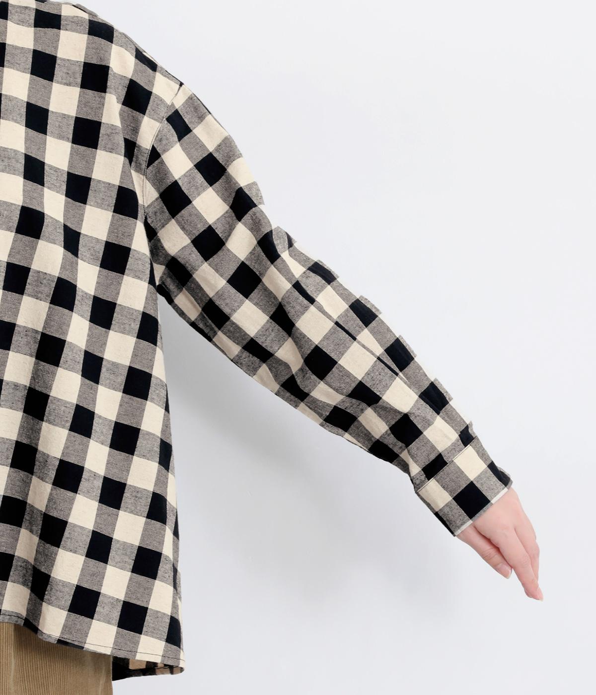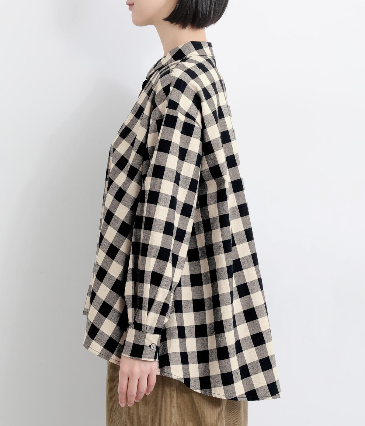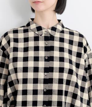 ゆったりとしたワイドシルエットのAラインシャツ。ほどよくハリのある生地と、前後差のある着丈で、体のラインカバーし、自然な落ち感を生みます。一枚でも、前ボタンをあけて羽織りとして着るのもおすすめ。チェック柄が装いにやさしい表情を添えます。