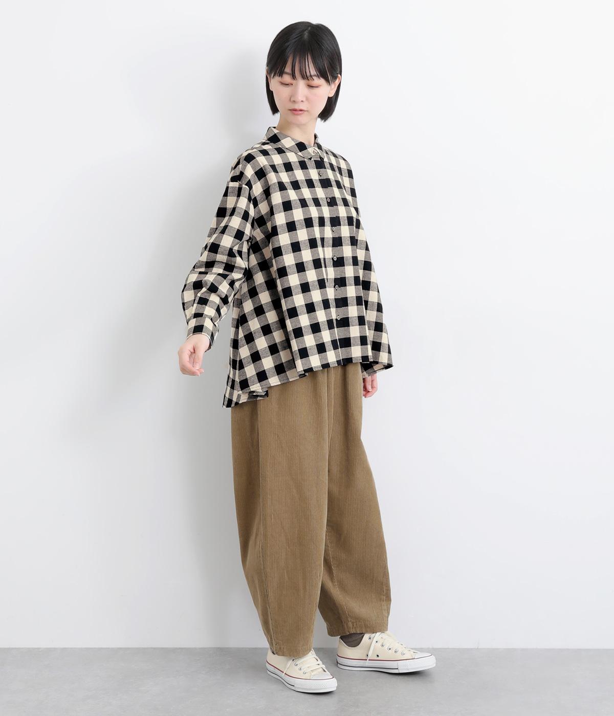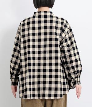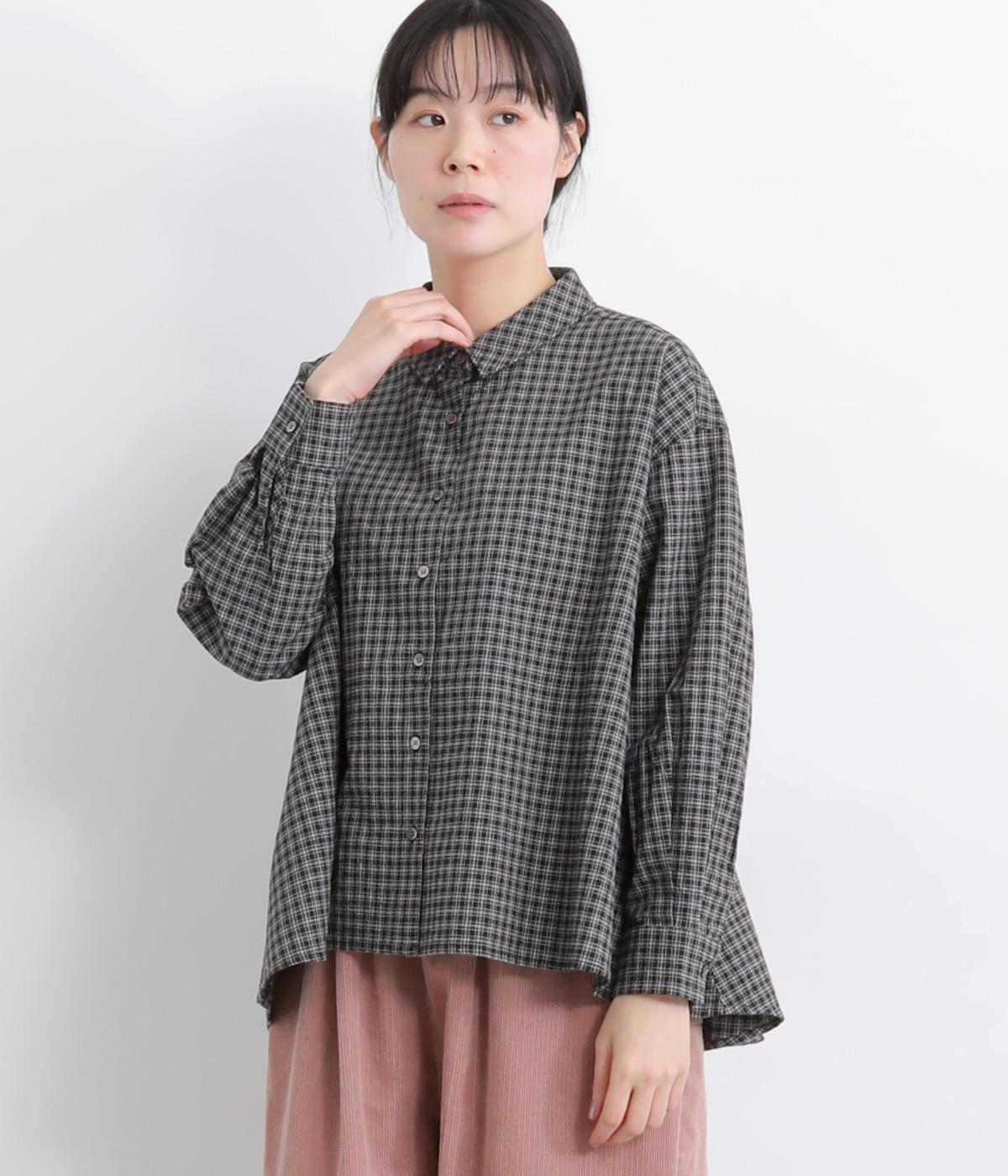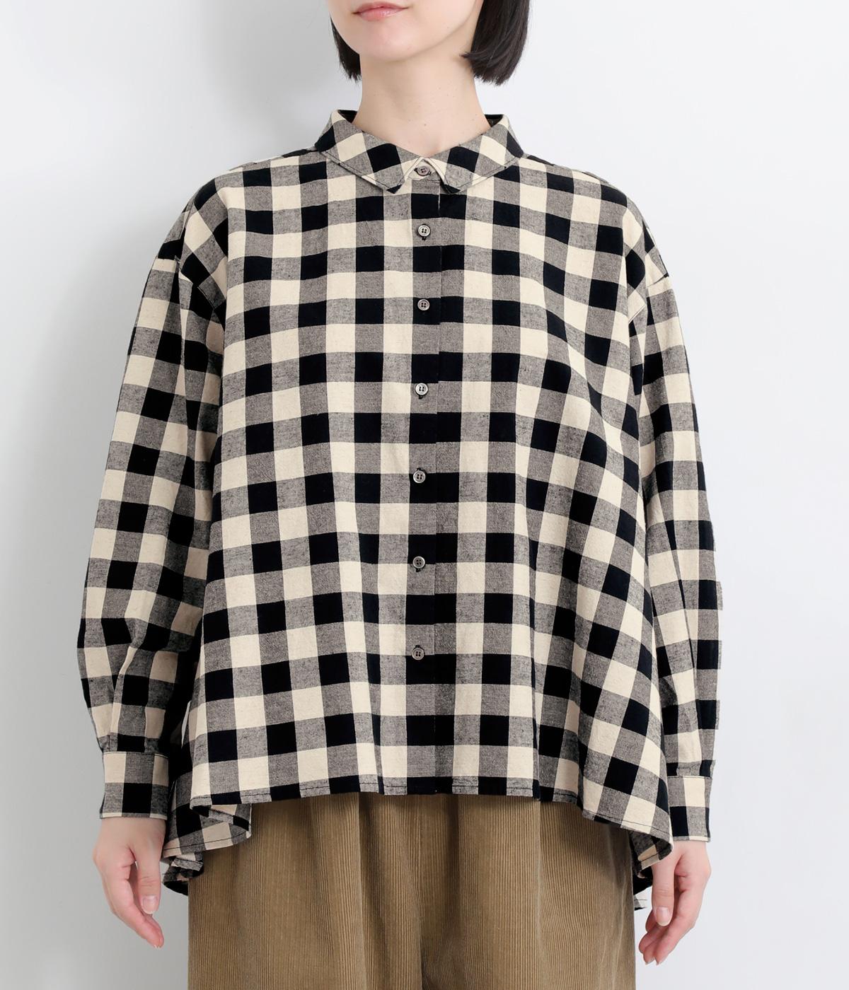 ゆったりとしたワイドシルエットのAラインシャツ。ほどよくハリのある生地と、前後差のある着丈で、体のラインカバーし、自然な落ち感を生みます。一枚でも、前ボタンをあけて羽織りとして着るのもおすすめ。チェック柄が装いにやさしい表情を添えます。