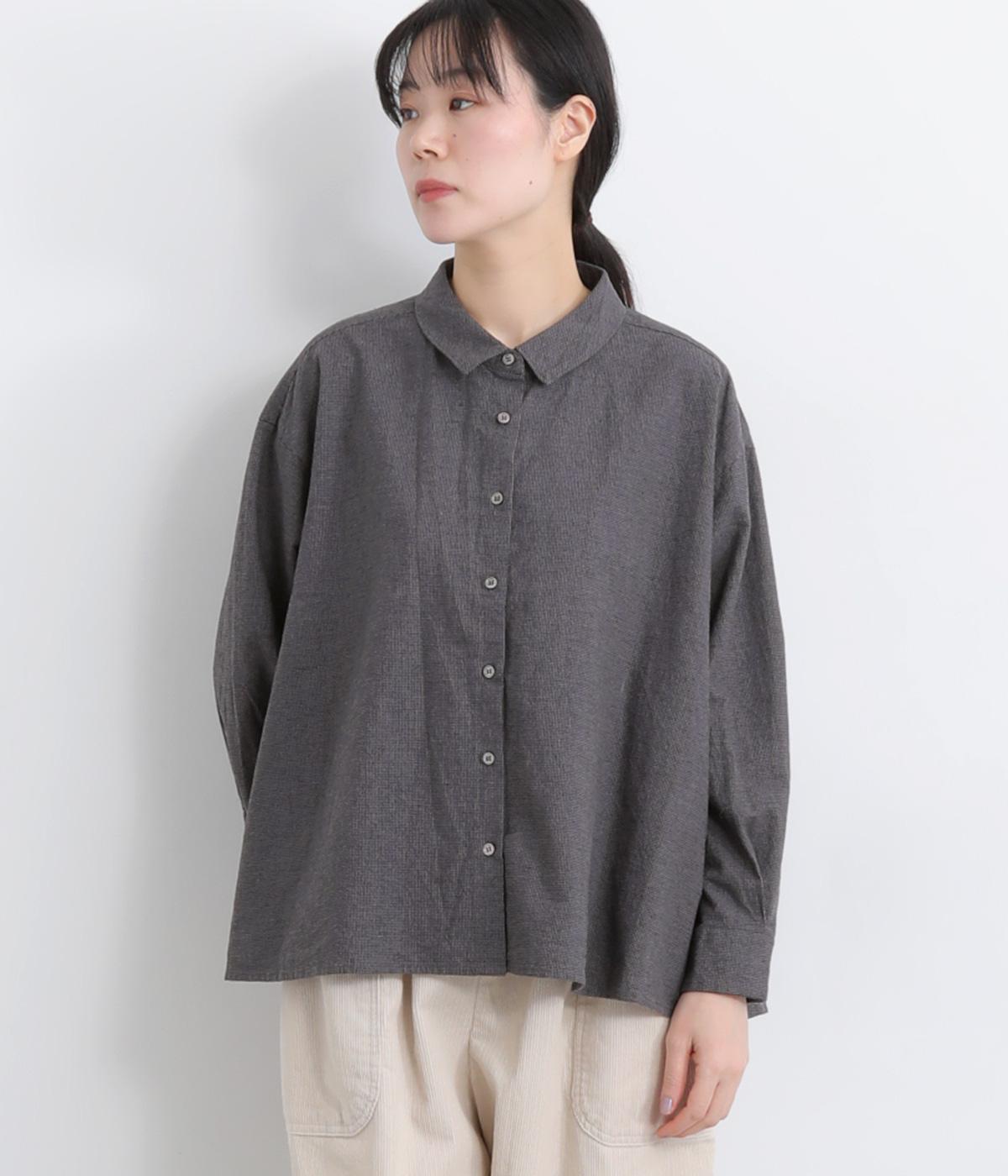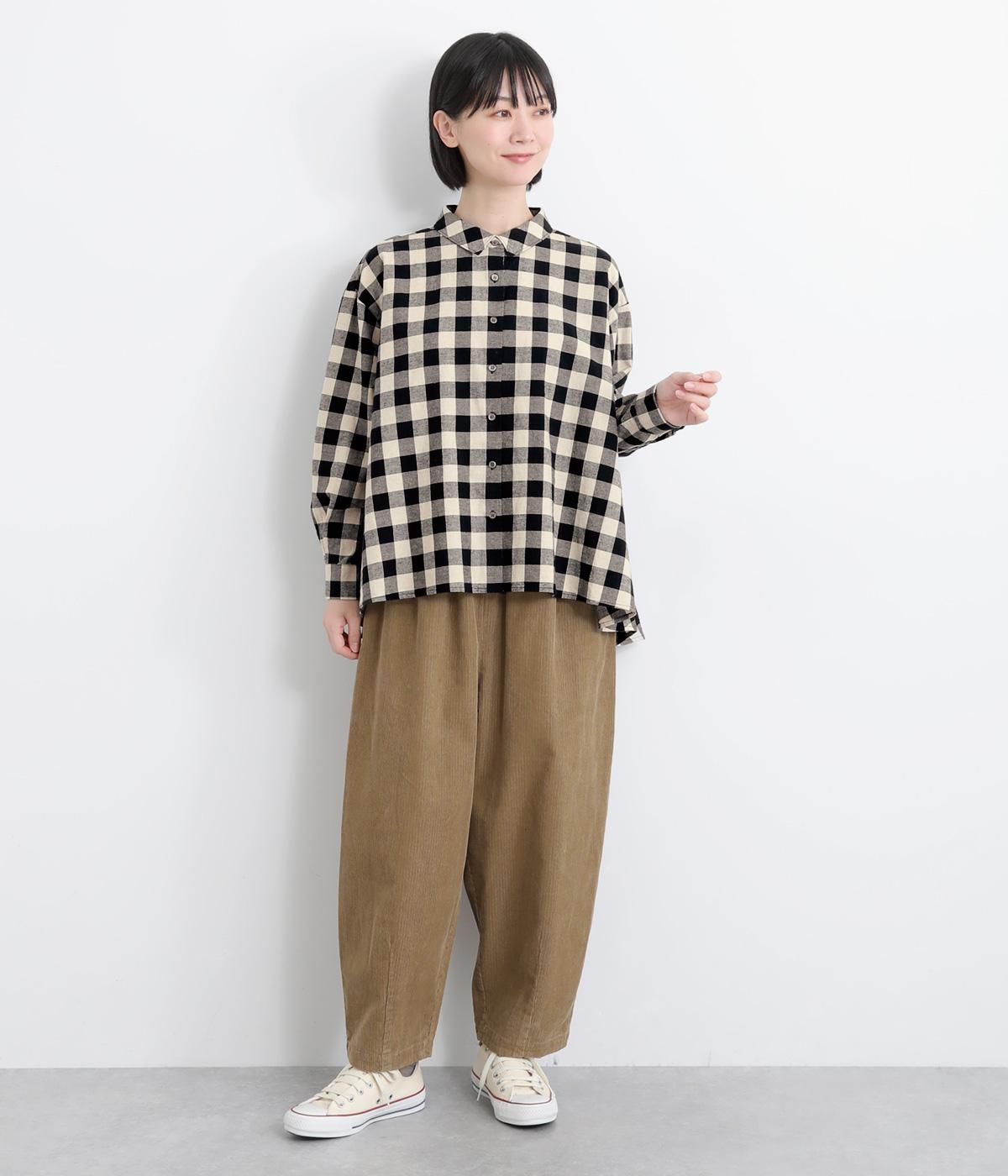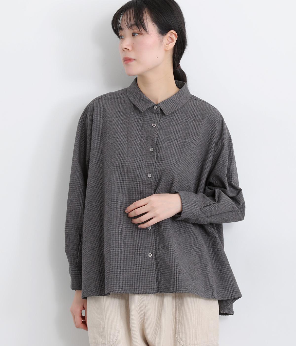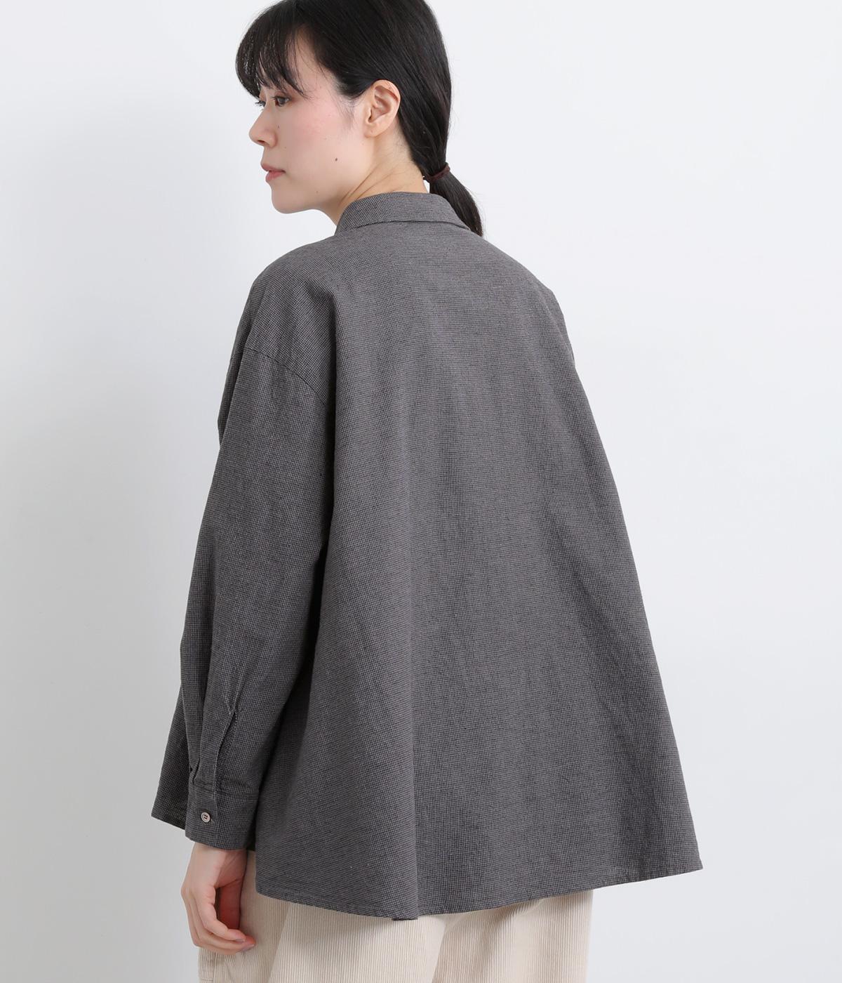 ゆったりとしたワイドシルエットのAラインシャツ。ほどよくハリのある生地と、前後差のある着丈で、体のラインカバーし、自然な落ち感を生みます。一枚でも、前ボタンをあけて羽織りとして着るのもおすすめ。チェック柄が装いにやさしい表情を添えます。