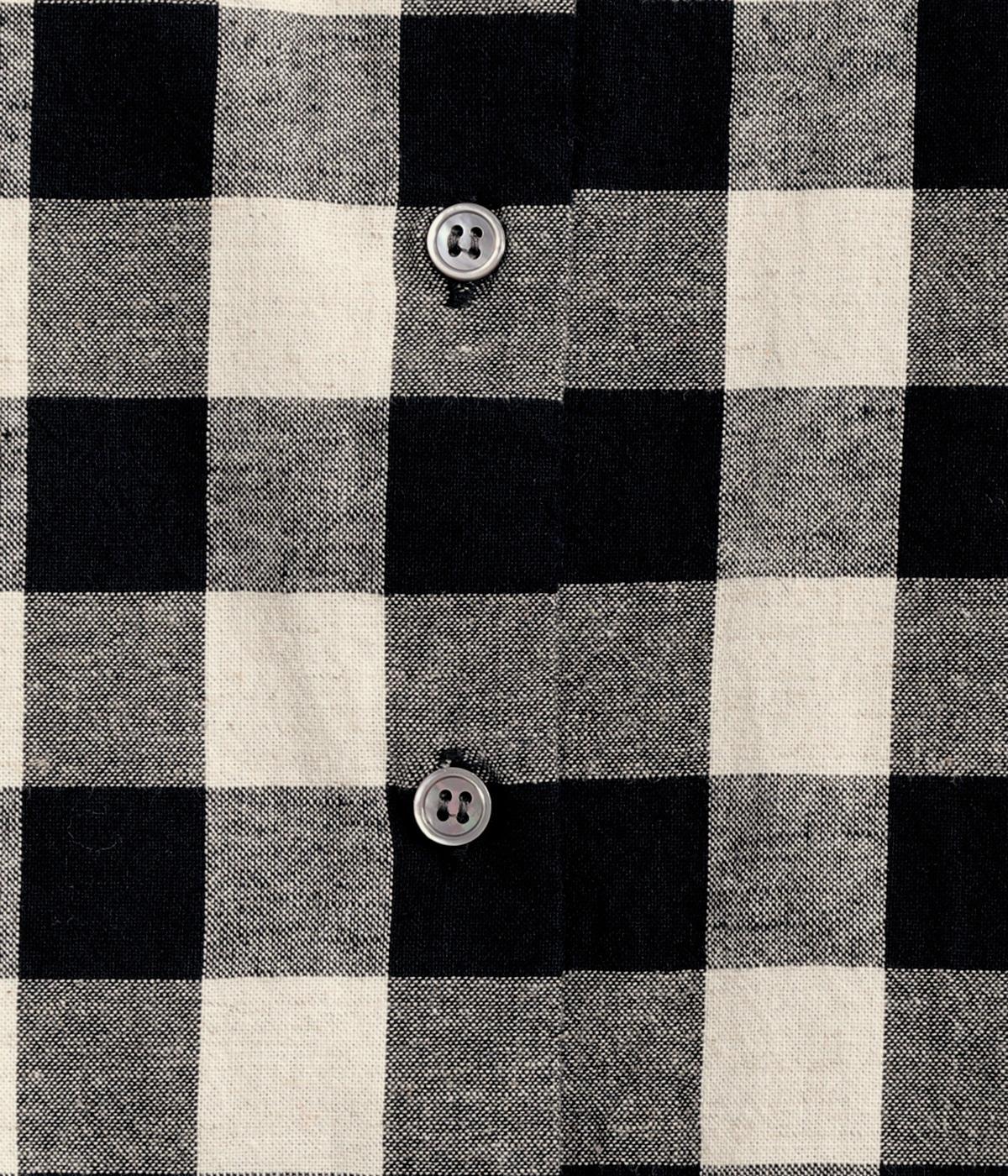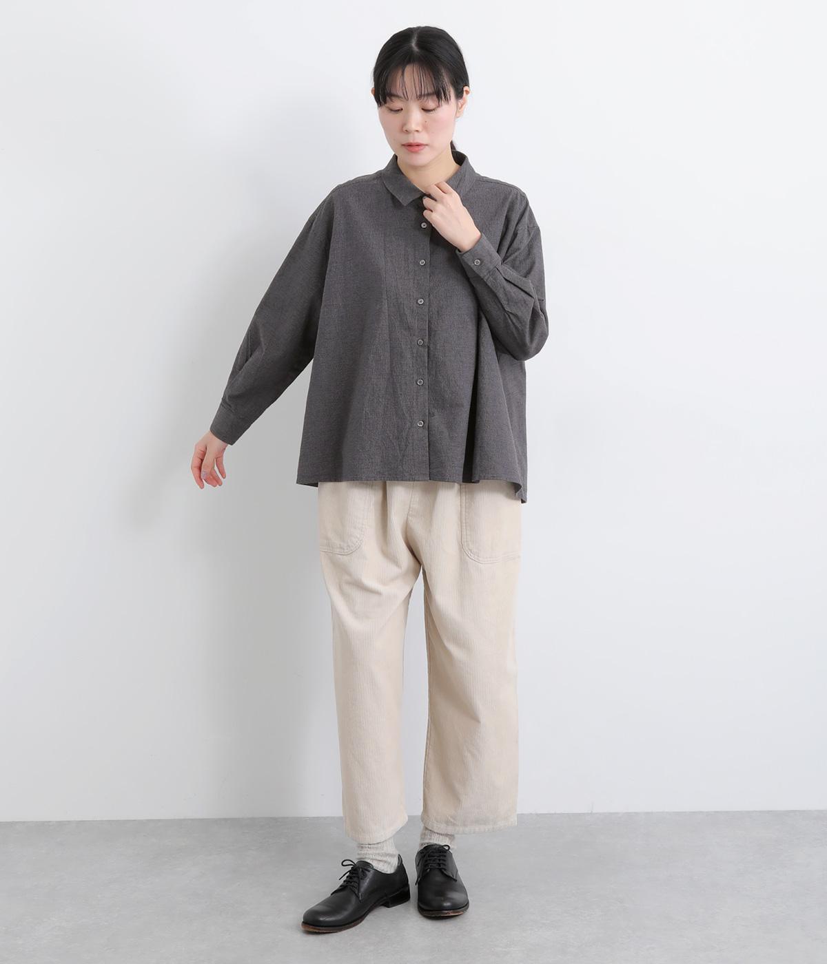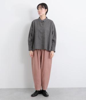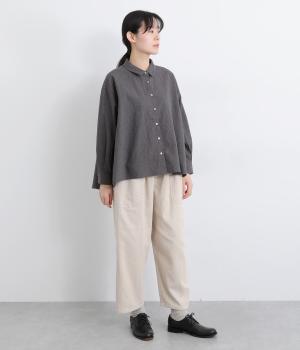ほどよい厚みとハリがある、先染めのコットンリネン生地を使用しました。着るほどにやわらかくなじみ、やさしい風合いがたのしめます。