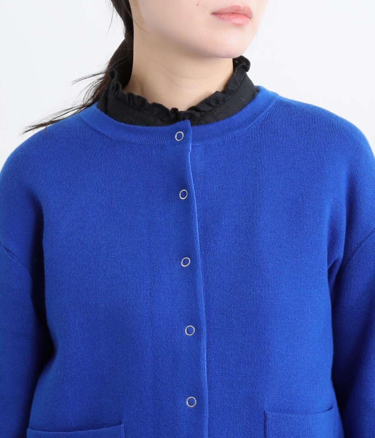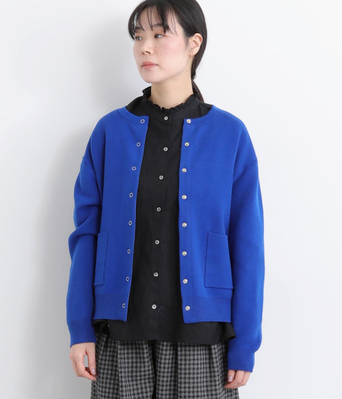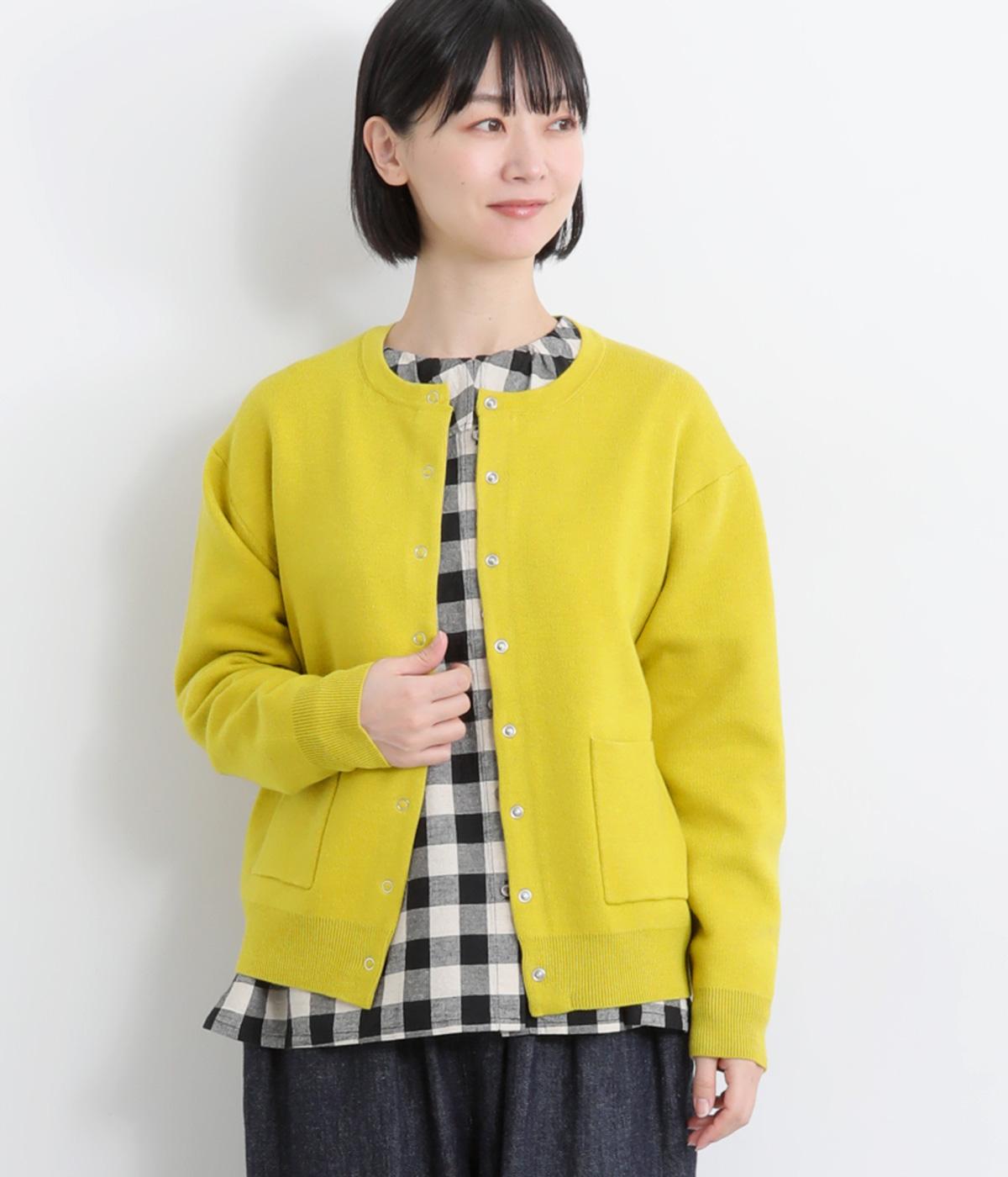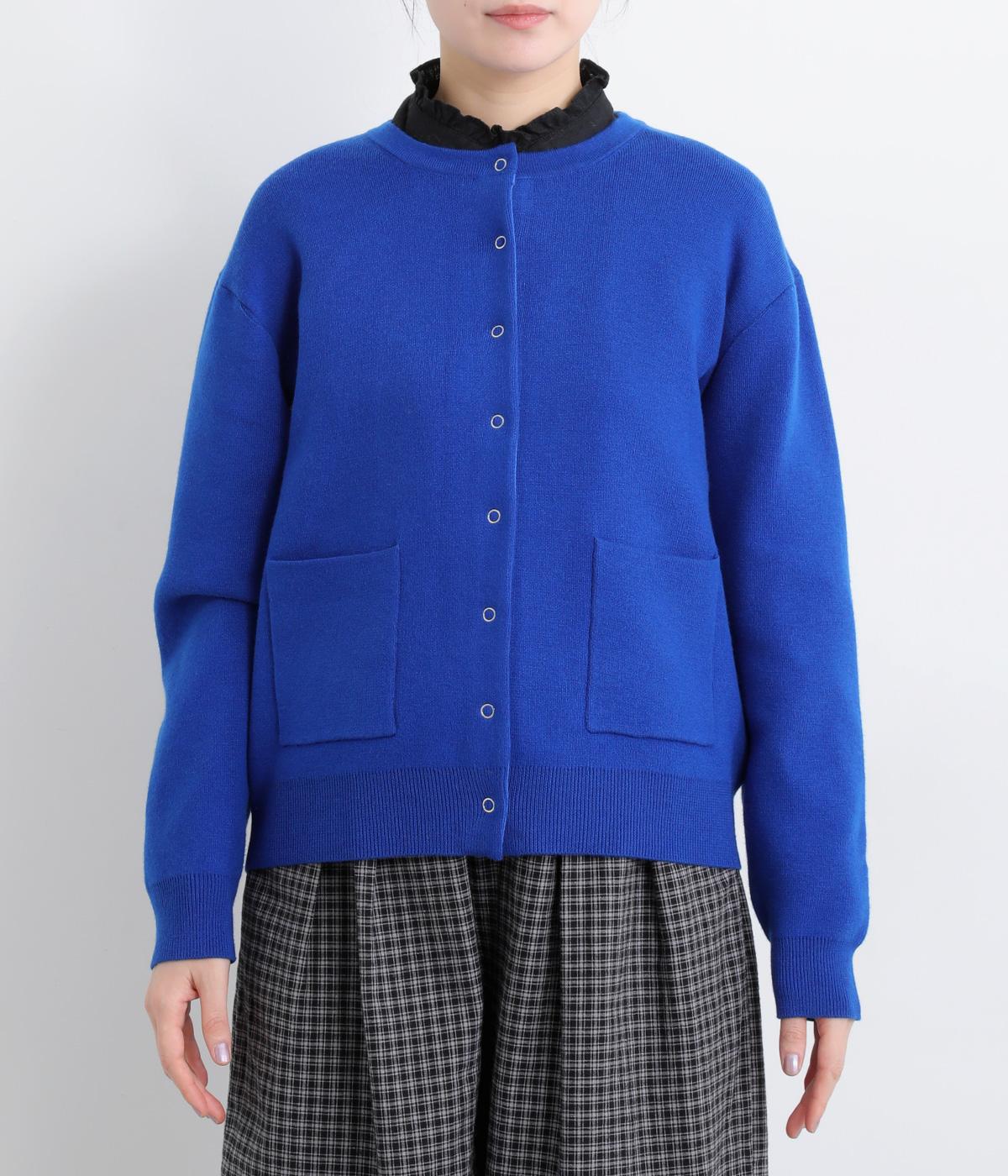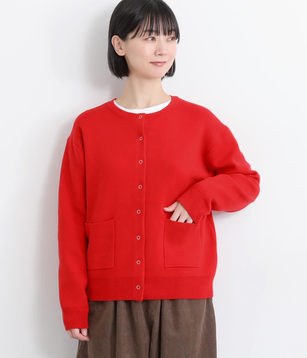 リングスナップボタンがアクセントの、シンプルながらも表情のあるカーディガンです。両サイドにあしらったパッチポケットは、大きすぎず小さすぎない絶妙なサイズ感。見た目と実用性を兼ね備えています。ボタンをとめて、プルオーバーのような着こなしもおすすめです。