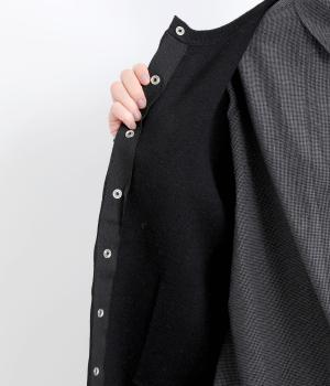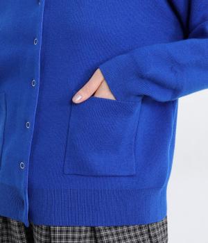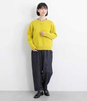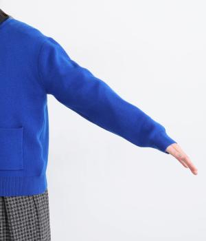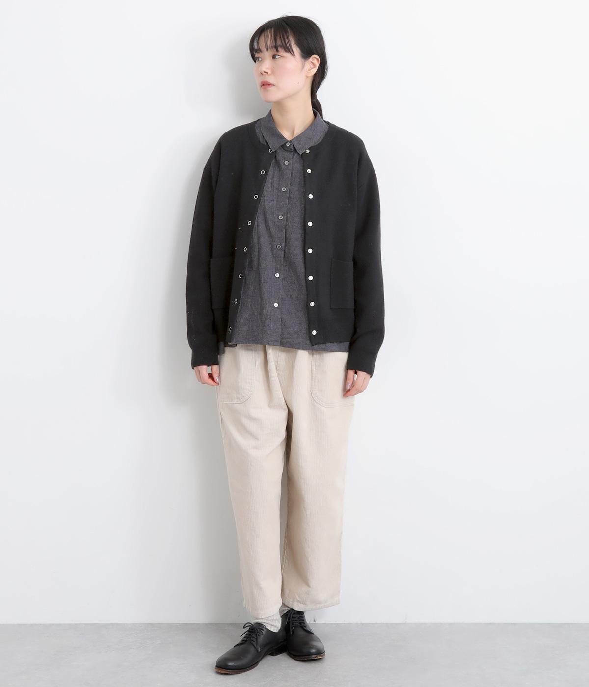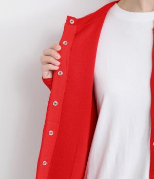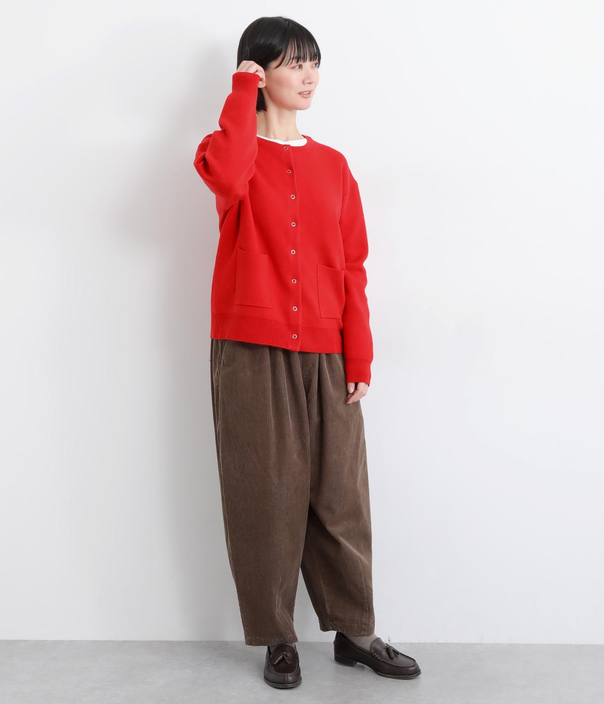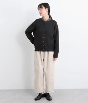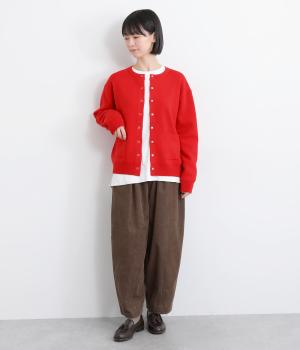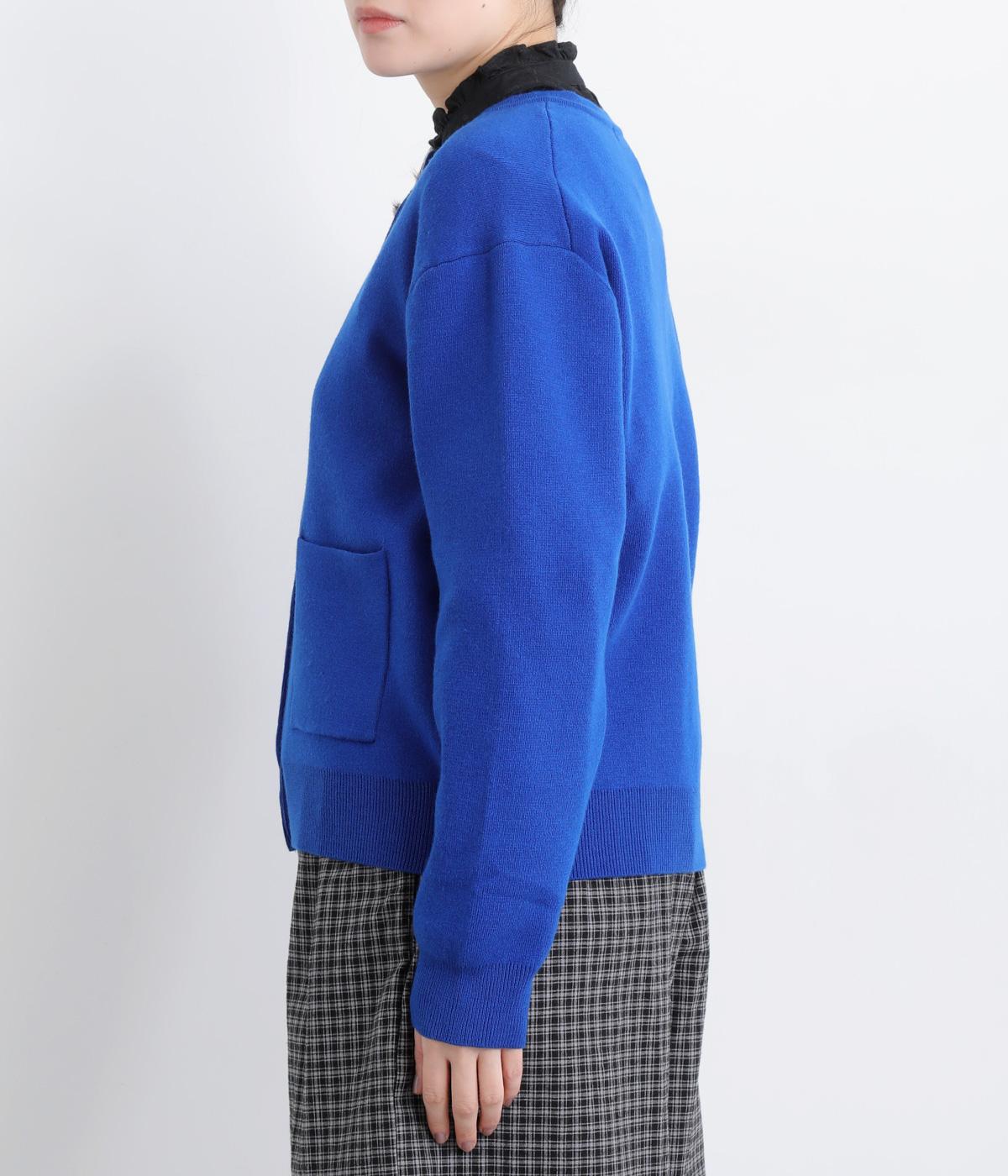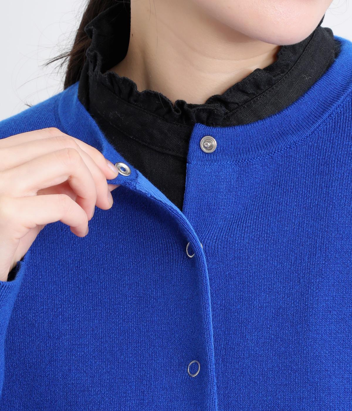 リングスナップボタンがアクセントの、シンプルながらも表情のあるカーディガンです。両サイドにあしらったパッチポケットは、大きすぎず小さすぎない絶妙なサイズ感。見た目と実用性を兼ね備えています。ボタンをとめて、プルオーバーのような着こなしもおすすめです。