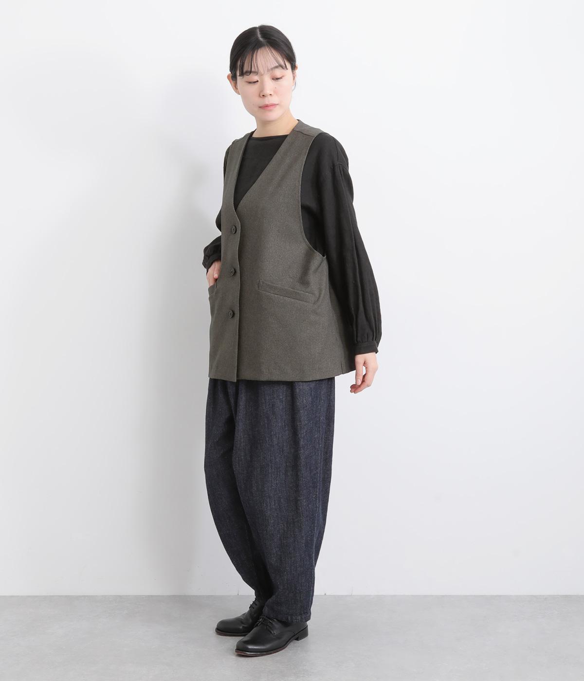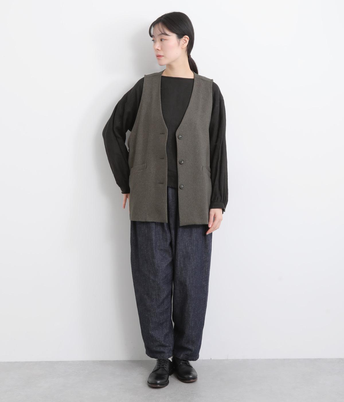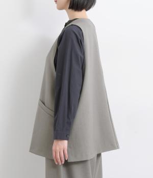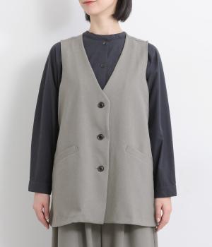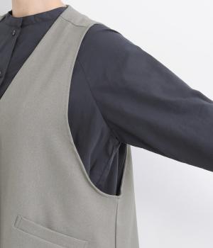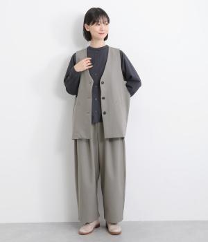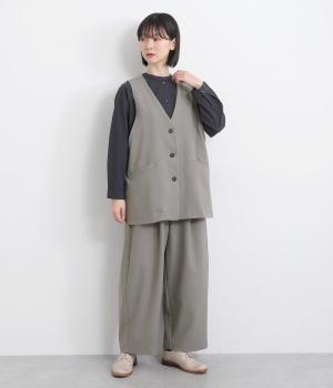 広くとったアームホールがこなれ感のあるVネックベスト。インナーを選ばずに重ねることができます。オンにもオフにも着まわせる一枚。同素材のパンツと合わせれば大人なセットアップコーディネートが完成します。