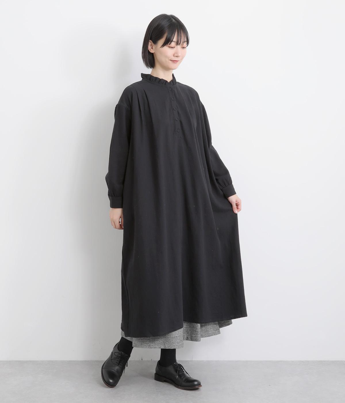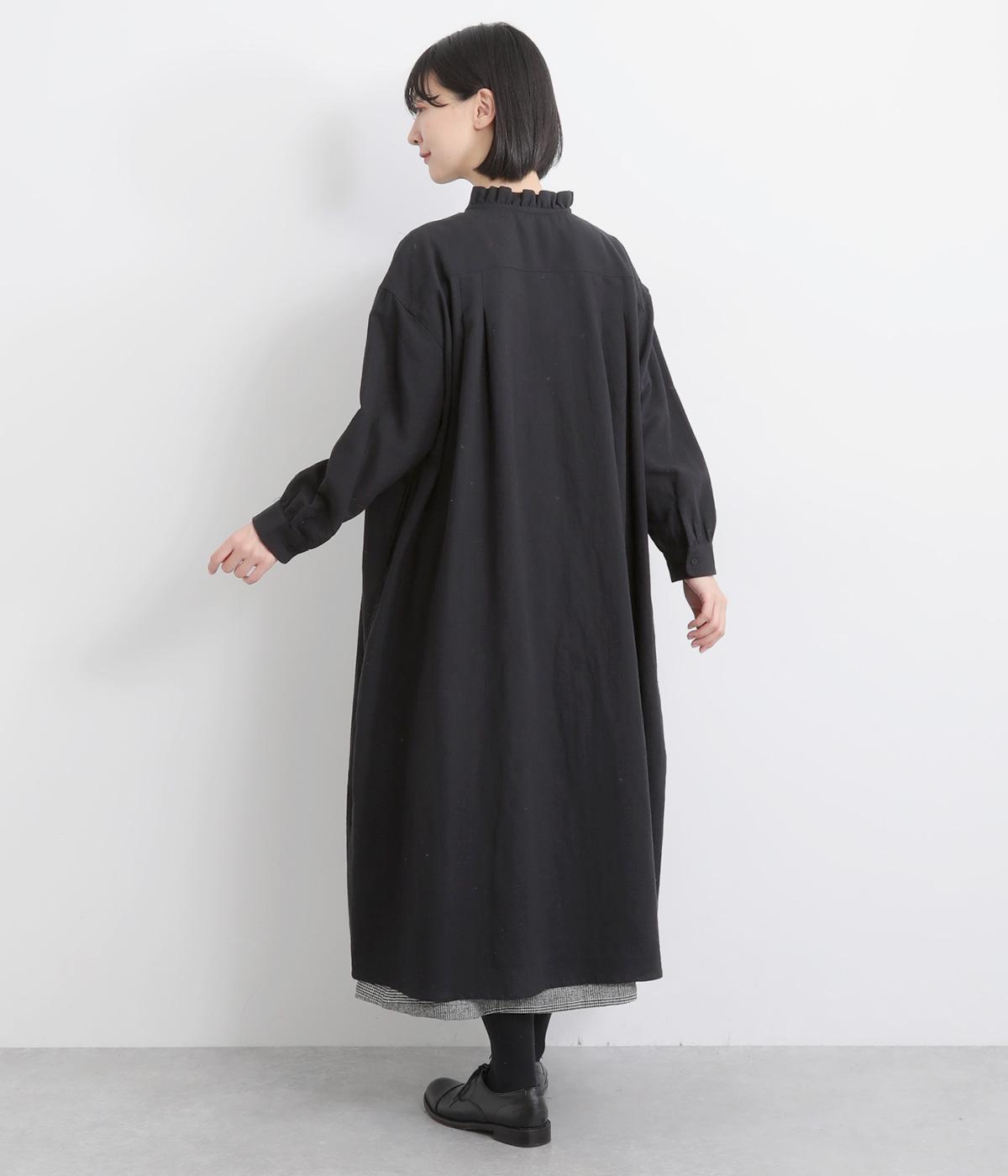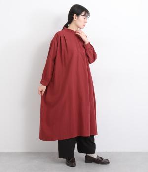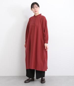 たっぷりした生地感で存在感を放つプルオーバーワンピース。前後のタックがきれいな落ち感を生みデザインポイントに。軽やかな着心地なのでレイヤードスタイルにもぴったりです。フリルネックがほのかな華やかさを演出します。