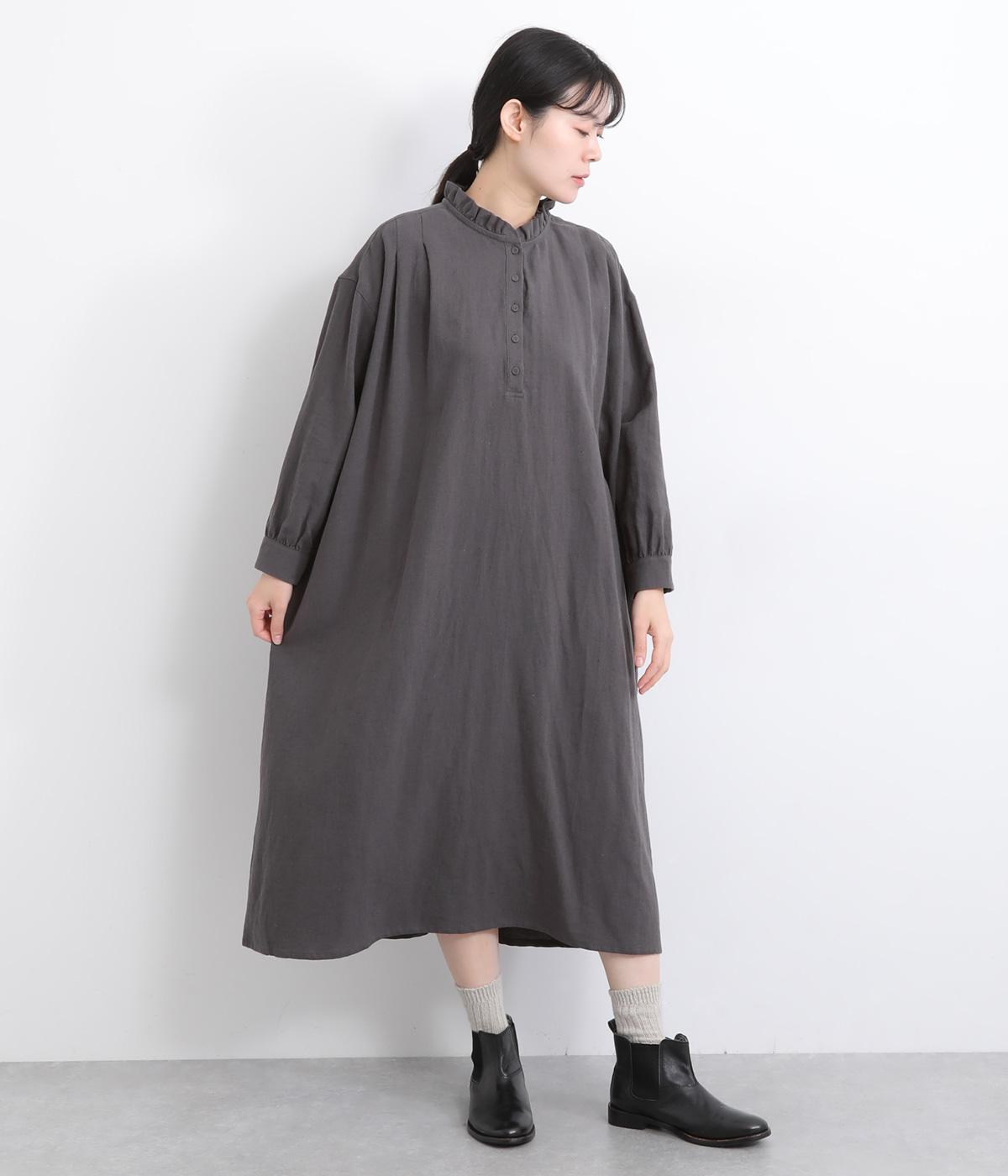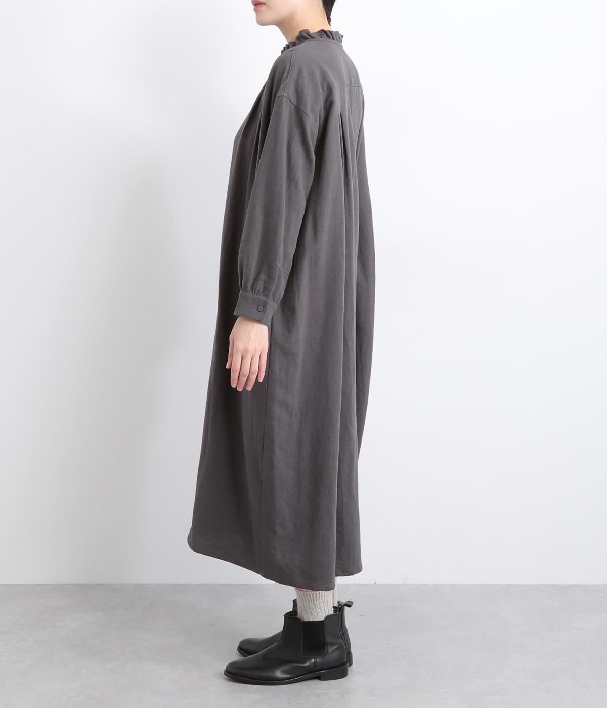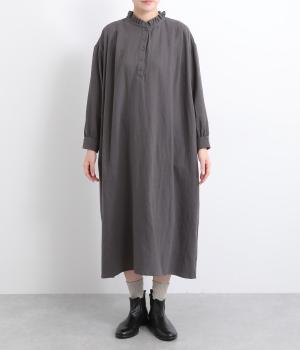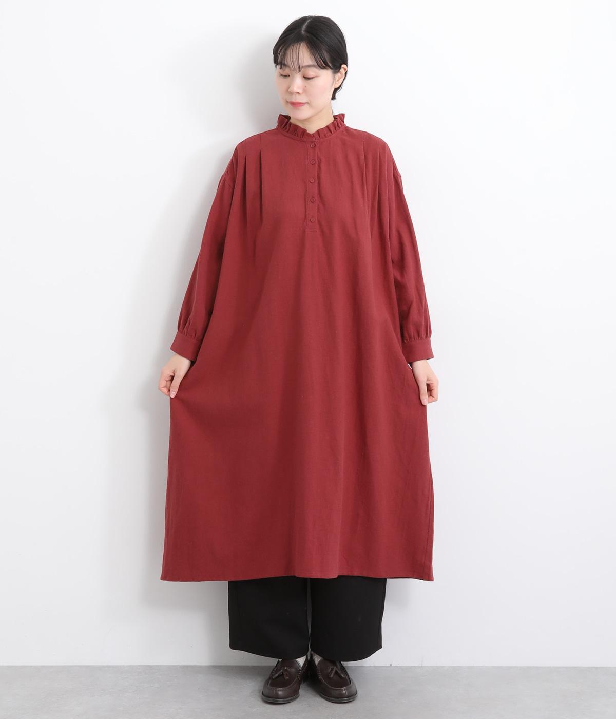 たっぷりした生地感で存在感を放つプルオーバーワンピース。前後のタックがきれいな落ち感を生みデザインポイントに。軽やかな着心地なのでレイヤードスタイルにもぴったりです。フリルネックがほのかな華やかさを演出します。