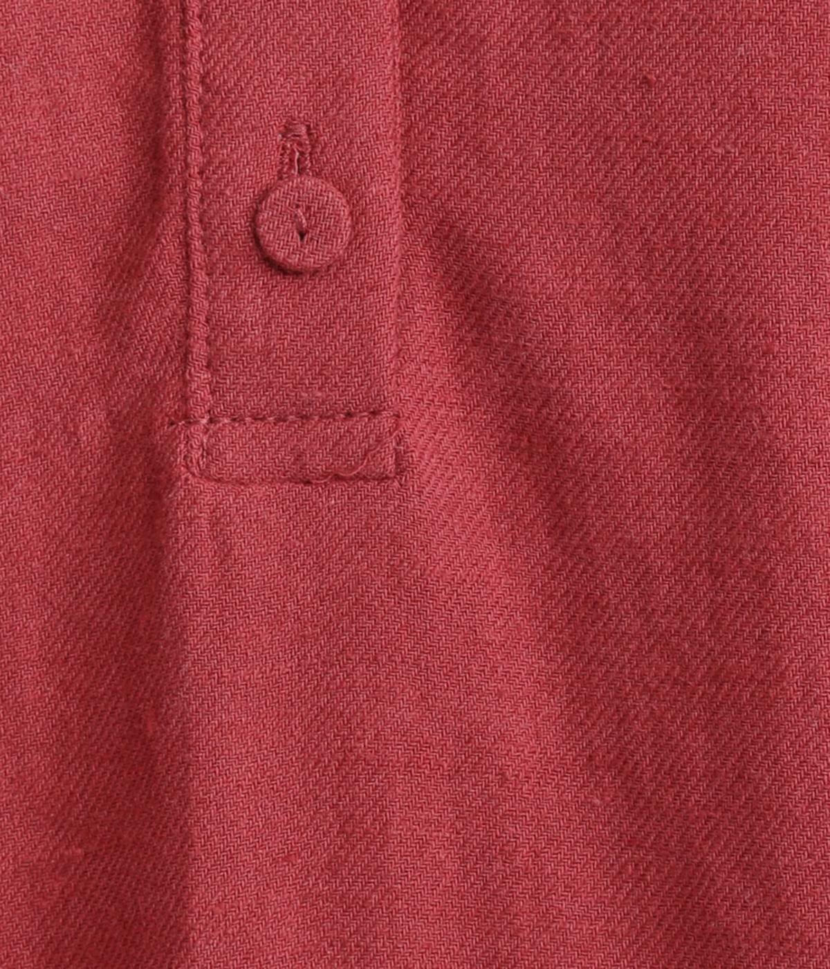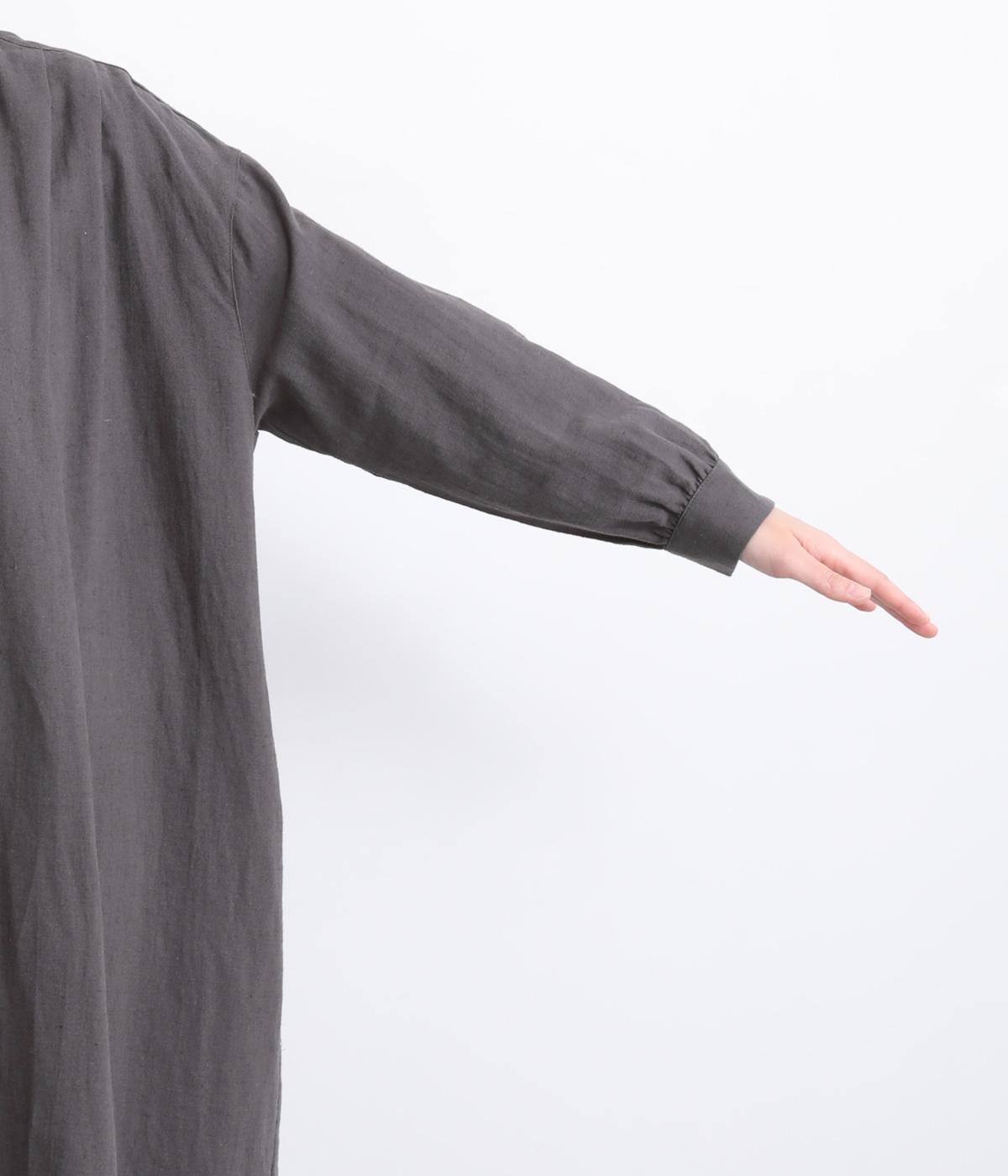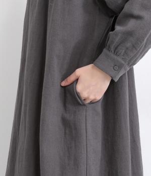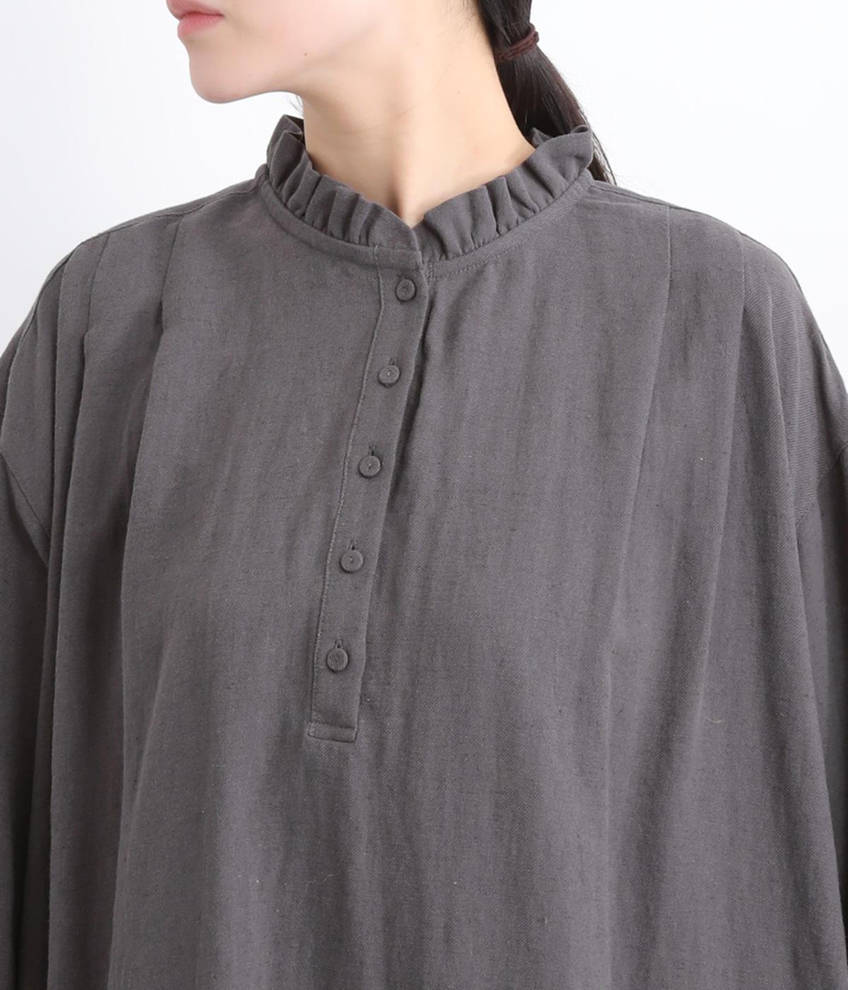柔らかくしなやかなハリのコットンリネン生地を使用しました。襟のフリルも優しい肌あたりです。ネップのある素朴な風合いが魅力の素材感です。