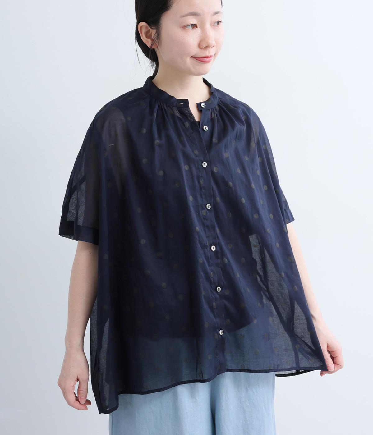 ランダムドット コットンギャザーブラウス
