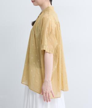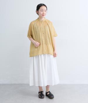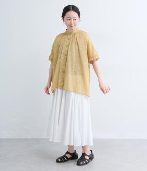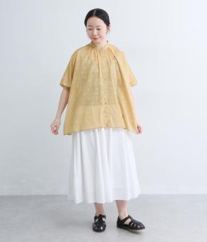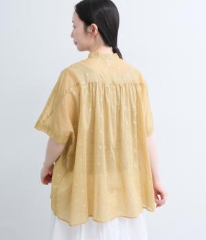 コットンローン ミモザ刺繍切替ギャザーブラウス