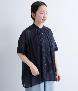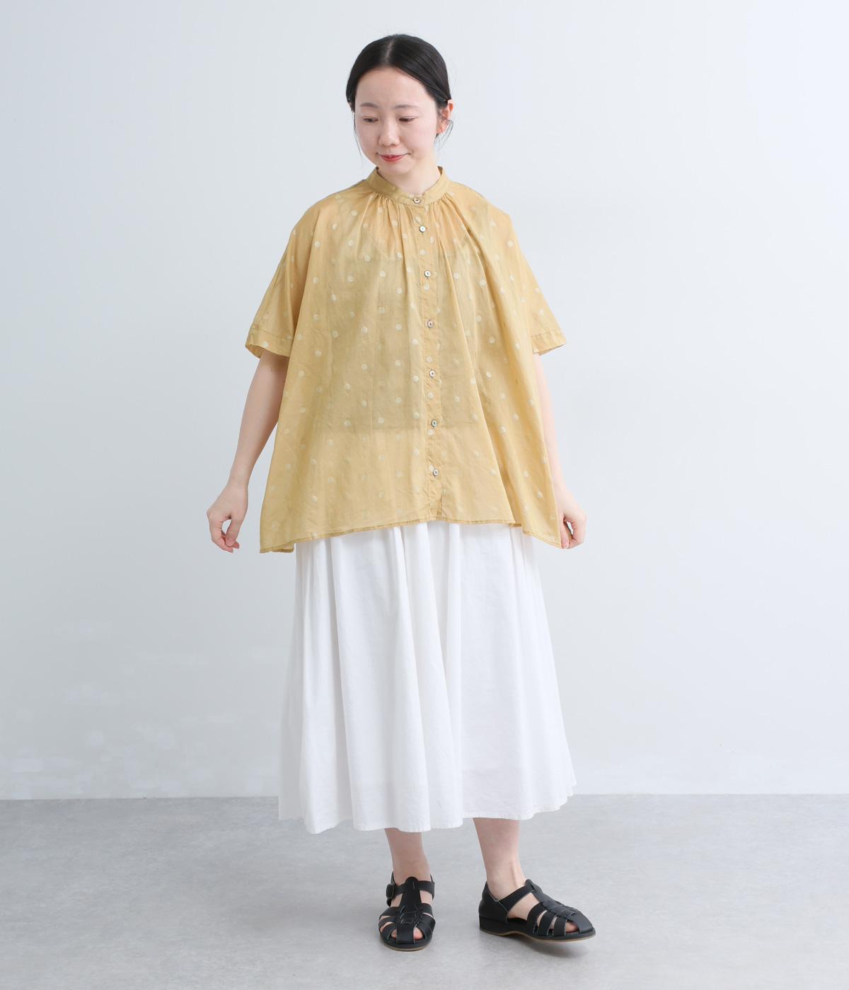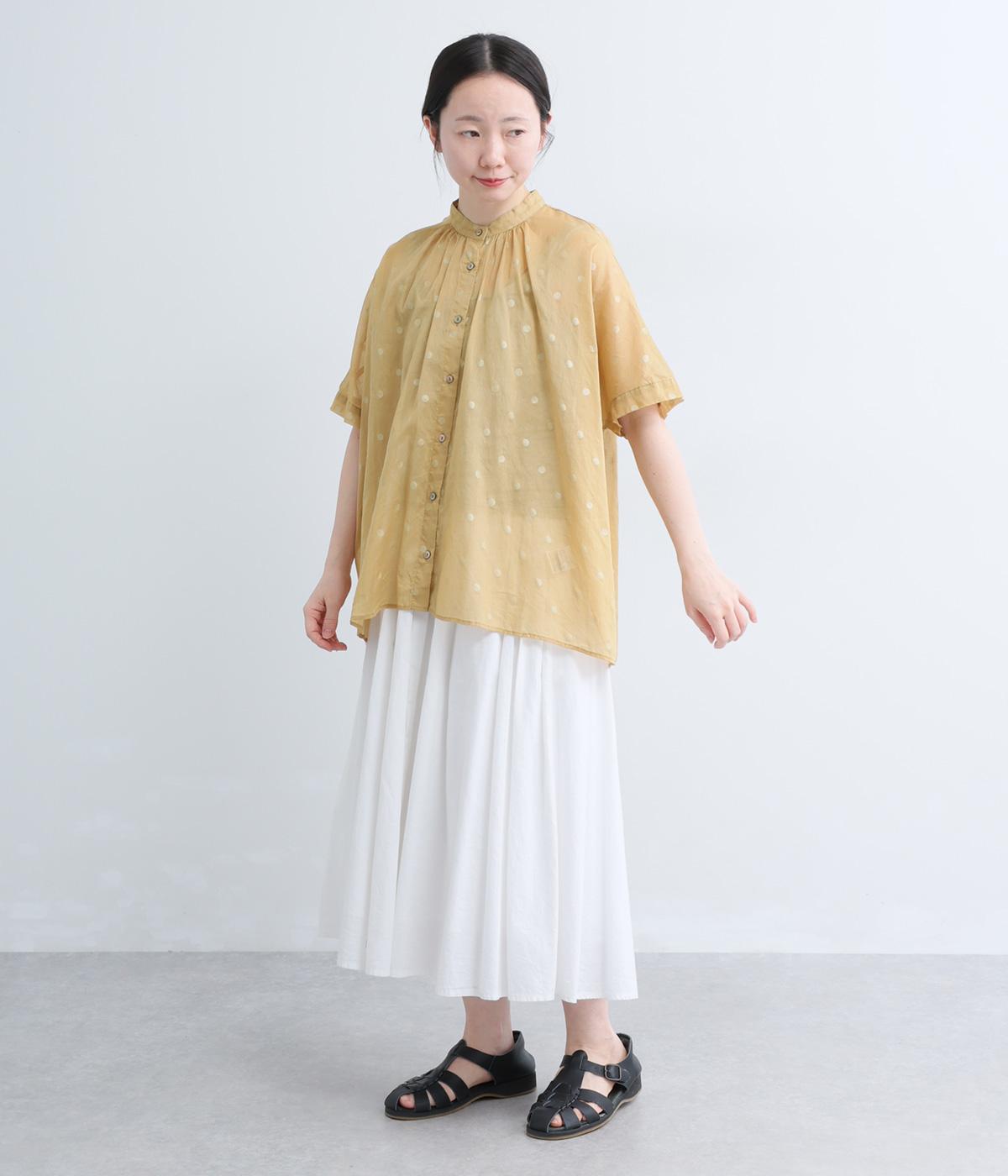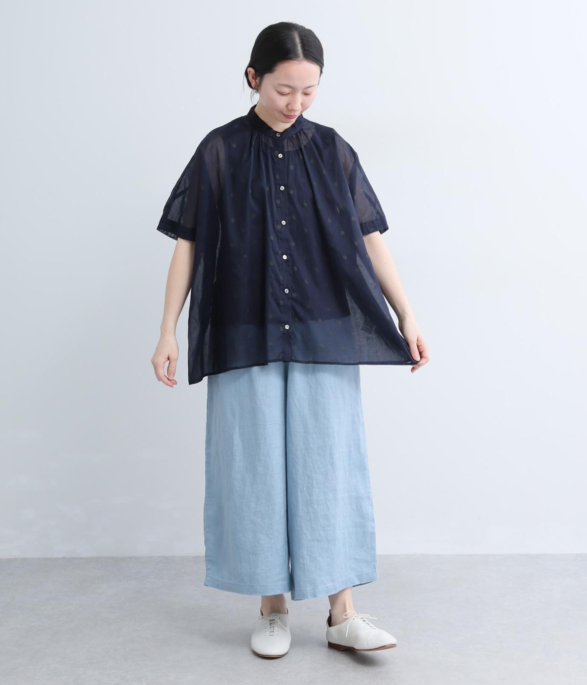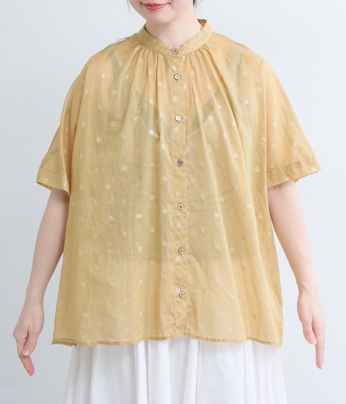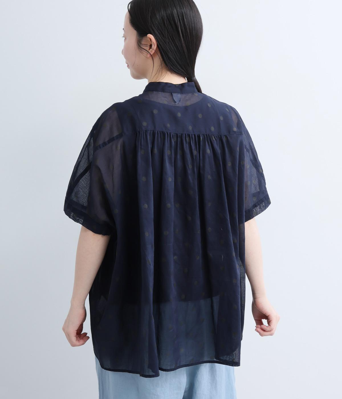 ドットダブルガーゼギャザーブラウス