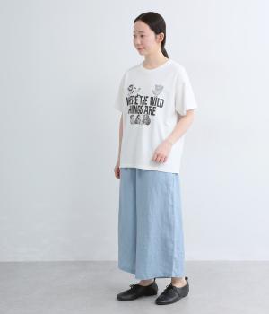 リネンウエストゴム8分丈ワイドパンツ(スカイブルー)