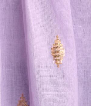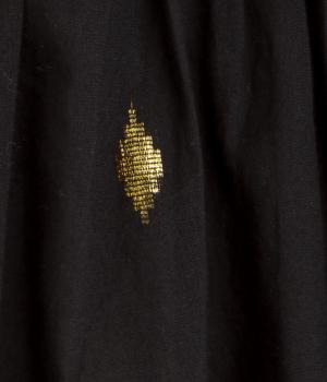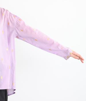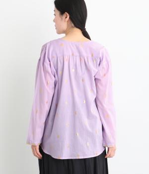 ふんわりとやわらかなコットンベースの生地に、キラリと輝く金糸を織り込み、ナチュラルな雰囲気の中に上品さを添えました。着るたびに風合いの変化を楽しめる素材です。