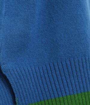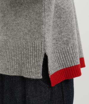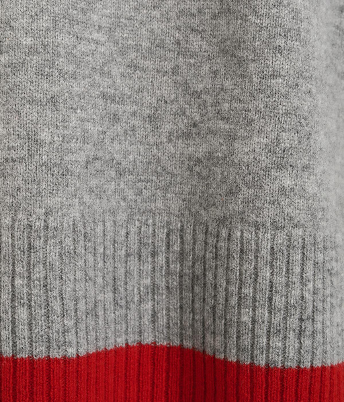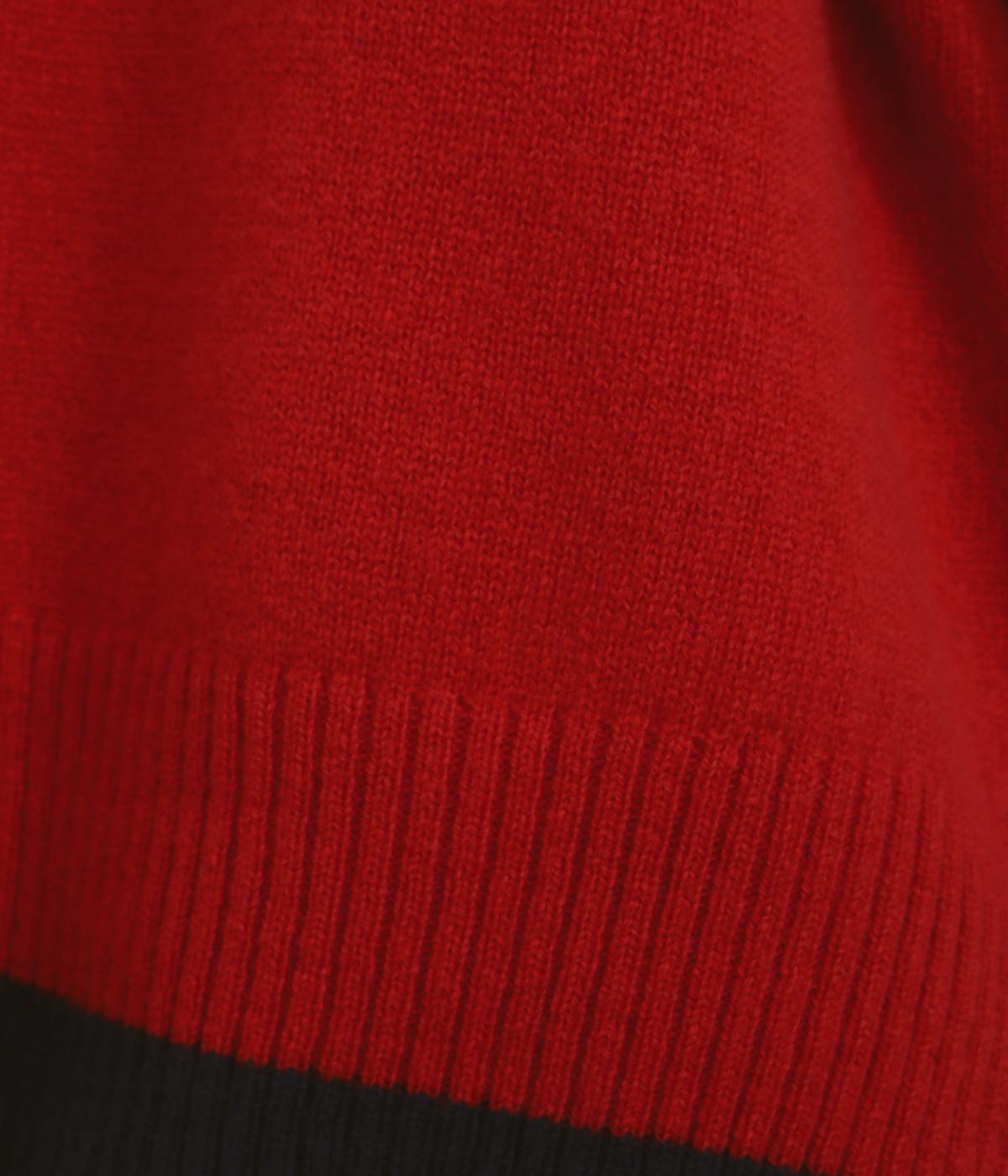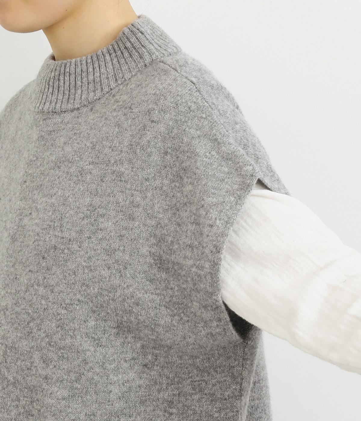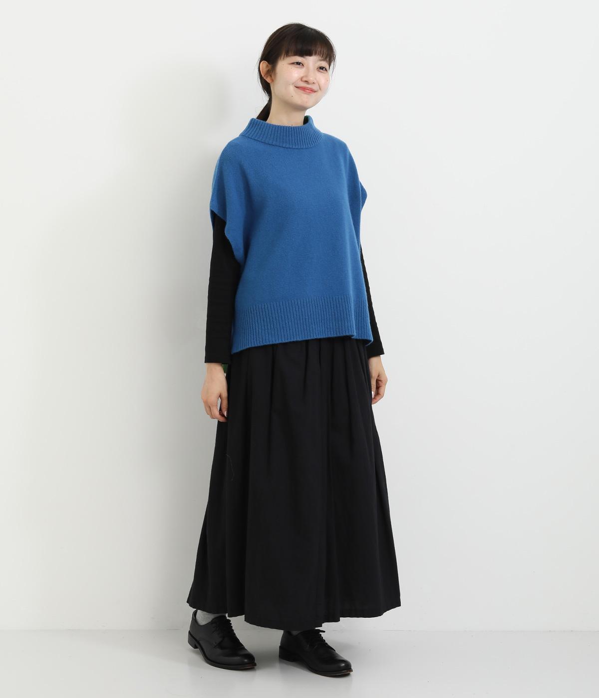 うしろの裾のバイカラーがデザインポイントになっているベスト。高すぎないボトルネックとゆったりした身幅でリラックスした着心地です。秋冬のレイヤードスタイルにパッと華やかさを添えるアイテムです。