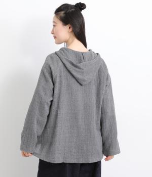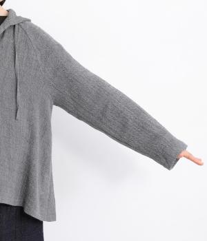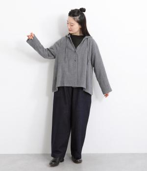 カーディガン感覚でラフに羽織れるフーディジャケット。カジュアルに合わせやすく、素材感がいいので手抜き感もなくこなれた印象に魅せてくれます。フード紐も同素材で合わせたワンカラー仕立てで、落ち着きよくまとまりのある一枚に。
