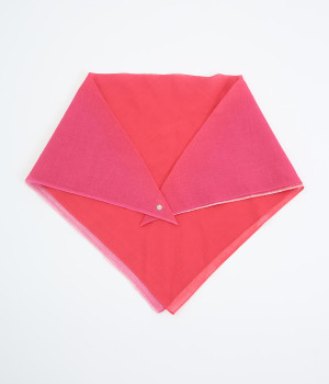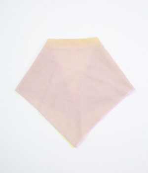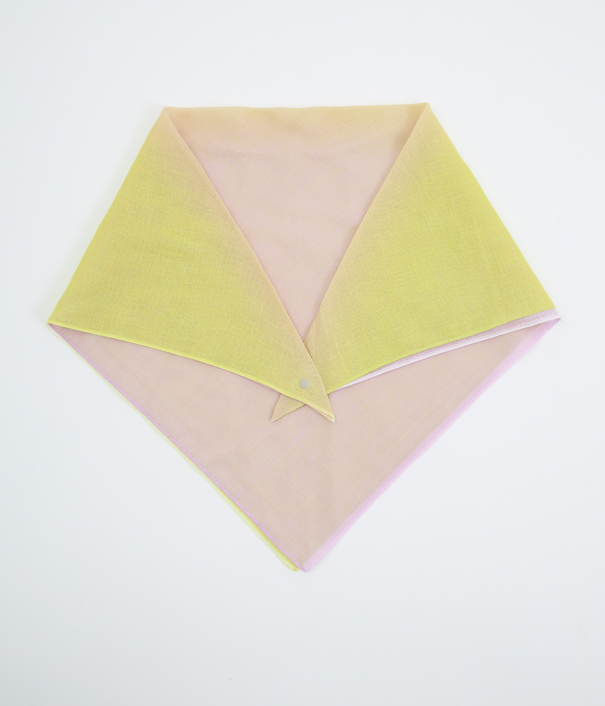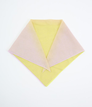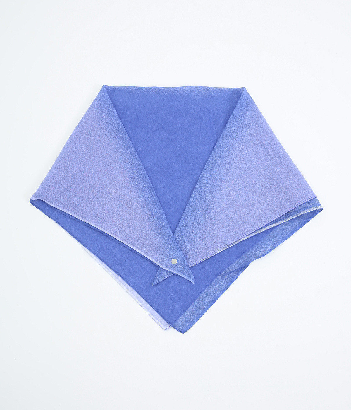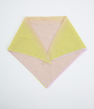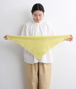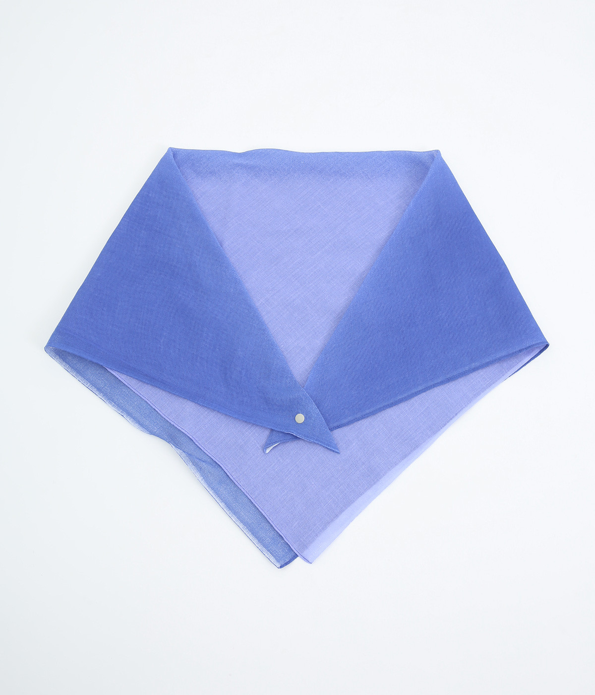 ワンタッチで手軽に装着できる三角スカーフ。美しいグラデーションが生み出すバイカラー仕立てで、気分やコーディネートに合わせて2通りの色を楽しめます。暑い季節の紫外線や冷房対策にも重宝する一枚です。