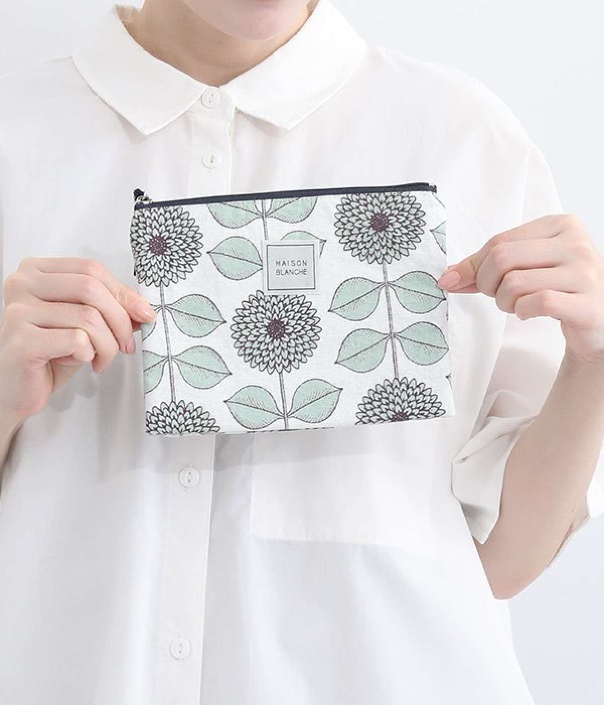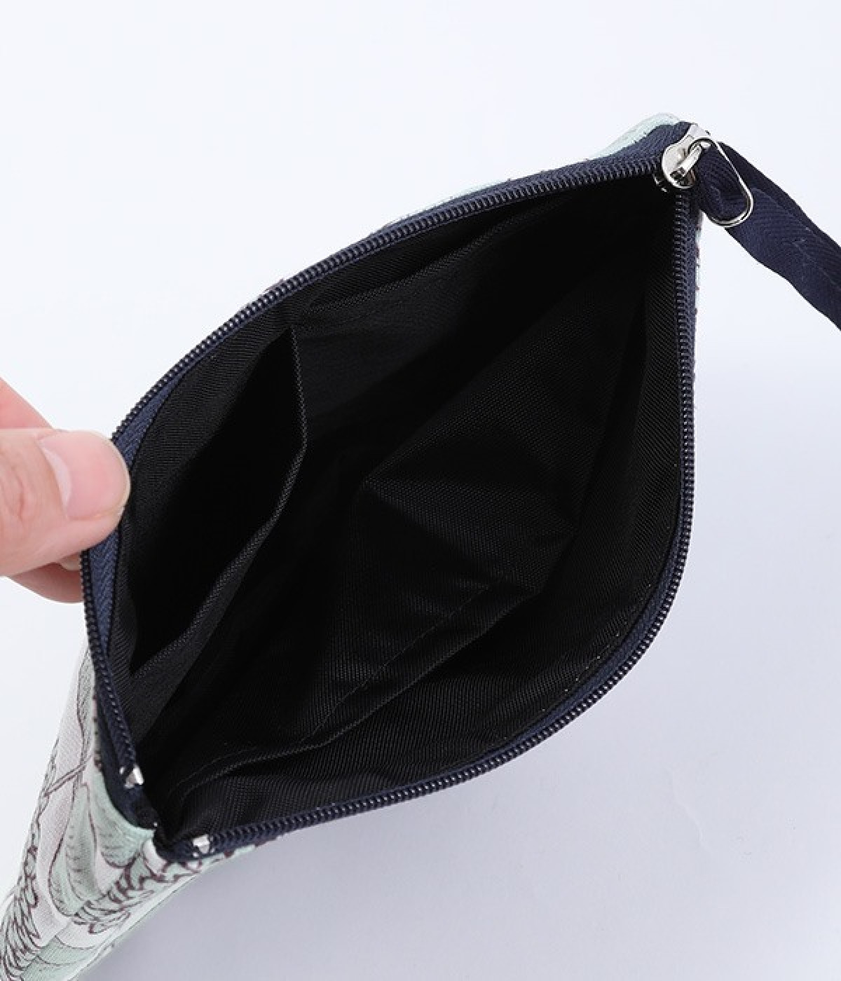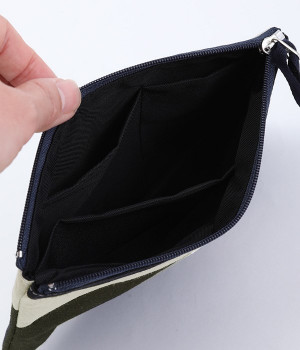 一見フラットながら実は内側に折りたたんだマチがついているポーチです。物を入れてもすっきりコンパクトに収まり、マチを広げると自立する優秀な設計。内ポケットも充実しているので、整理しやすく使い勝手も考慮されています。ポケットティッシュなど薄いものを入れるときはフラットに、立体的なメイク用品などを収納するときはマチを広げる、など用途に合わせて変えられるのが魅力です。