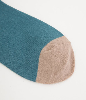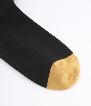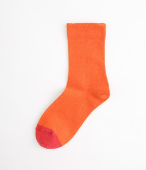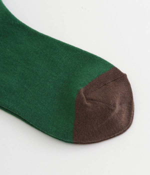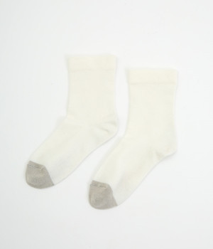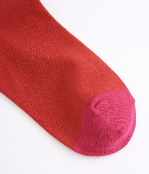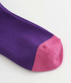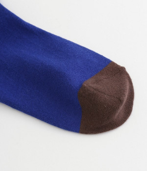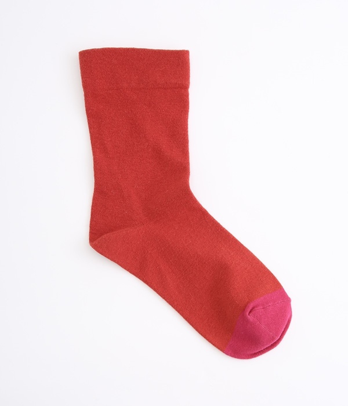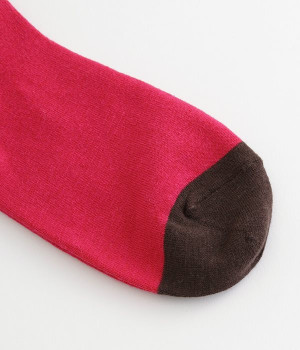 つま先部分を配色にした、バイカラーデザインのソックス。メリハリのある色使いが、スタイリングを新鮮に仕上げてくれます。はき口にゴムを入れない仕様なので、気になるソックスの締めつけ感も解消。伸びのよい柔らかな生地は、足全体をやさしく包み込んでくれます。シーズンレスで使えて、デイリー使いに重宝するアイテムです。