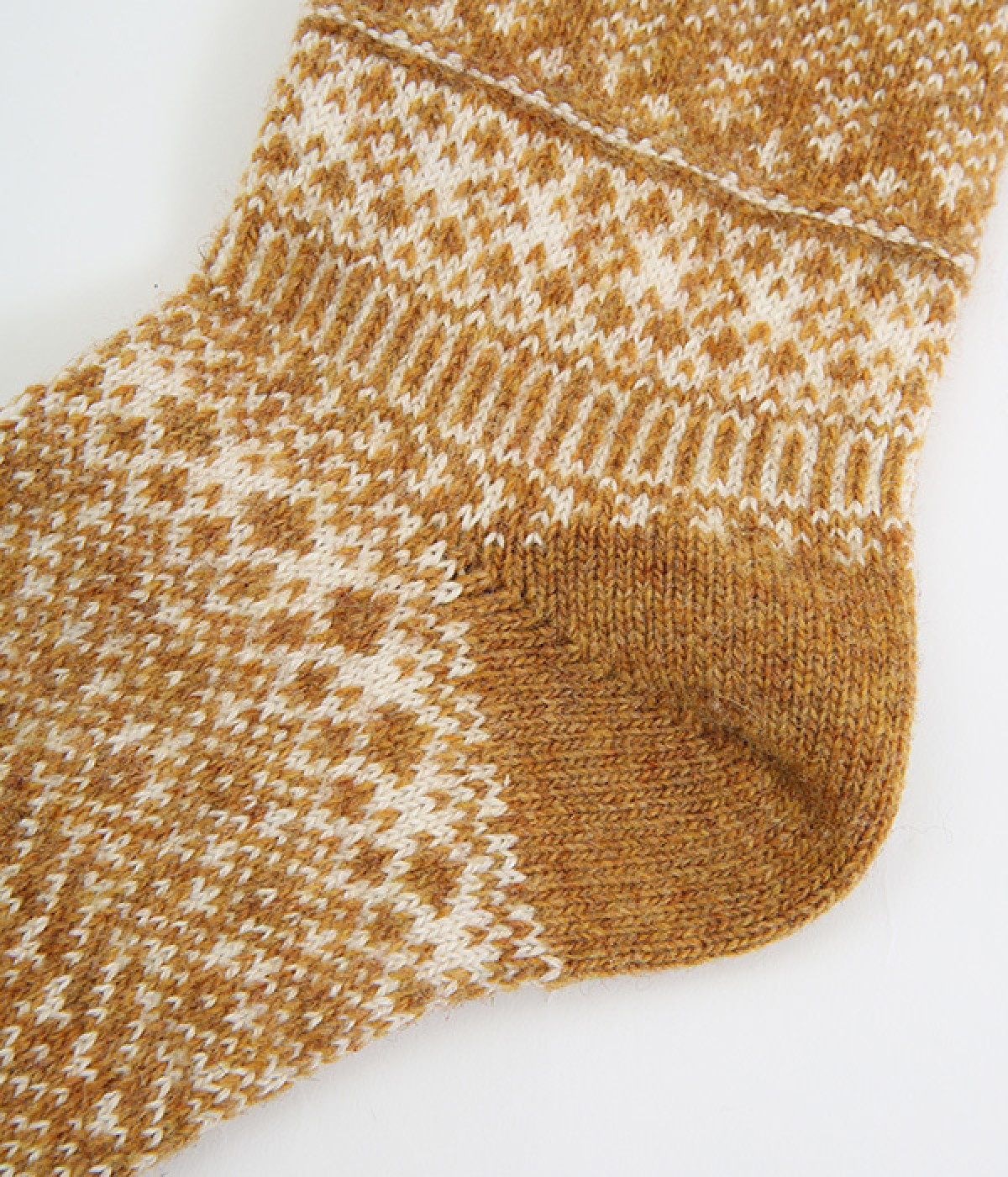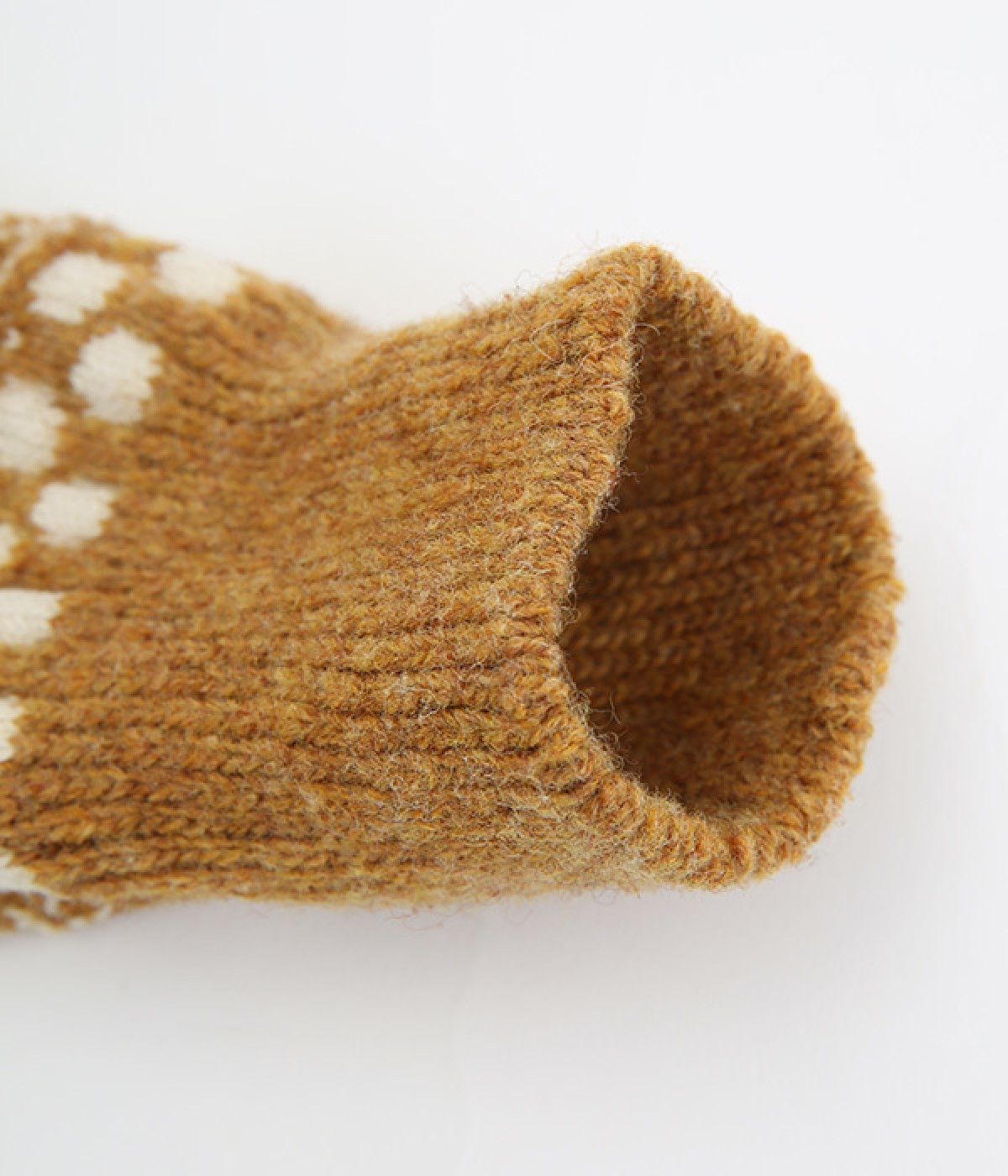ベースにウール糸を使用した、ふっくらとしたほどよい厚みがあり冬の冷え対策にもぴったりな生地感です。丁寧に織り上げられているためごわつきが少なく、はき心地のよさにもこだわっています。