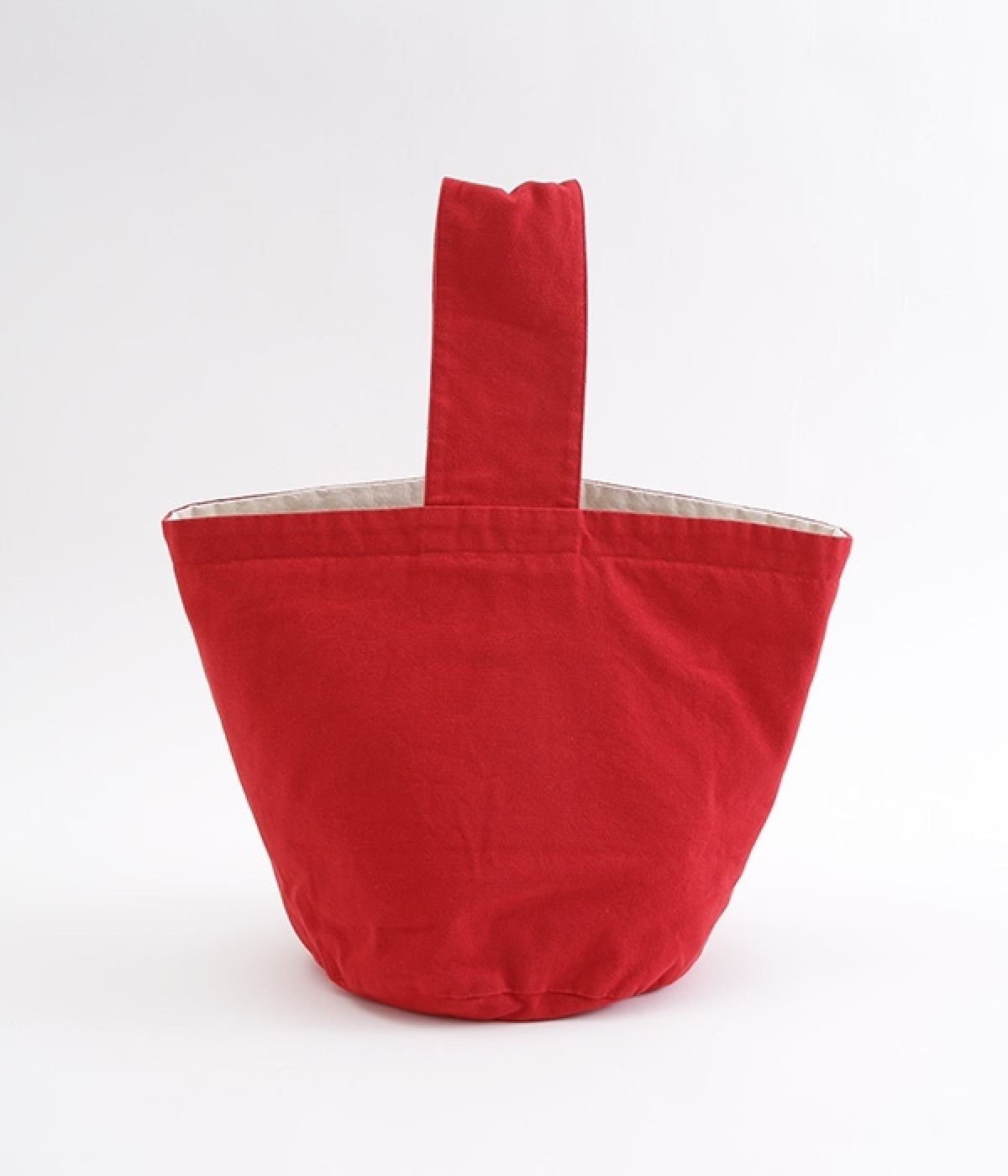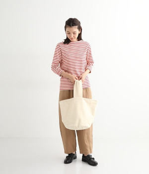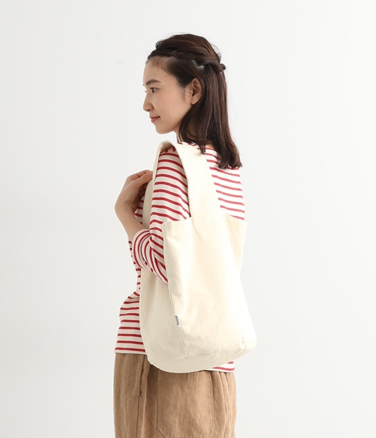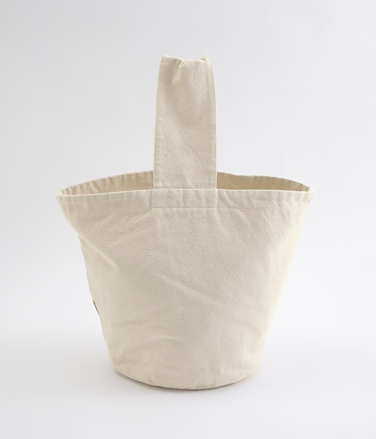 ほどよいハリとやわらかさに強度を備えた、軽やかなコットンキャンバスを使用。着こなしになじむ落ち着いたカラーで、日常に使いやすいほどよい大きさのバッグです。底面が広いので、傾けたくないお弁当などの収納にもぴったり。B5サイズの手帳が入る便利な多目的ポケットに、鍵などがつけられるループ付きで、シンプルに見えて機能面も優秀です。表地裏地のさりげない配色もポイント。肩掛けもできるワンハンドルで、幅広いシーンに活躍してくれます。