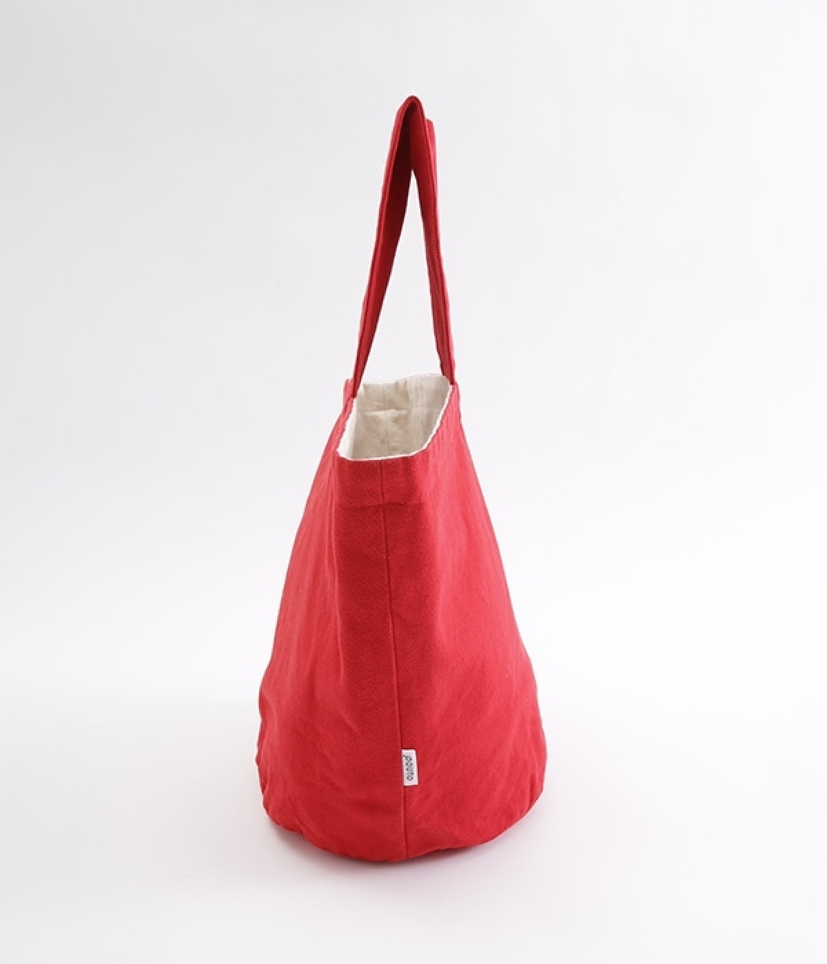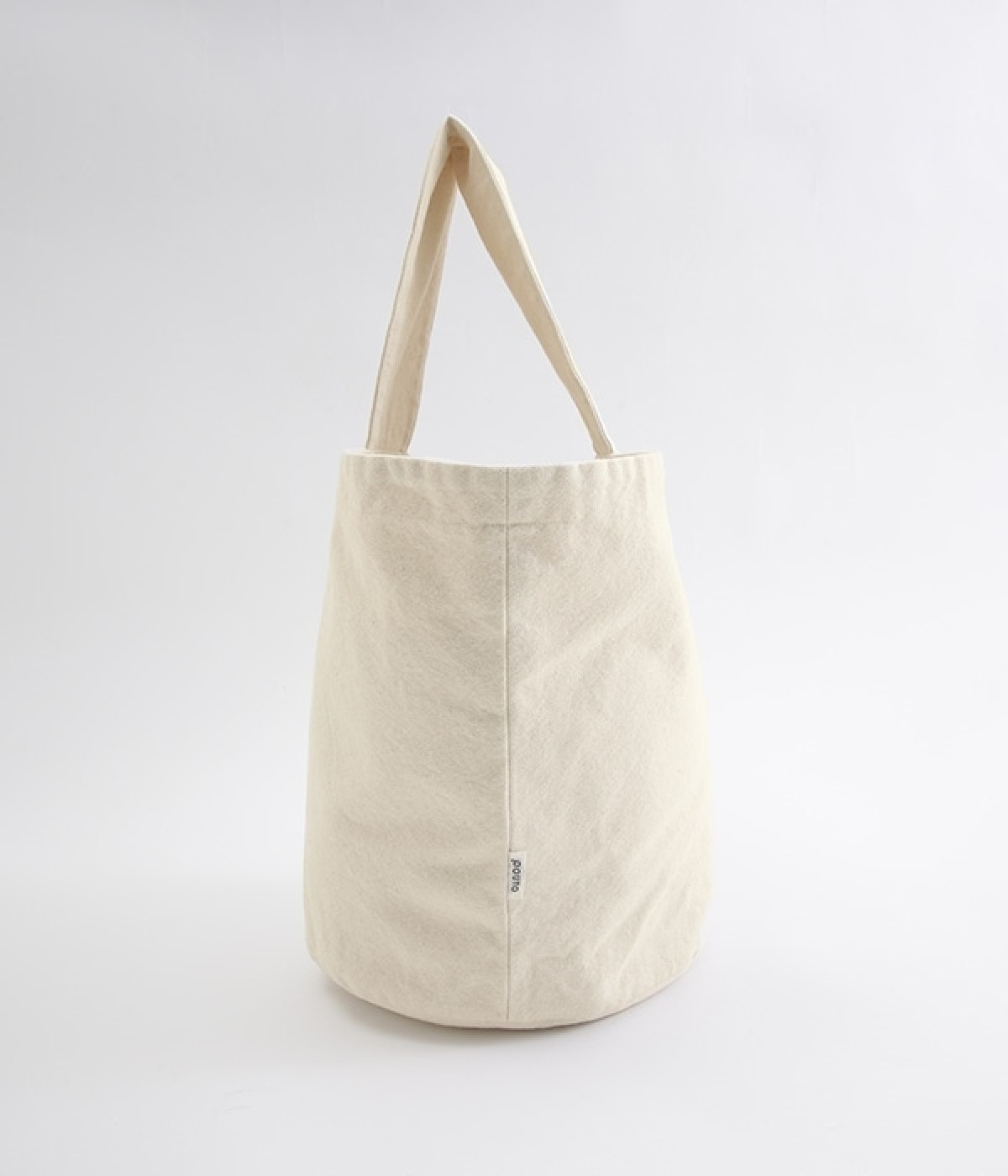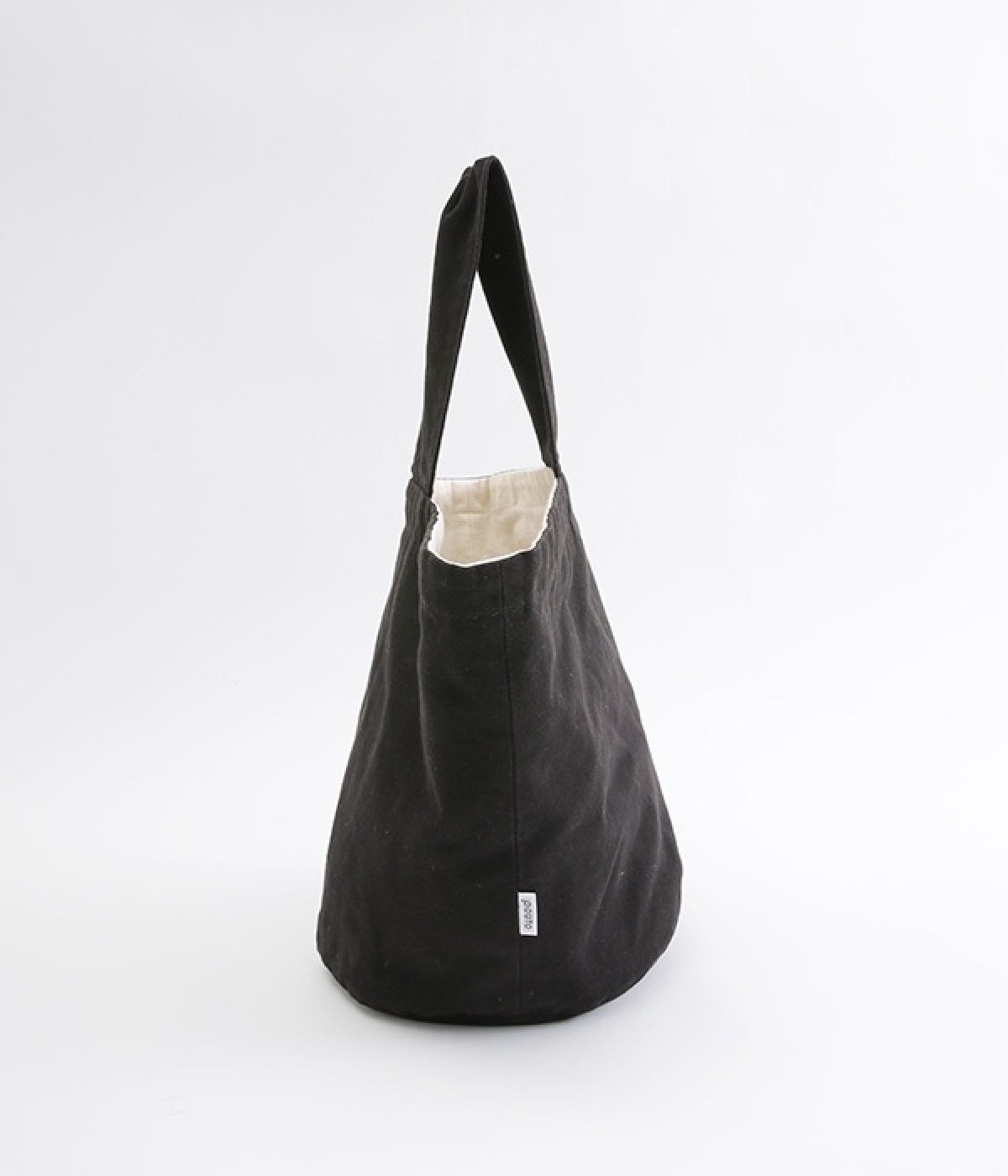 ほどよいハリとやわらかさに強度を備えた、軽やかなコットンキャンバスを使用。着こなしになじむ落ち着いたカラーで、日常に使いやすいほどよい大きさのバッグです。底面が広いので、傾けたくないお弁当などの収納にもぴったり。B5サイズの手帳が入る便利な多目的ポケットに、鍵などがつけられるループ付きで、シンプルに見えて機能面も優秀です。表地裏地のさりげない配色もポイント。肩掛けもできるワンハンドルで、幅広いシーンに活躍してくれます。