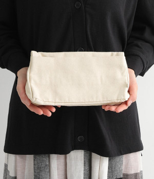 くたっとした肌触りがこなれた雰囲気のコットン帆布を使用した、三角マチがかわいいポーチです。見た目以上にしっかりと容量があり、バッグインバッグとしても重宝します。歯ブラシなどの長さのあるものも入るので、旅行や出張のお供にもおすすめ。内側は細かく仕分けができるよう小部屋に分かれています。目的やシーンに合わせて何個も欲しくなりそうな万能アイテムです。