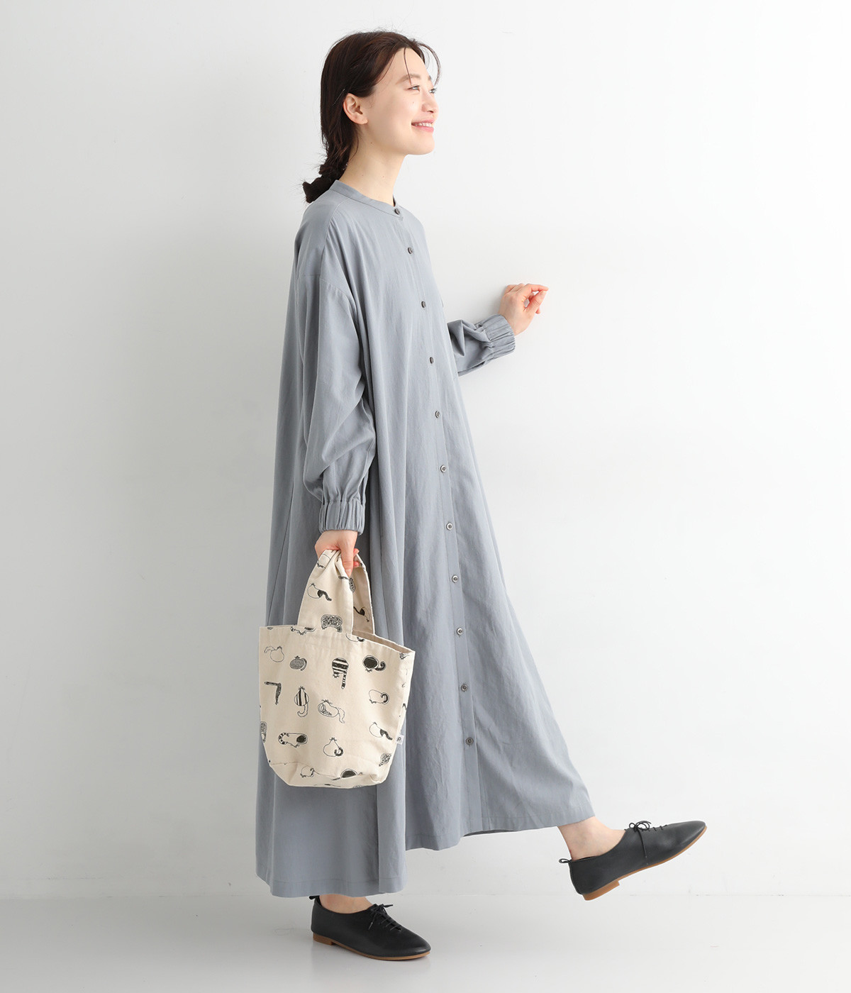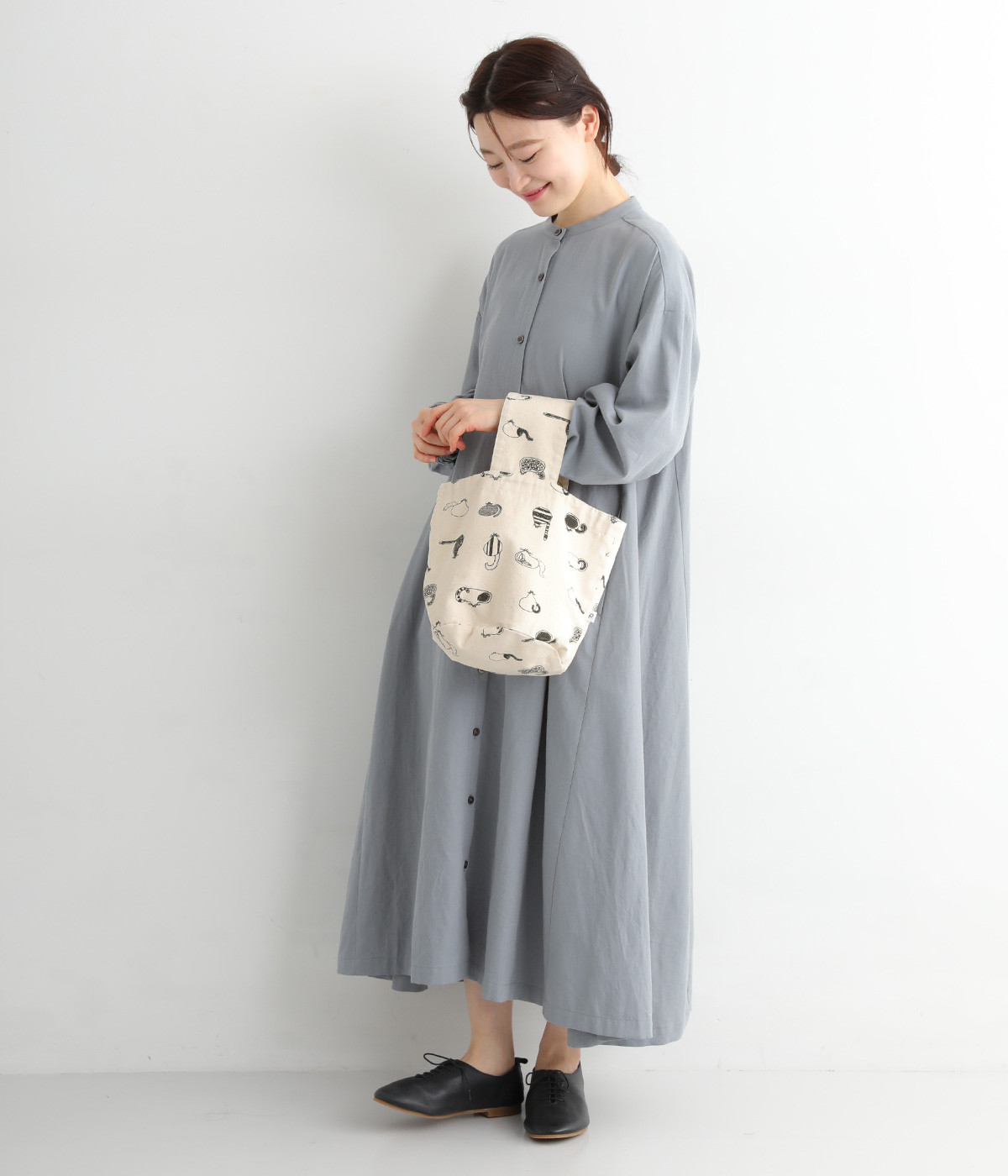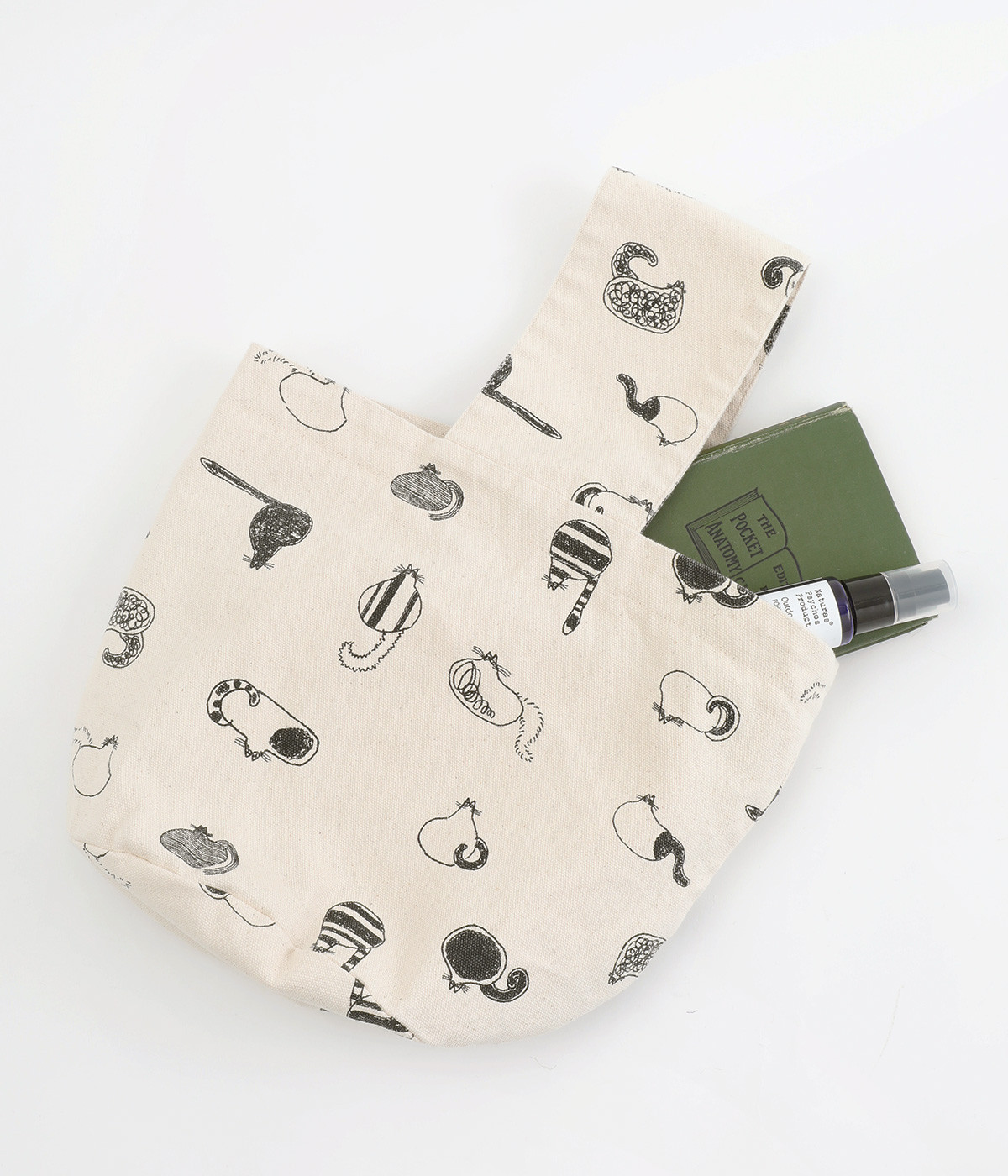 スズキマイコさんとのコラボレーションから誕生したバッグです。個性的な柄をもつたくさんのネコたちをモチーフにした、癒し系のルックスが◎。幅の広いワンハンドル仕様がポイントになったバケットフォルムに仕上がっています。