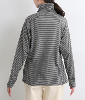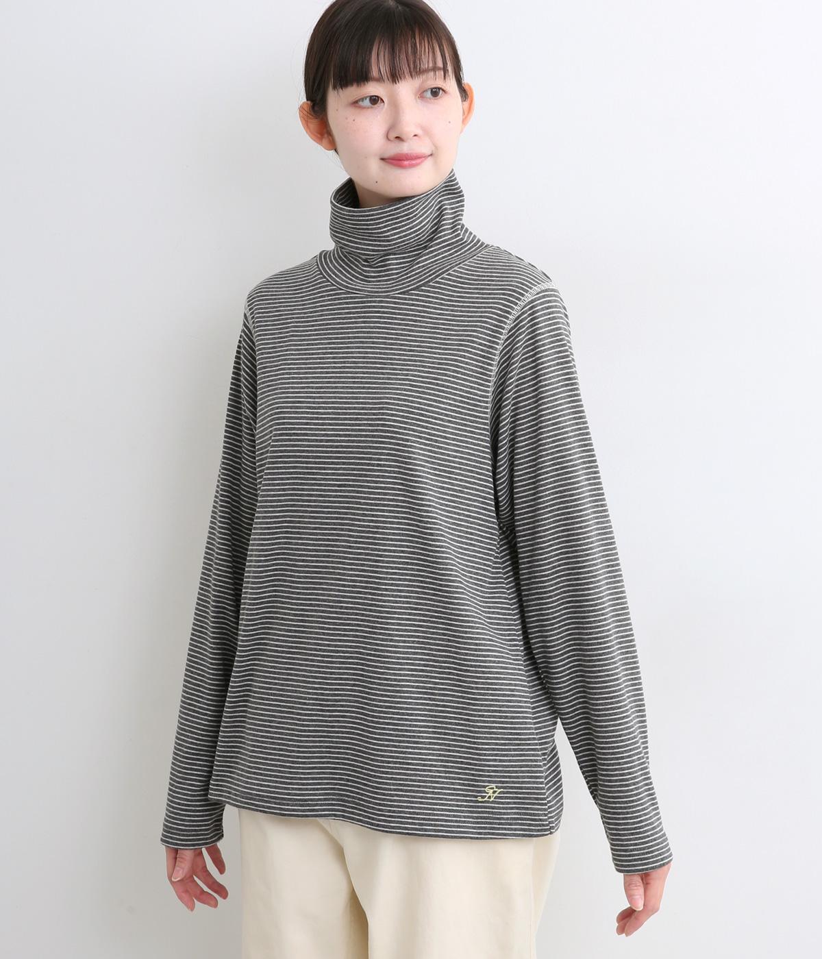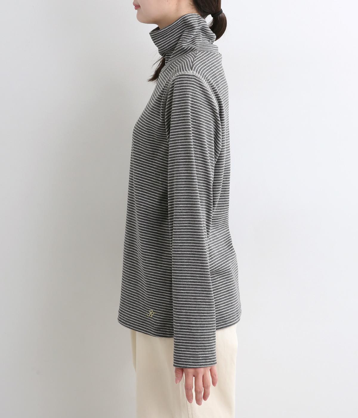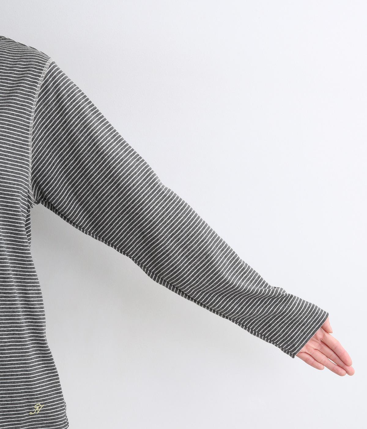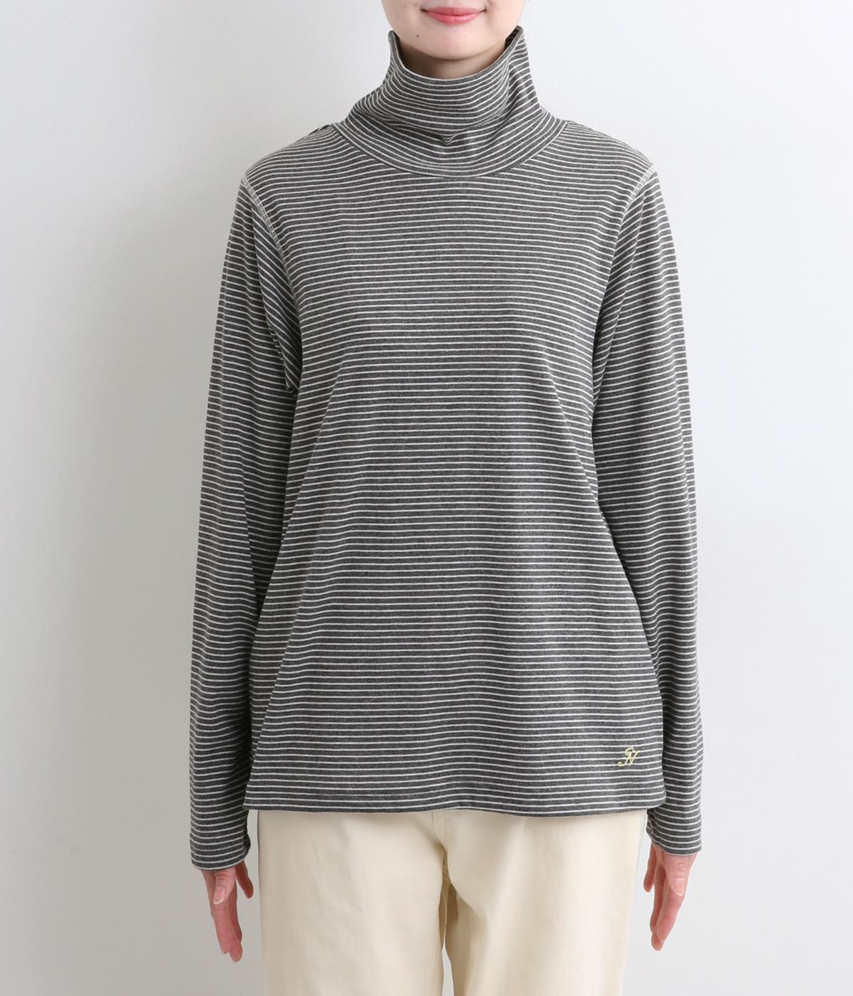 大人カジュアルスタイルにぴったりな上品なボーダー柄のプルオーバーです。伸縮性がありインナーにもぴったりです。アームホールの縫い合わせステッチや裾のロゴ刺しゅうでさりげないアクセントを添えました。