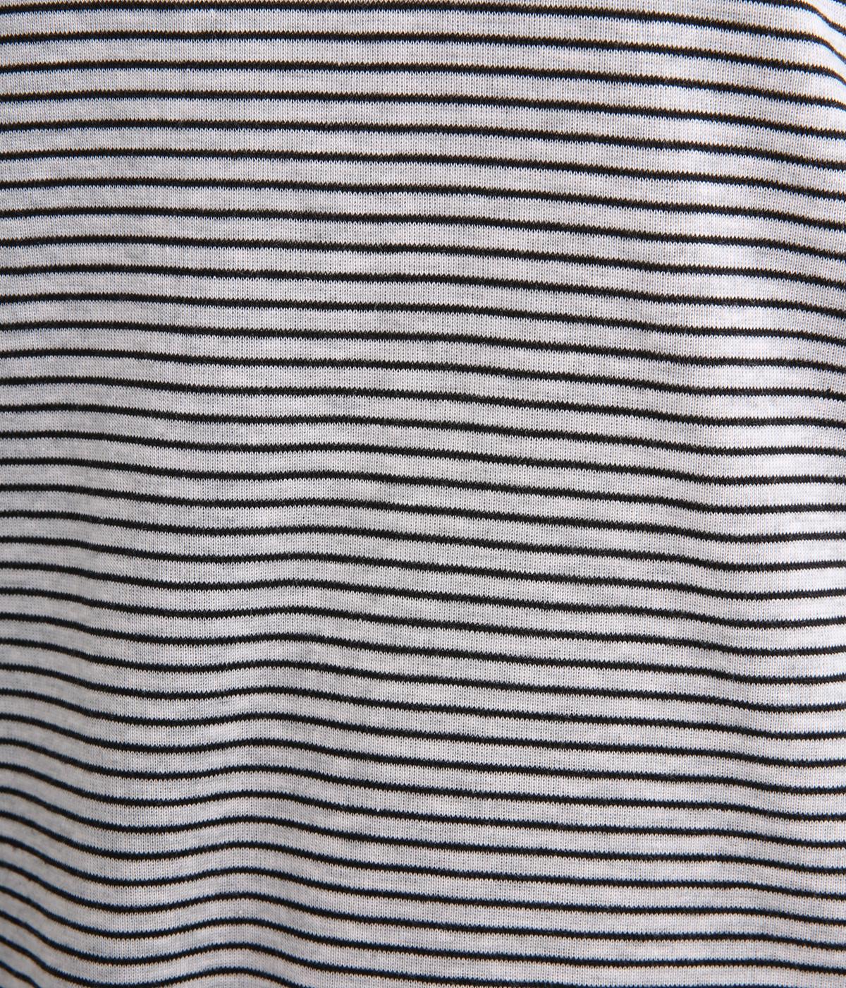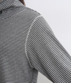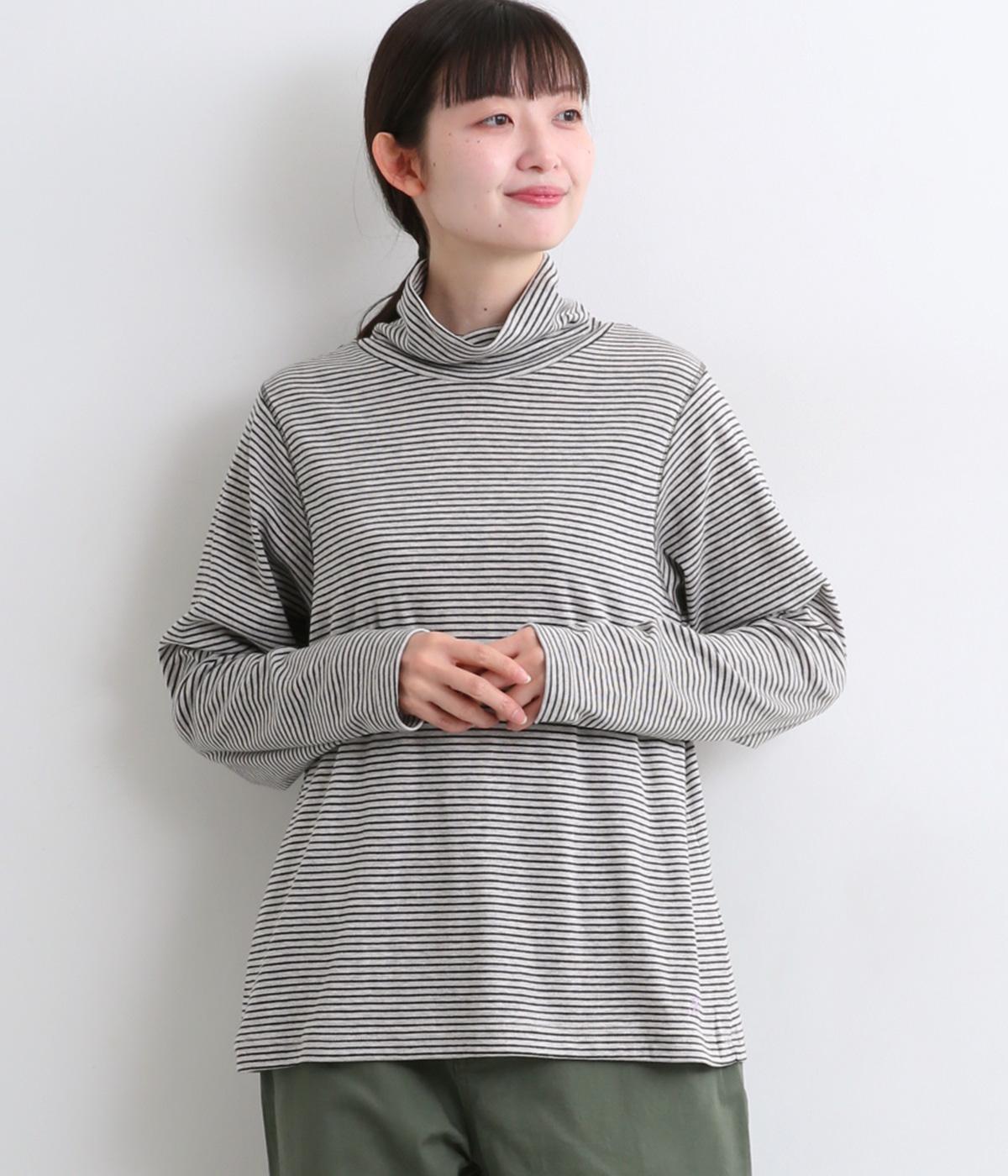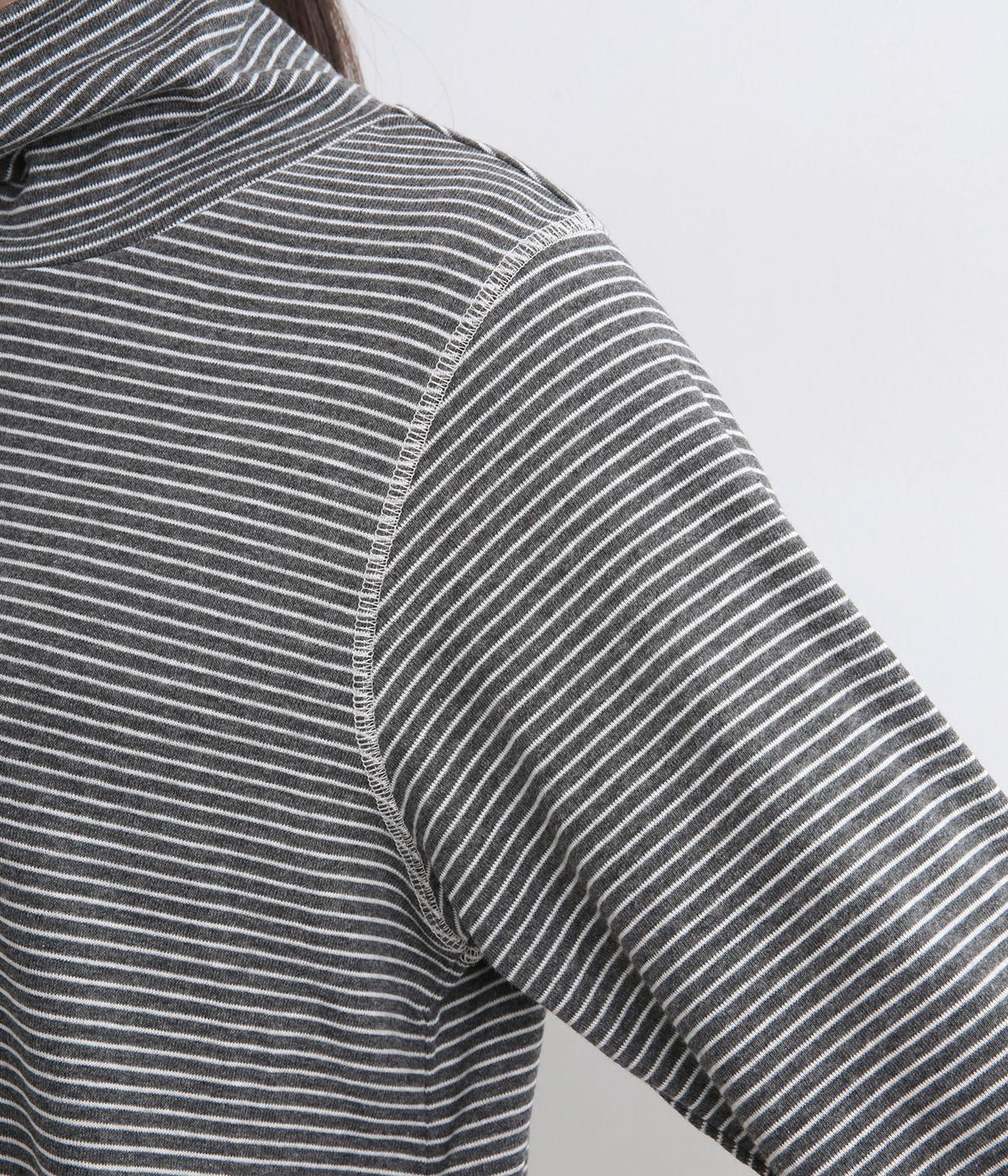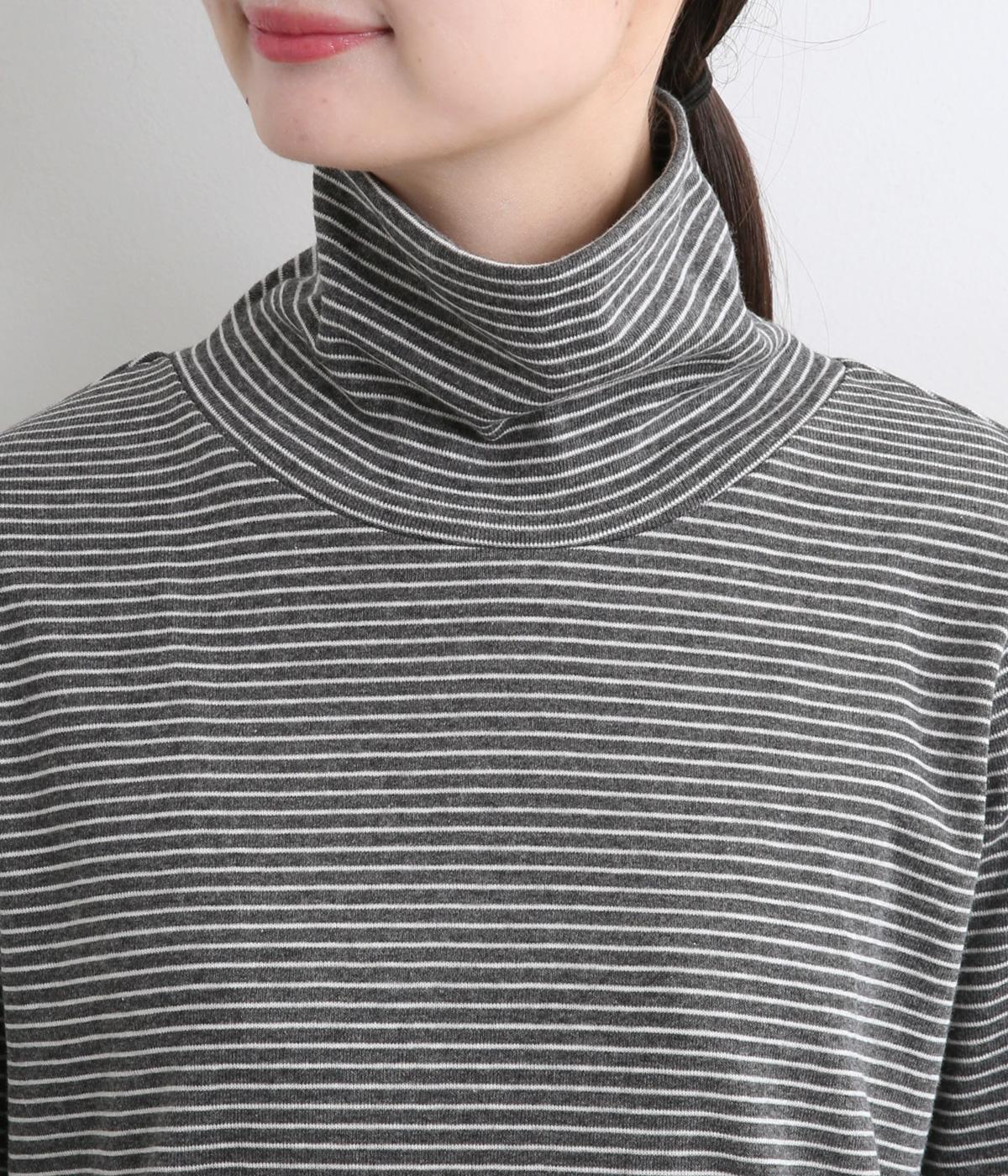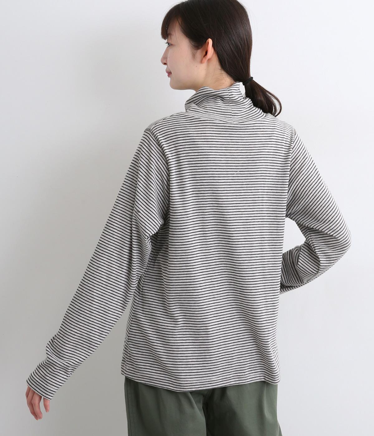 大人カジュアルスタイルにぴったりな上品なボーダー柄のプルオーバーです。伸縮性がありインナーにもぴったりです。アームホールの縫い合わせステッチや裾のロゴ刺しゅうでさりげないアクセントを添えました。
