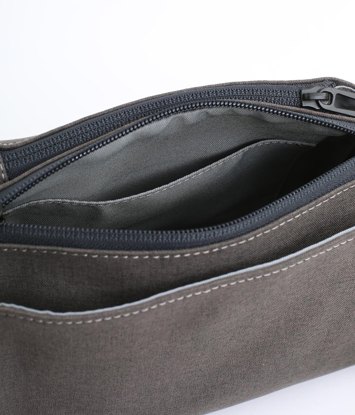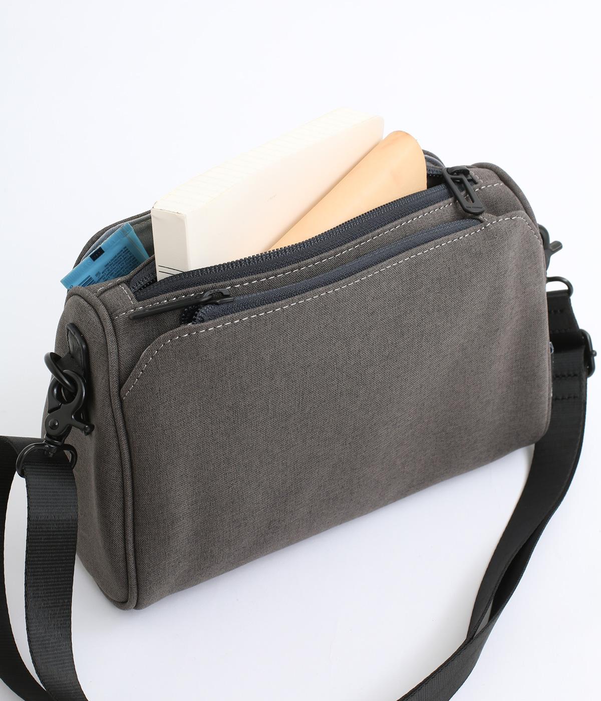 コンパクトながらも機能性抜群なショルダーバッグ。メイン収納のほか、前後にあおりポケットをつけているので荷物を整理しやすいつくりです。内側にも小物を入れるのに便利なファスナーポケットを配置。長さ調整できるショルダー紐を取り外せば、ポーチとしても活用できます。