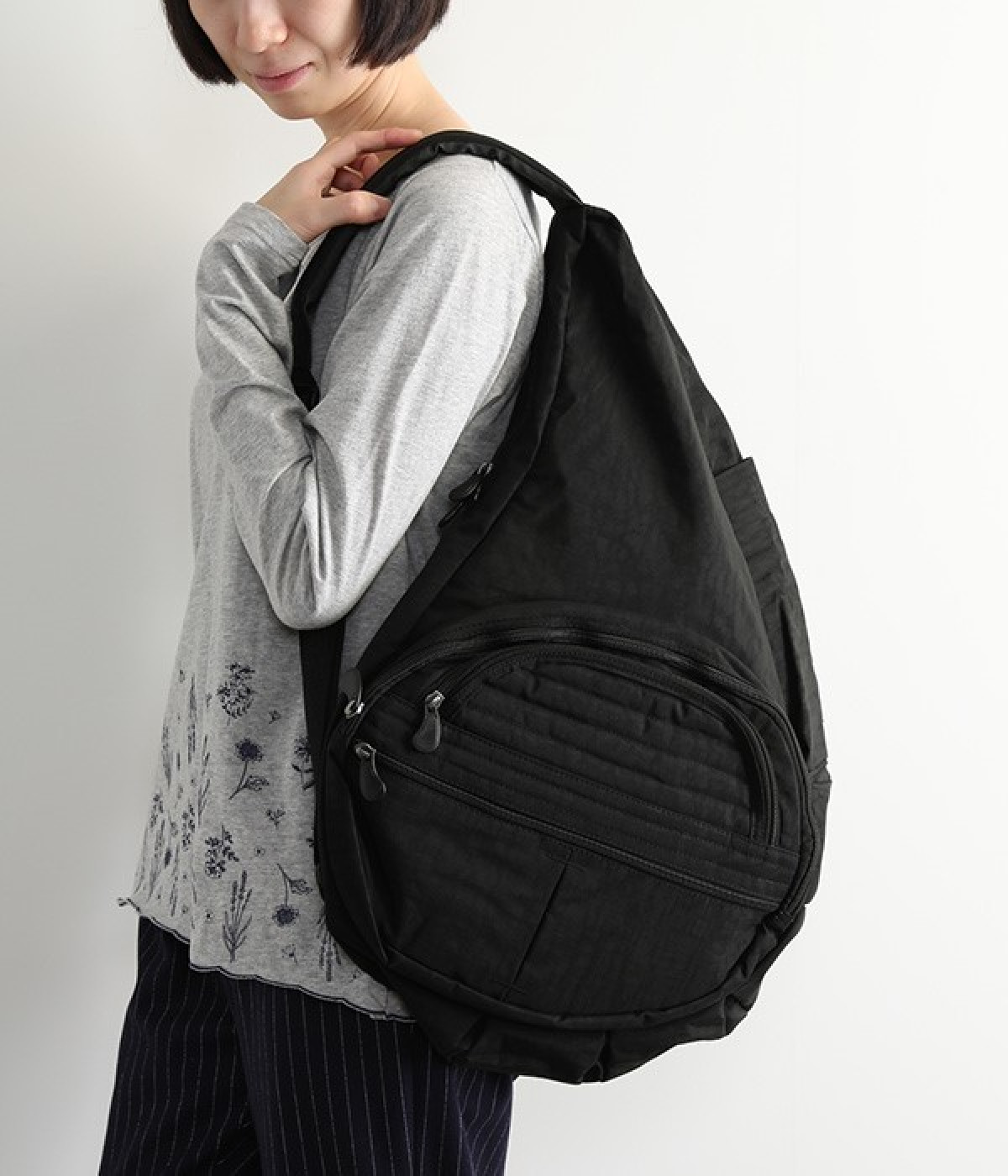 ご自宅での洗濯も可能! 医師とカイロプラティック専門家の協力のもと生まれたバッグは、人間工学に基づいた曲線ボディが体への負担を軽減。開口部はダブルジッパー式で小物を出し入れしやすく、ストラップ裏には滑り止め加工を施しました。大きな外ジッパーポケットをはじめ、内側にはメッシュポケットも内蔵。驚くほどの大容量を誇り、マザーズバッグやジムバッグ、小旅行にもおすすめです。