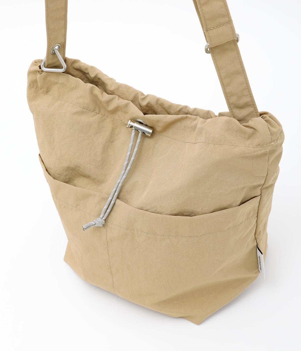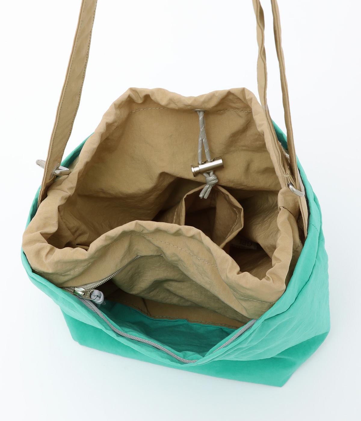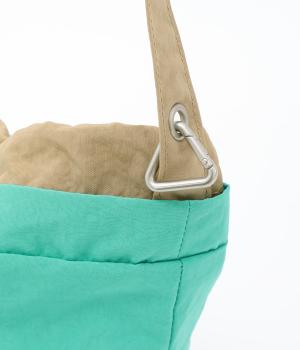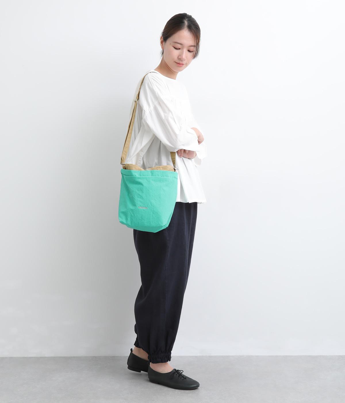 印象の異なるカラー配色がポイントのリバーシブルバッグ。丁度いいサイズ感のショルダータイプでデイリーに使いやすく、コンパクトにまとめられるので旅行時のサブバッグとしても活躍。きゅっとしぼれる巾着タイプの口元で防犯面も◎。