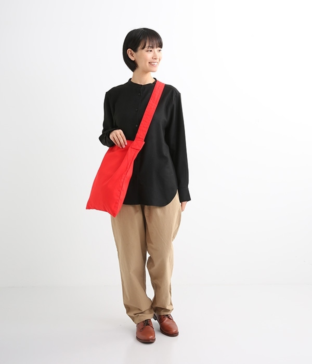軽くてたっぷりと荷物が入るラフなショルダーバッグです。コンパクトに折りたためるので、旅行などのサブバッグとして持つのもおすすめです。スタイリングの挿し色使いにもぴったりの、きれいな発色もポイント。くたっとした独特の風合いがこなれた印象で、シンプルながら存在感のあるアイテムです。