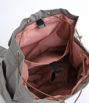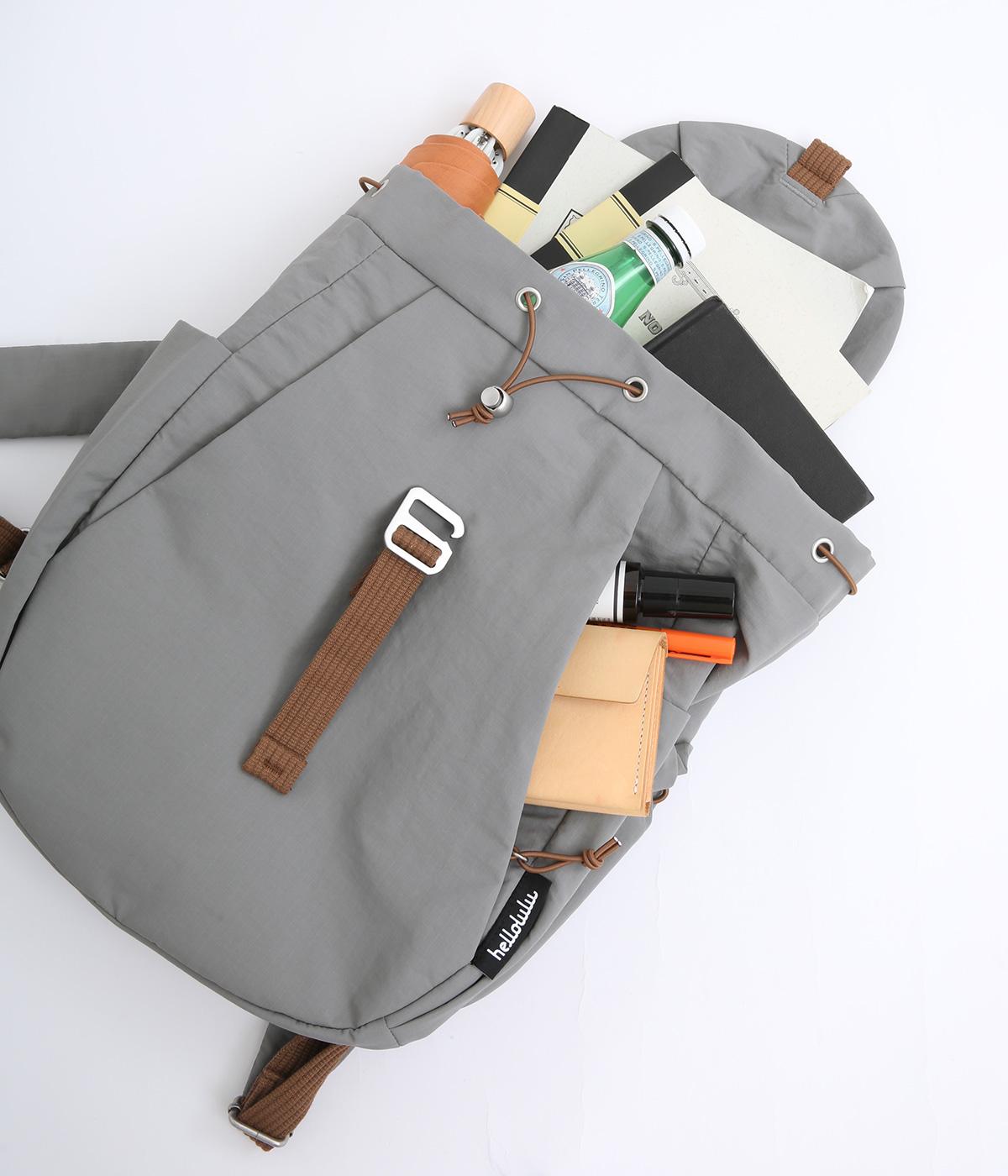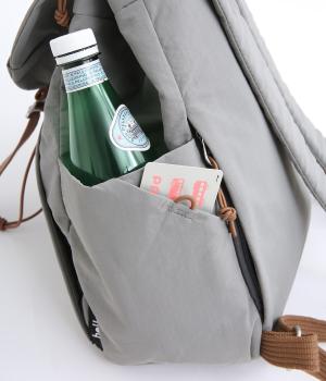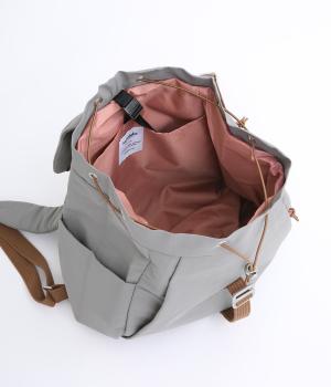ほどよい大きさながらも収納力抜群のバックパックです。メイン収納部分はドローストリング式で開閉できて取りやすさも◎。内側だけでなく背面や側面にもポケットがたくさんあり、荷物を仕分けて収納できます。ショルダーストラップは調節が可能です。