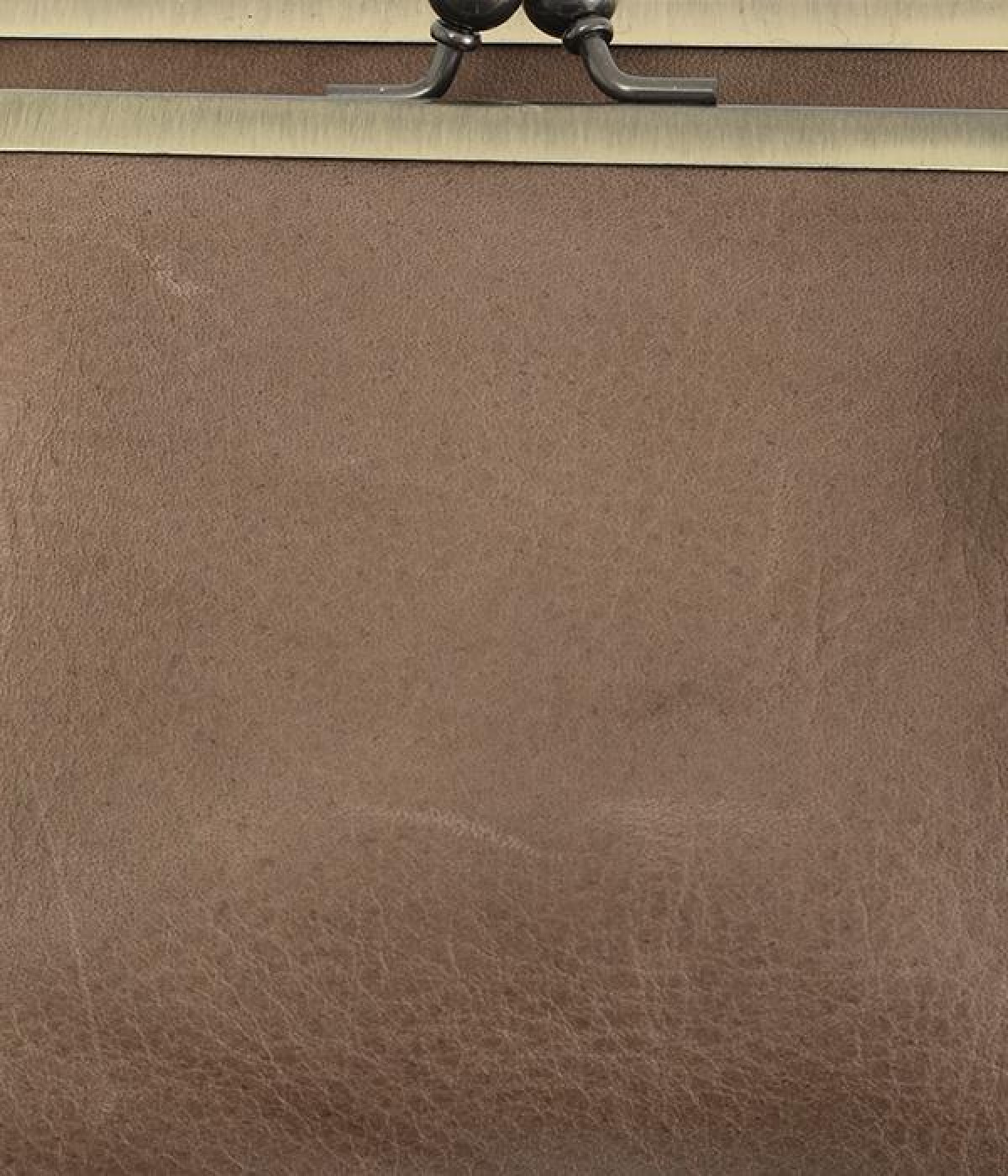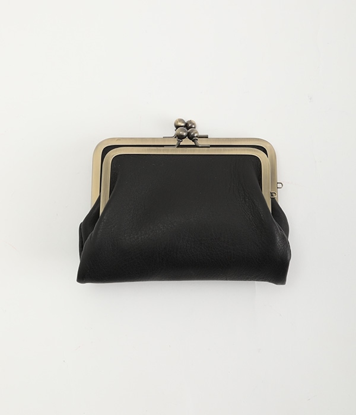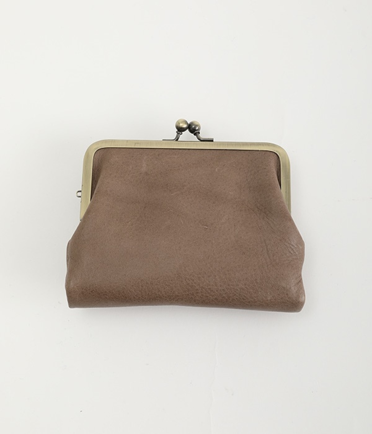 大きながま口と小さながま口をくっつけた、まるで動物のワラビーのような形のお財布です。大きいがま口は仕切り付きで、カードや二つ折りのお札、レシートなどを分けて入れることができます。小さい方にはコインはもちろん、カードも重ねて入る便利な大きさ。ICカードや定期などを入れるとそのままタッチできます。どちらの口も90度ほど大きく開くので、コインやカードが一目瞭然。素材には革本来の質感や表情を活かした染め方で仕上げた「すっぴんレザー」を使用。キズやムラなども味わいとなる、天然素材の魅力を堪能できます。