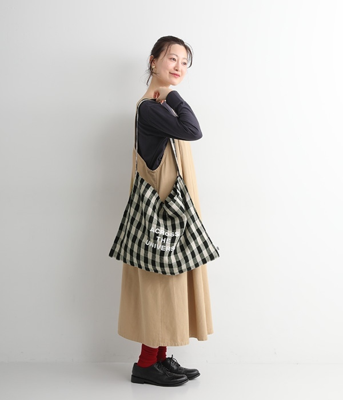肌触りの良い、やわらかなリネンで仕立てたショルダーバッグです。丈夫で速乾性が高く軽量なので、デイリー使いしたいバッグの素材にぴったり。くたっとした落ち感があり、ざっくりと荷物を入れてもシルエットがサマになります。フロントのロゴプリントがアクセント。ハンドルは長めで、肩掛けもななめがけも楽にできるのがうれしいポイントです。スマートフォンやカードケースなどが入る内ポケット付き。