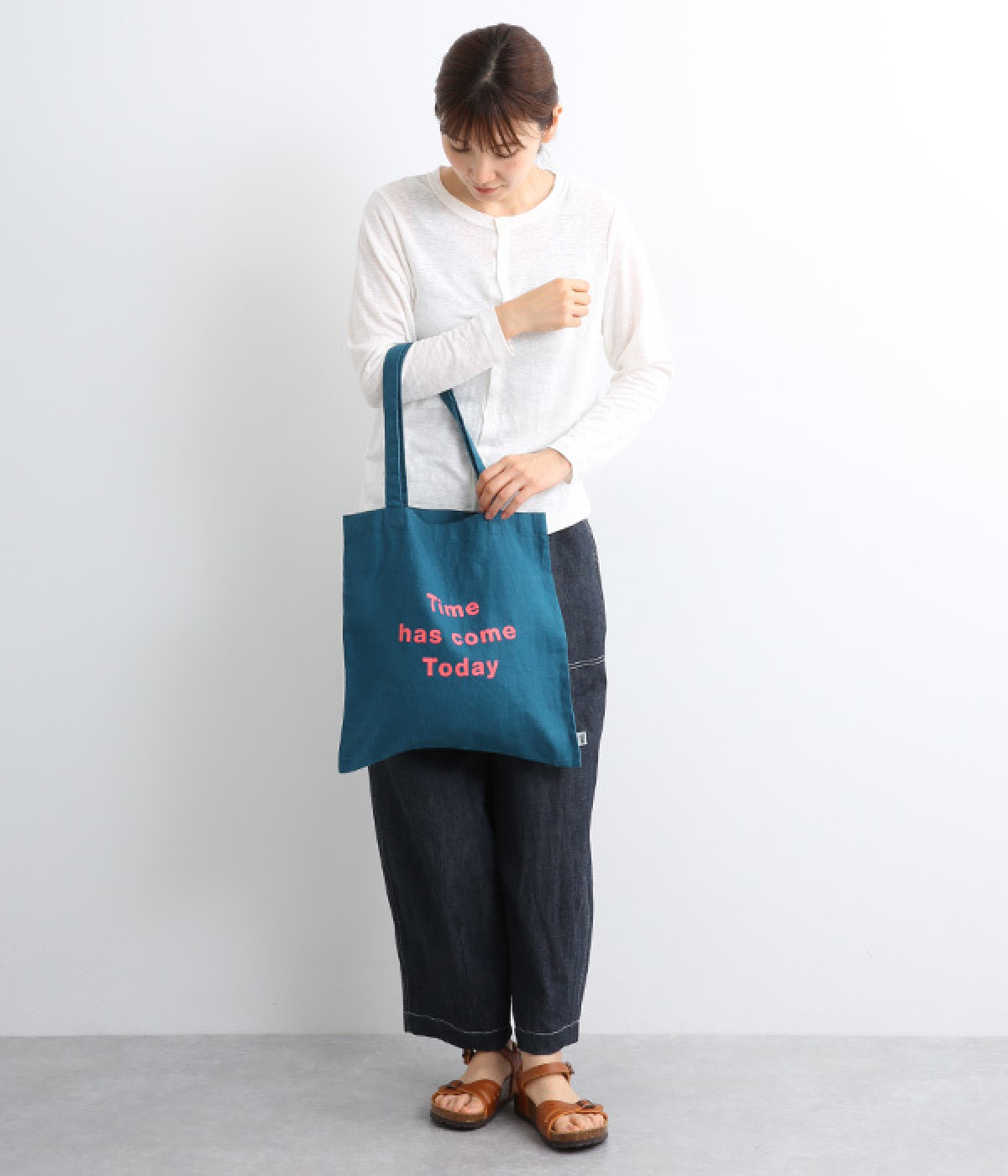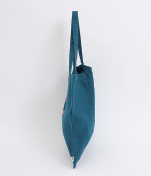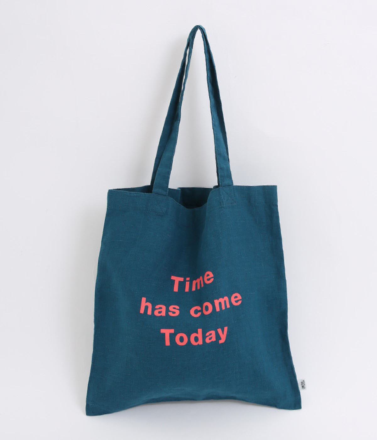 カラーコントラストのきいたロゴプリントが目を惹くトートバッグです。すっきりとしたスクエアシルエットで、持ち手は肩かけもできる長さにデザインしました。リネン素材を採用した、ややハリのある風合いも特徴のひとつ。収納力があるのでサブバッグとしても重宝します。コーディネートにカジュアルなアクセントを添えるアイテム。