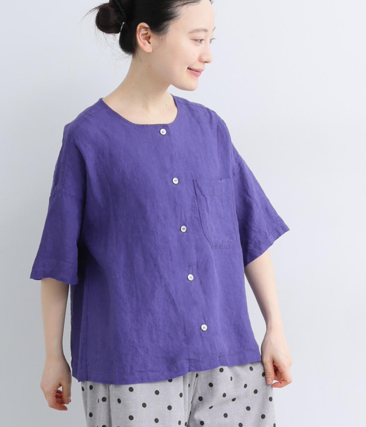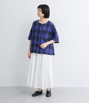 先染めコットンシアサッカー 前あきシャツブラウス