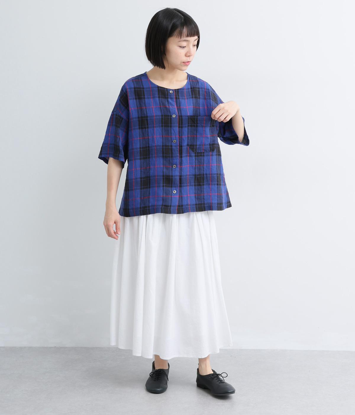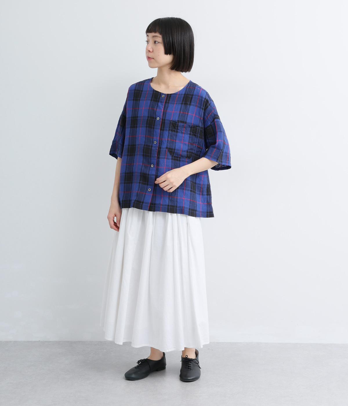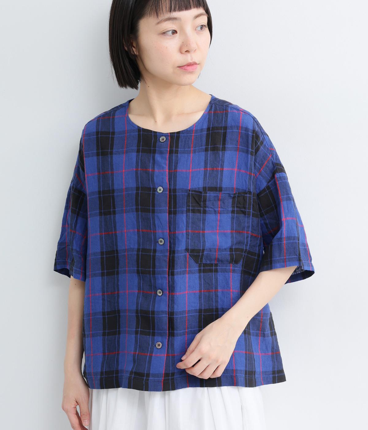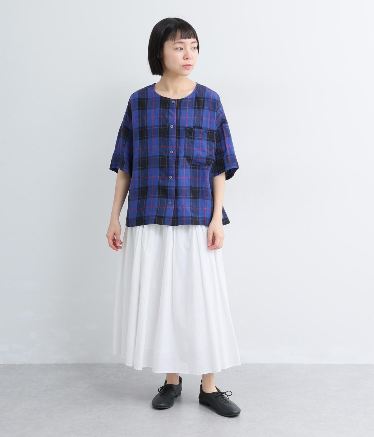 リネン先染ギンガムチェックバイカラー2wayブラウス